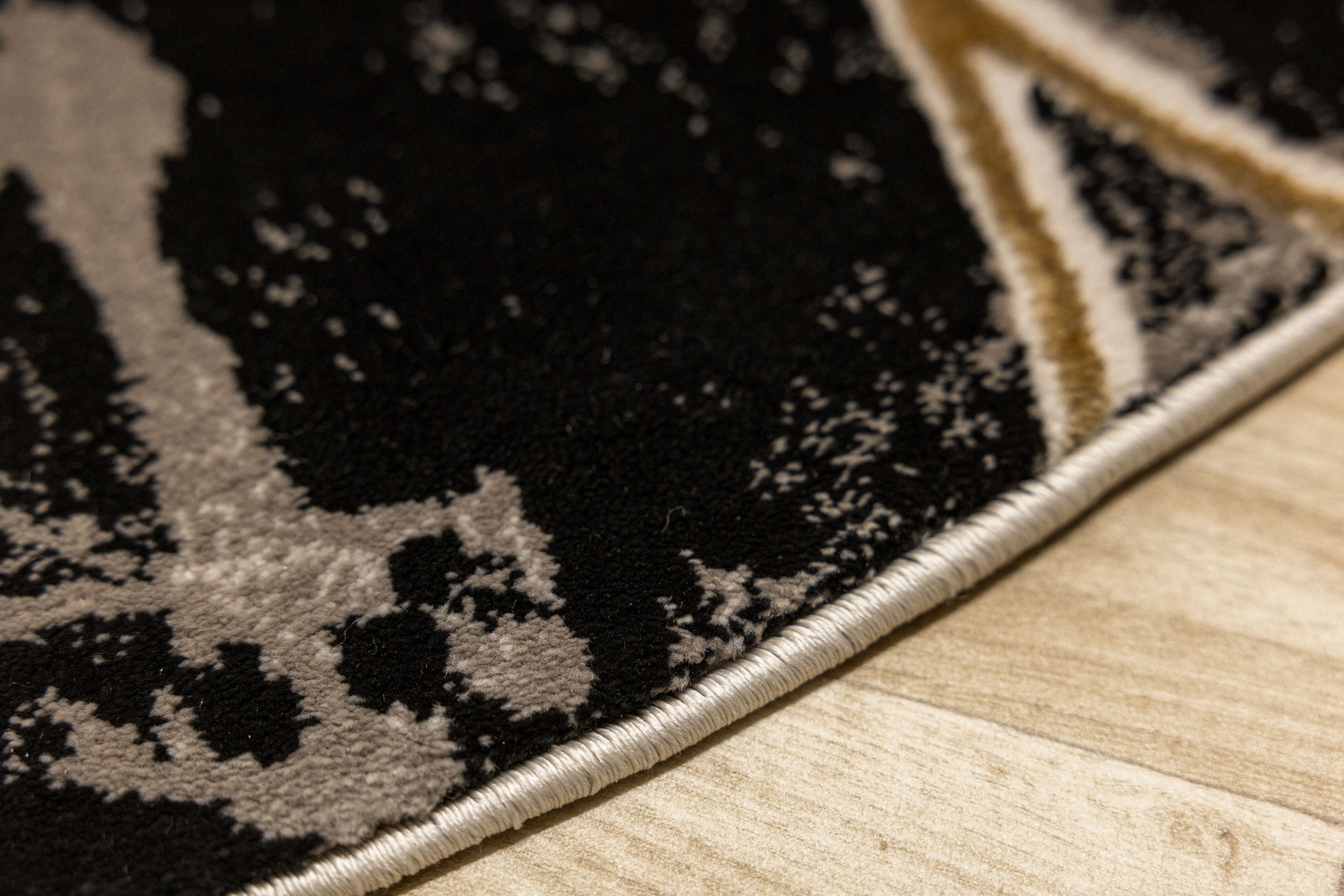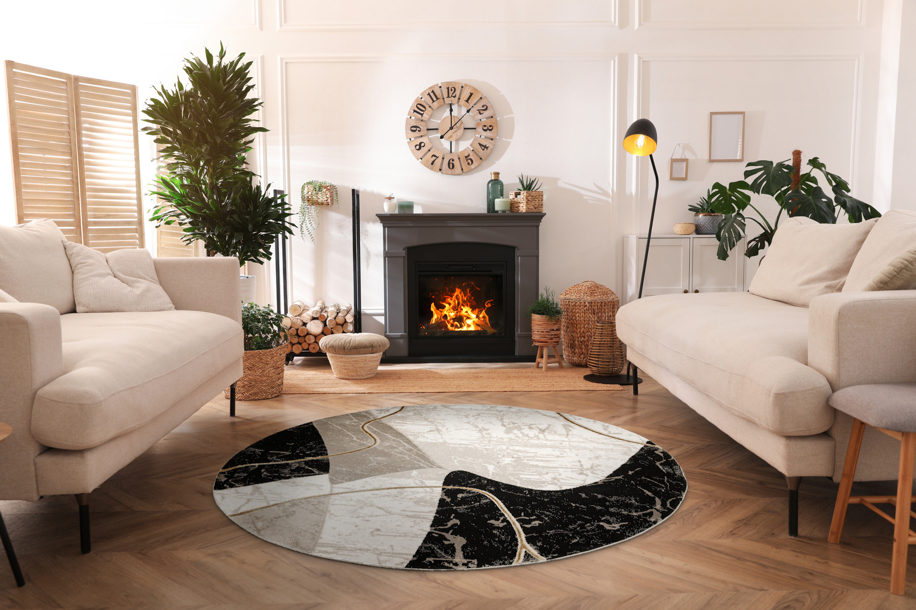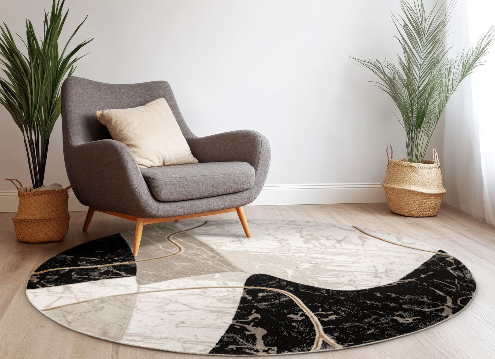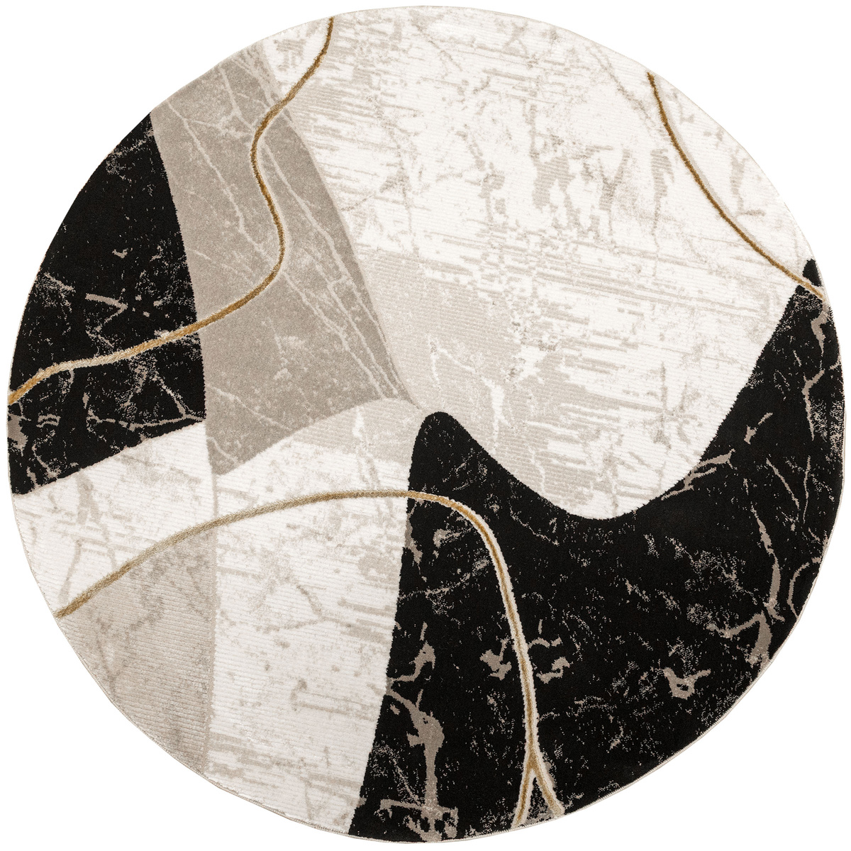 Okrągły Dywan Kashmir KR205S Black/Vizon Marmur Czarny Złoty
