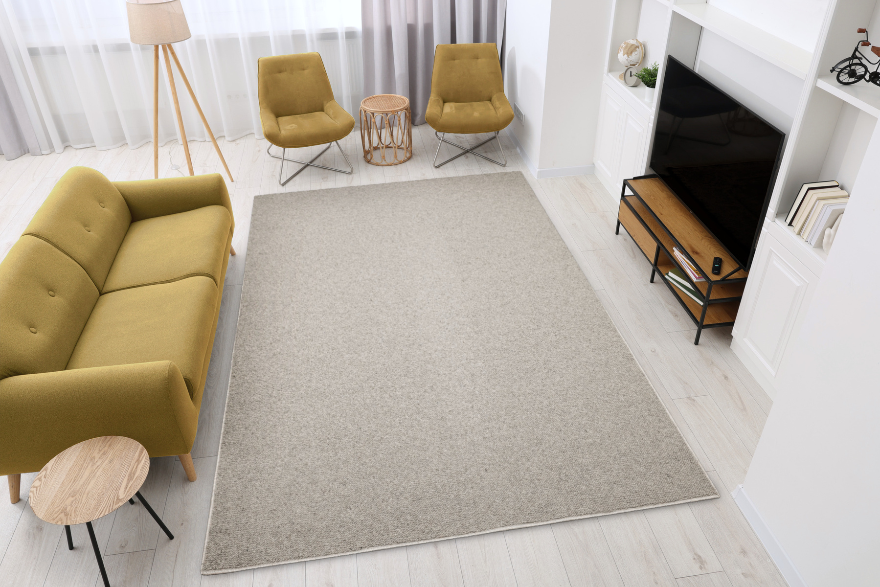 Spód dywanu wykończony filcem. Dodaje to do komfortu użytkowania i pomaga wyciszać pomieszczenia.