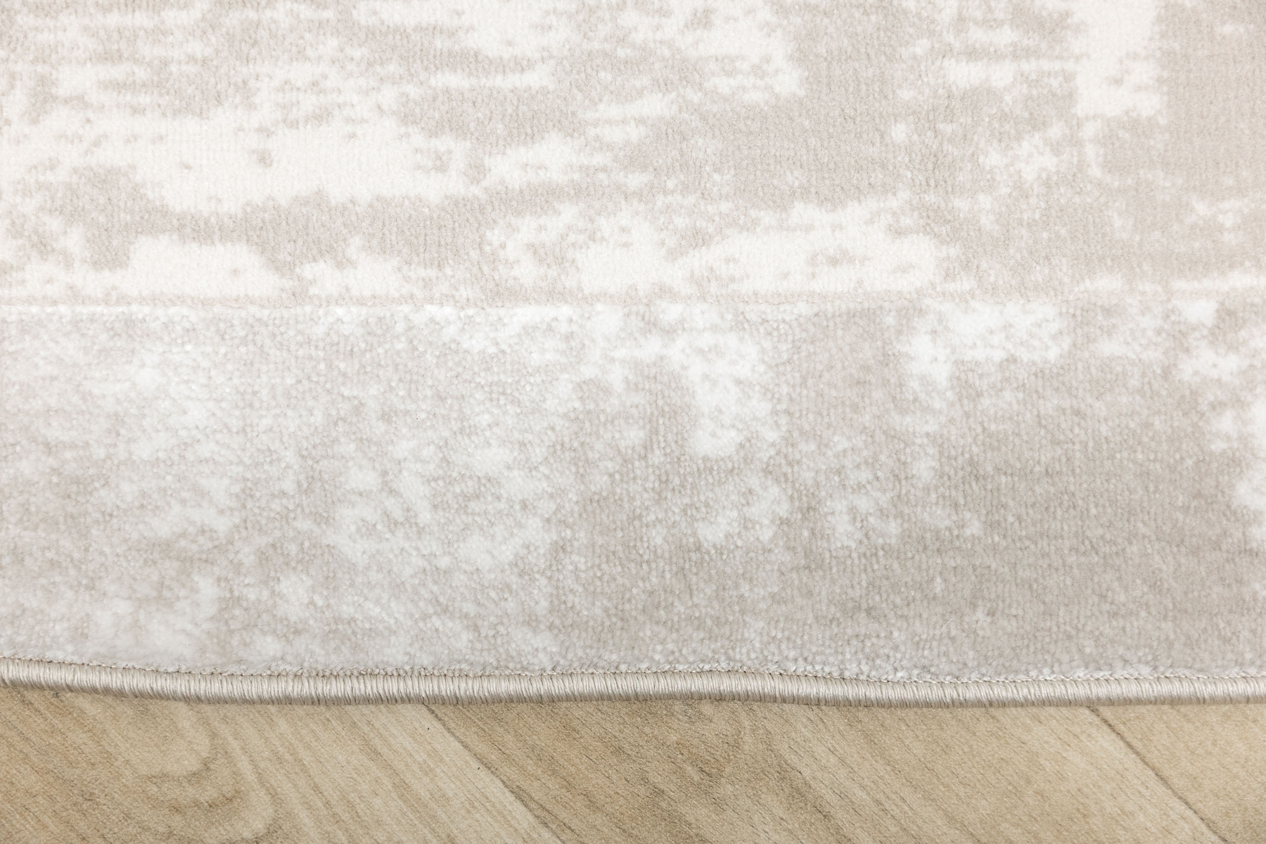 - Luksusowy dywan Selena o nieregularnym kształcie z mięciutkim, lekko lśniącym, dwupoziomowym runem, abstrakcyjnym wzorem geometrycznym w odcieniach szarości zmieszanej z beżem z akcentami kremu, ze spodem wykończonym bawełną.