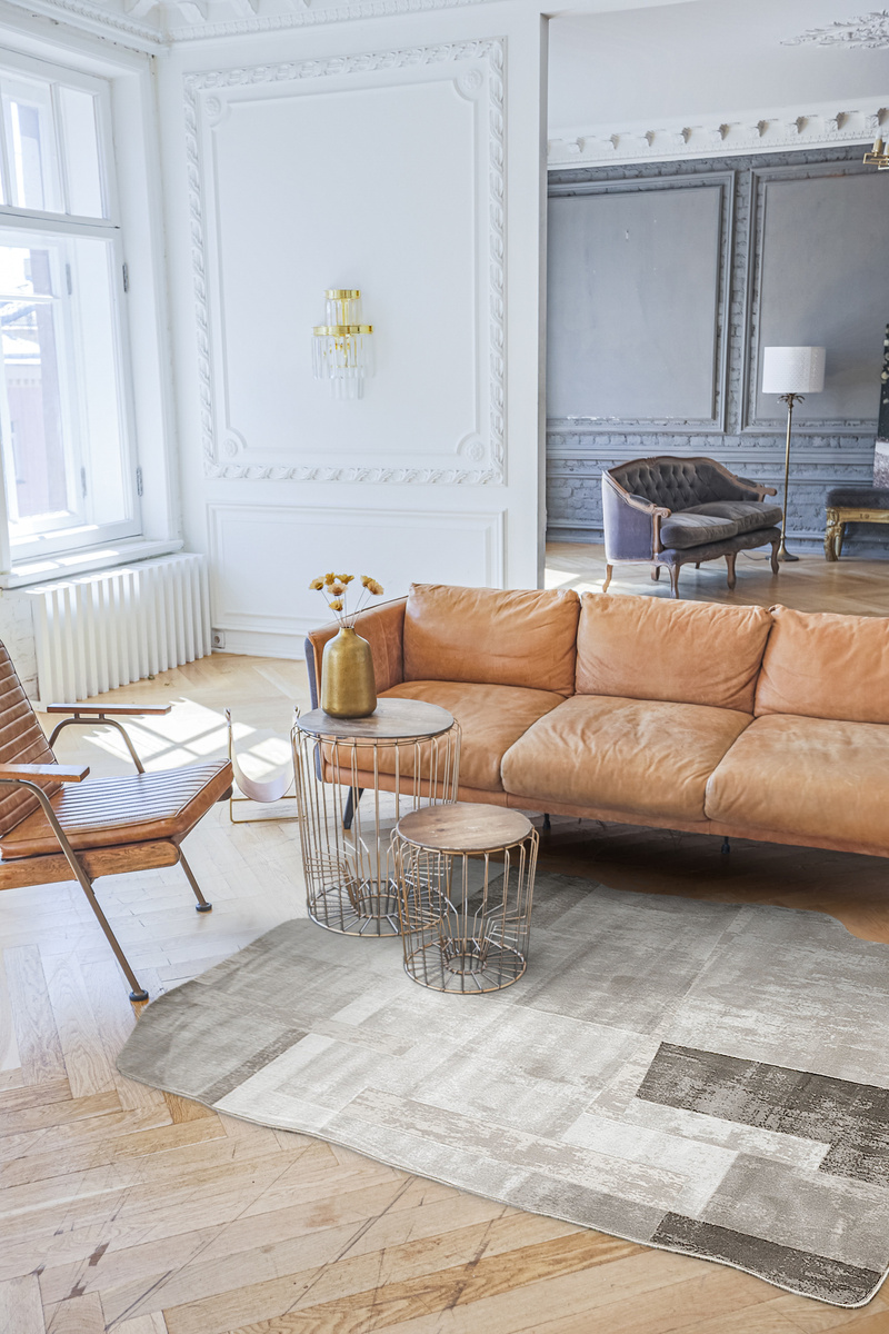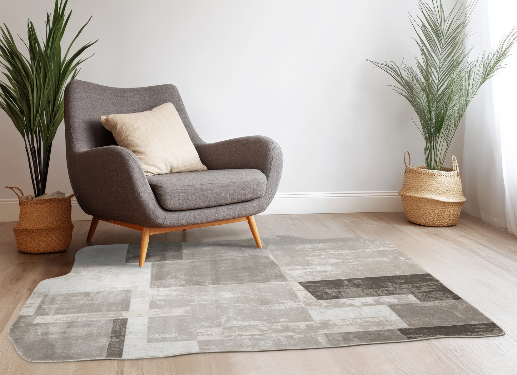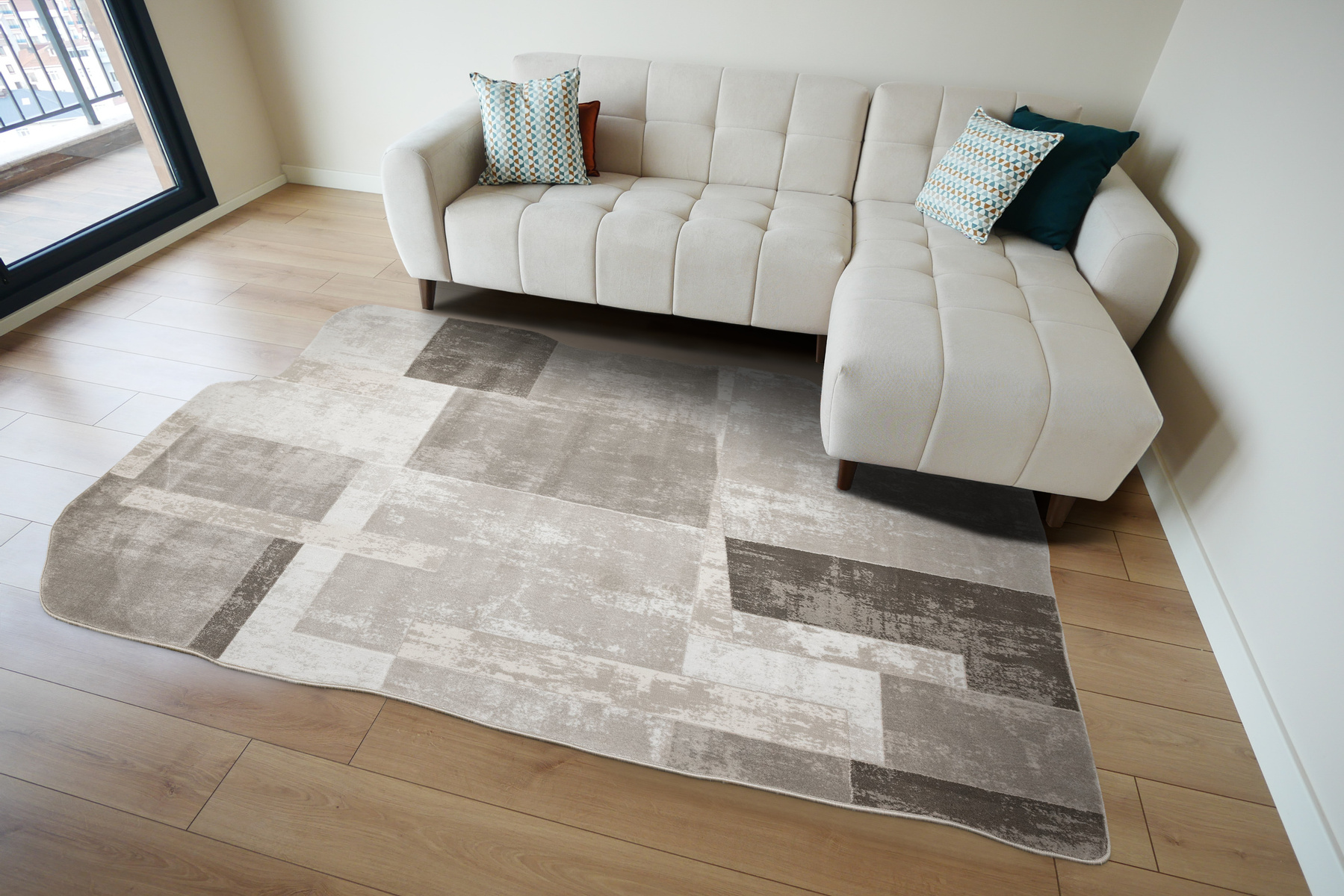 Dywan Selenne o nieregularnych kształtach to wyjątkowy dodatek do aranżacji wnętrz, łączący w sobie nowoczesność i elegancję.