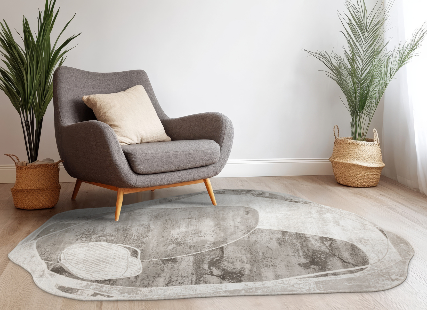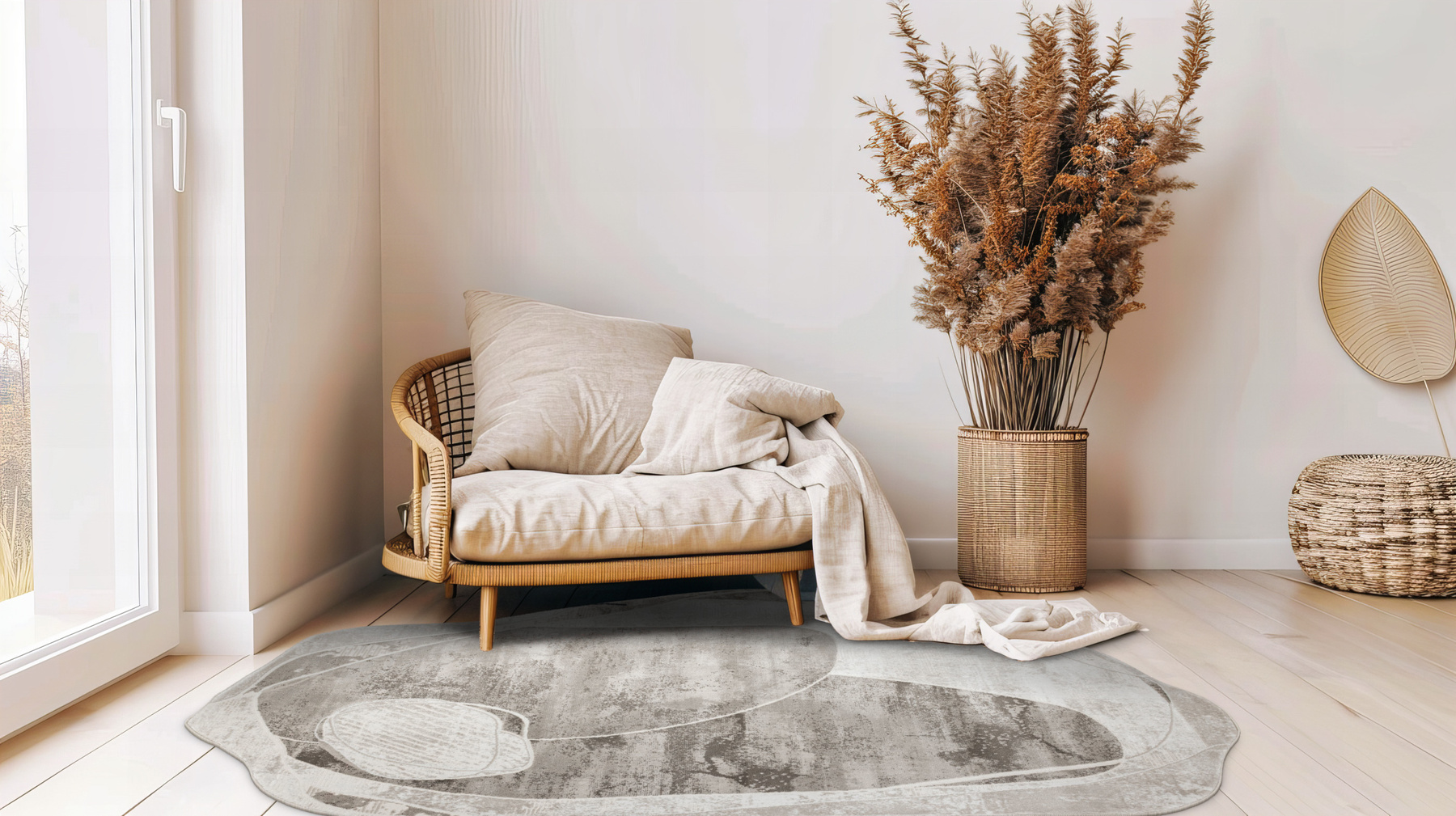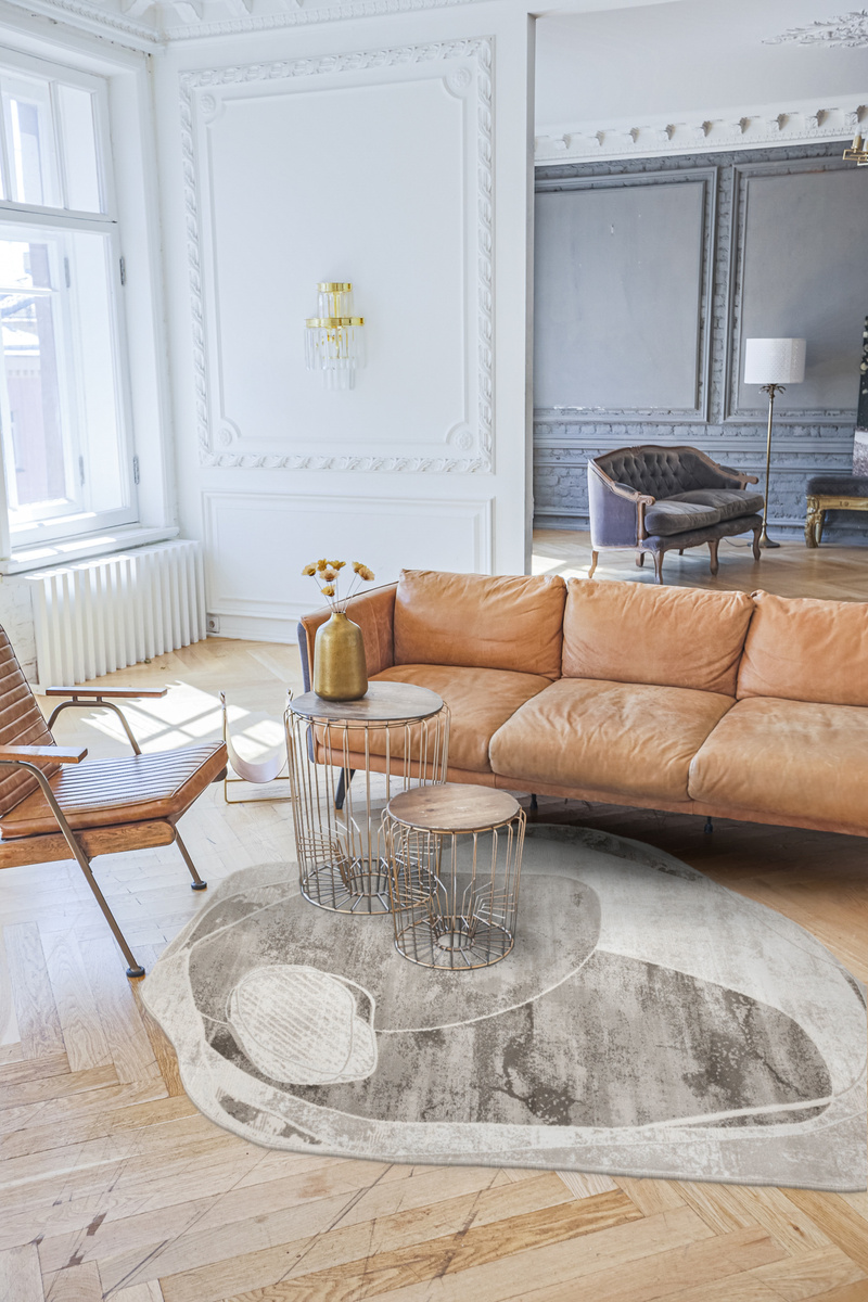 Dywan Selenne o nieregularnych kształtach to wyjątkowy dodatek do aranżacji wnętrz, łączący w sobie nowoczesność i elegancję.