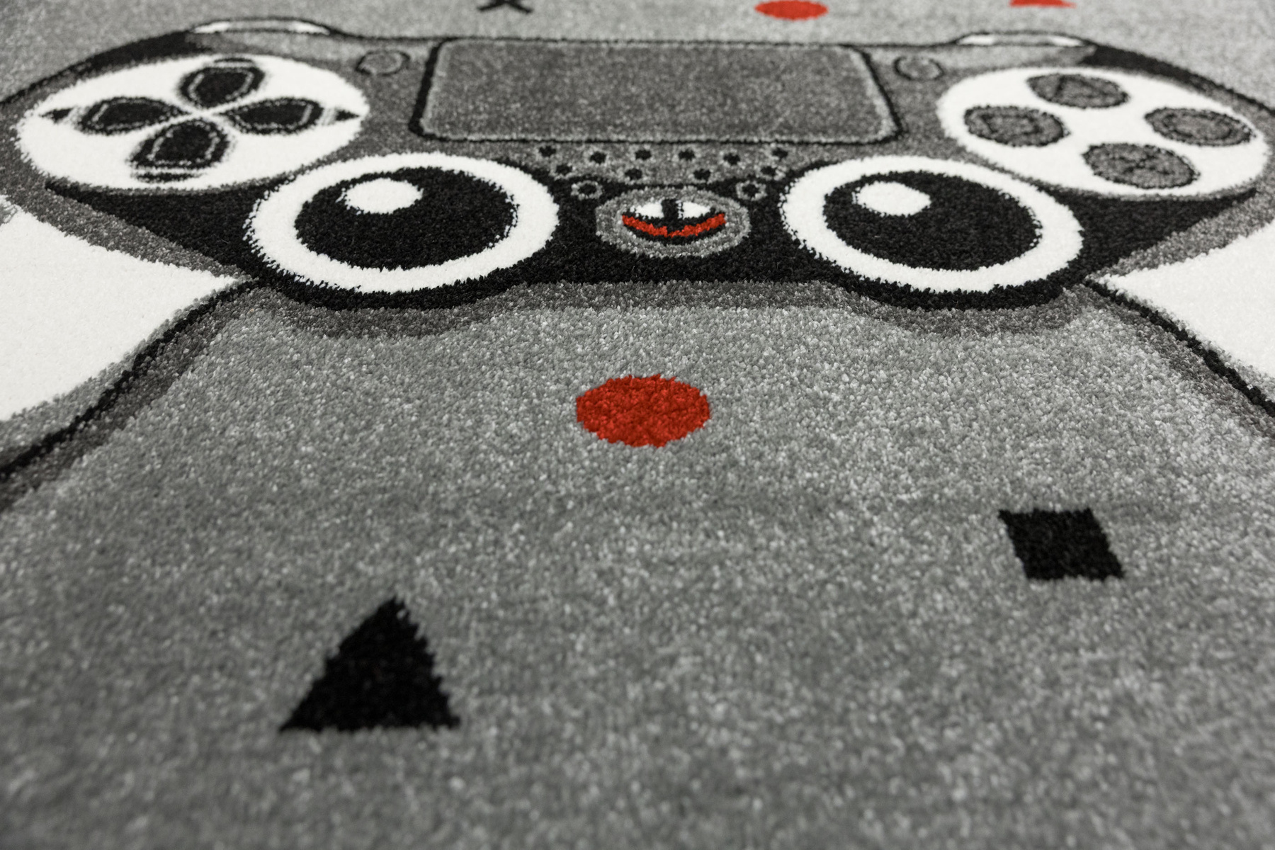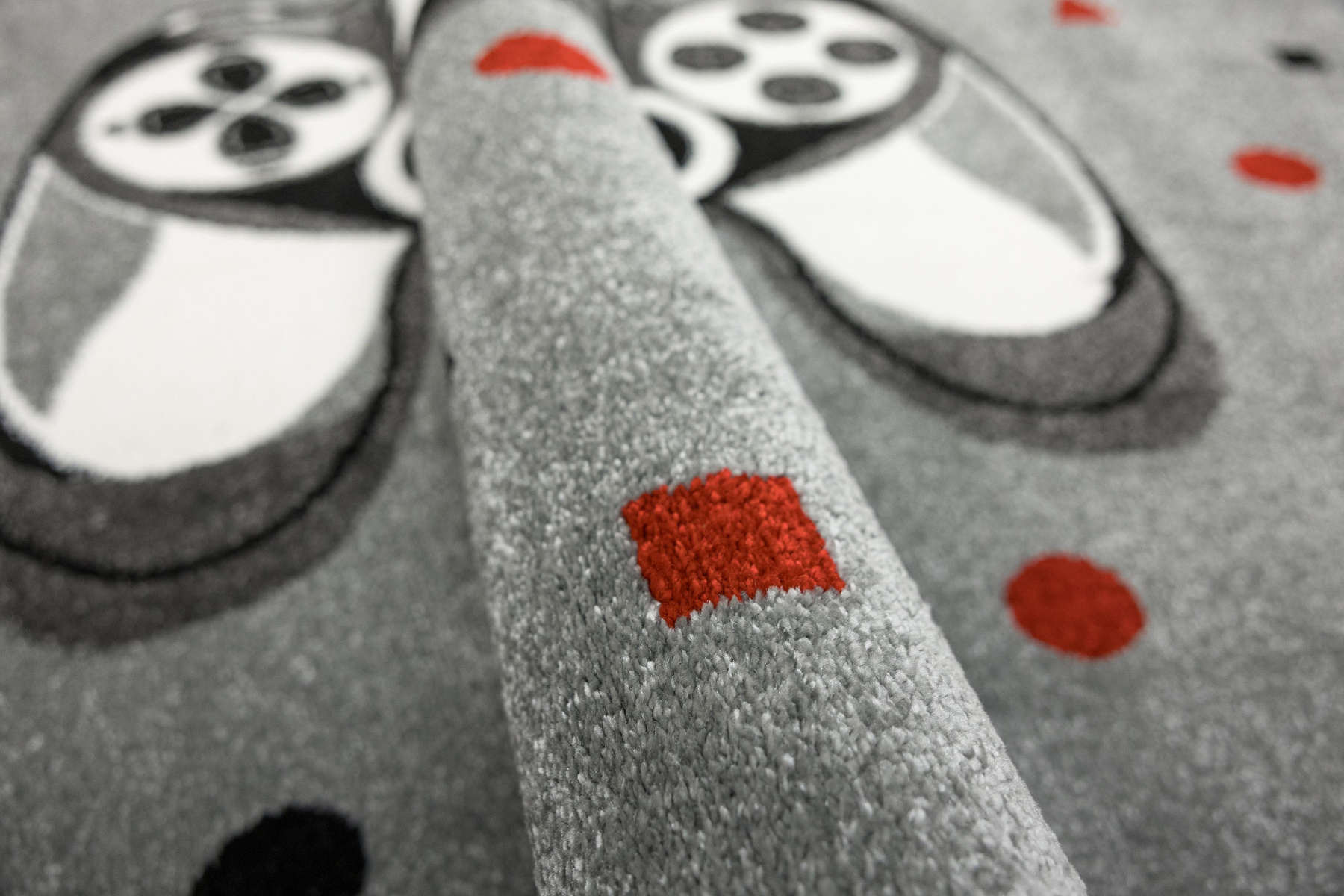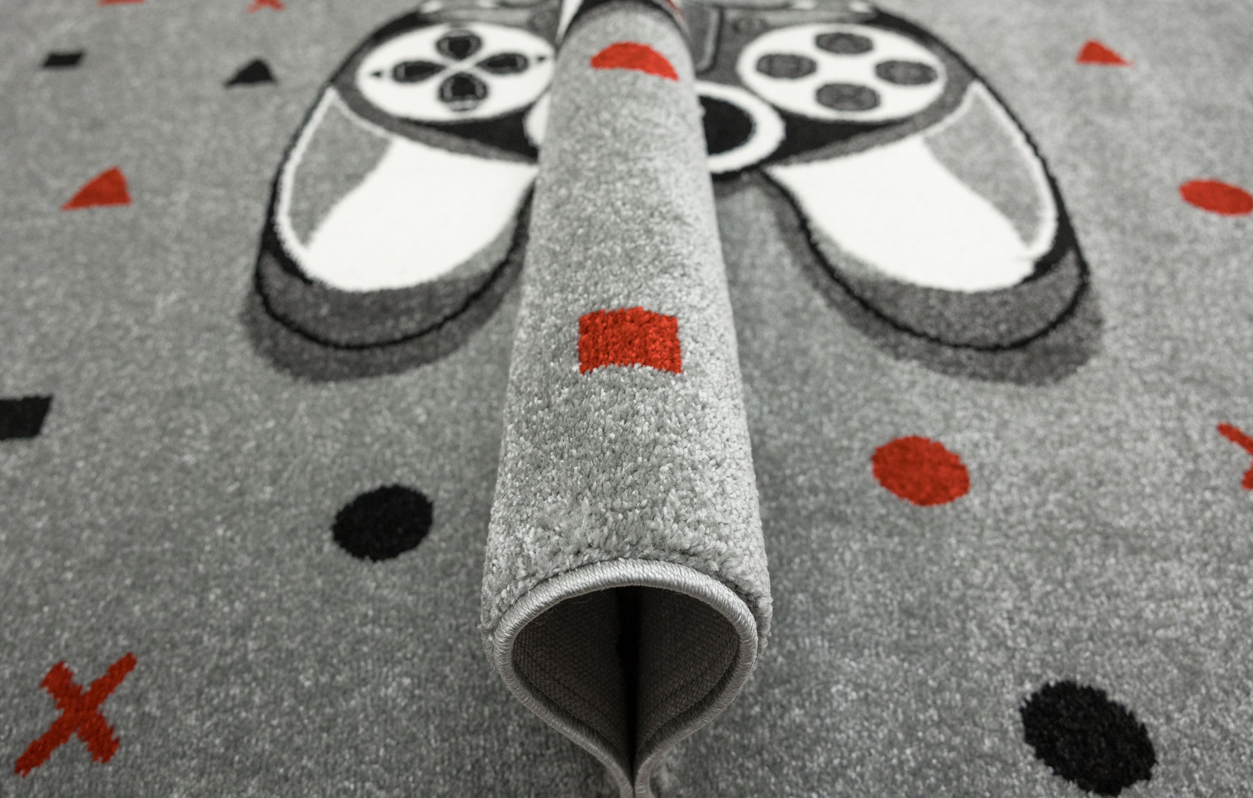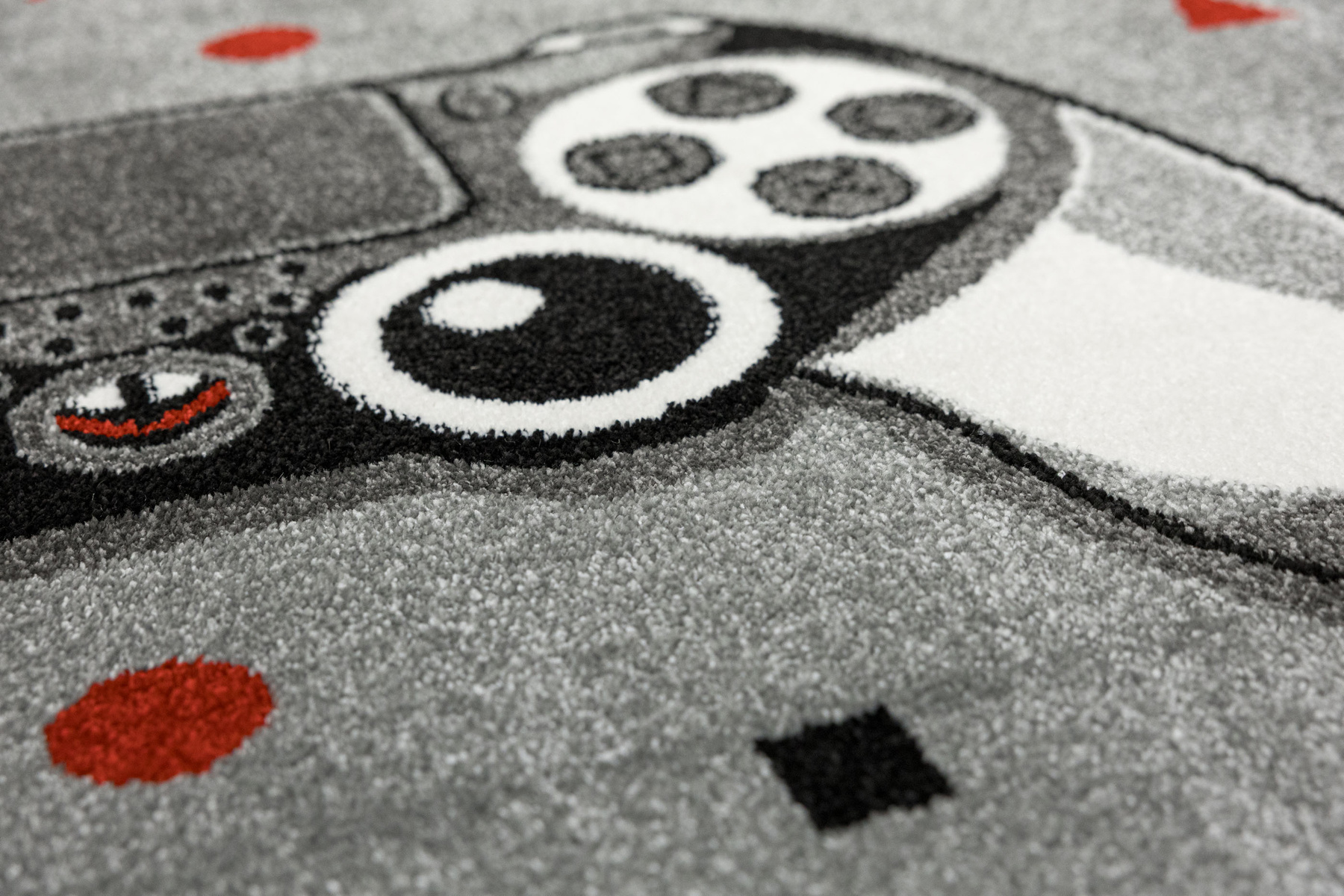 - Dywan dziecięcy Lima ze wzorem z game padem, kontrolerem do konsoli w odcieniach szarości, czerwieni, czerni i bieli - miękkie i przyjemne runo z tym worem tworzy idealny dodatek do pokojów miłośników gier.