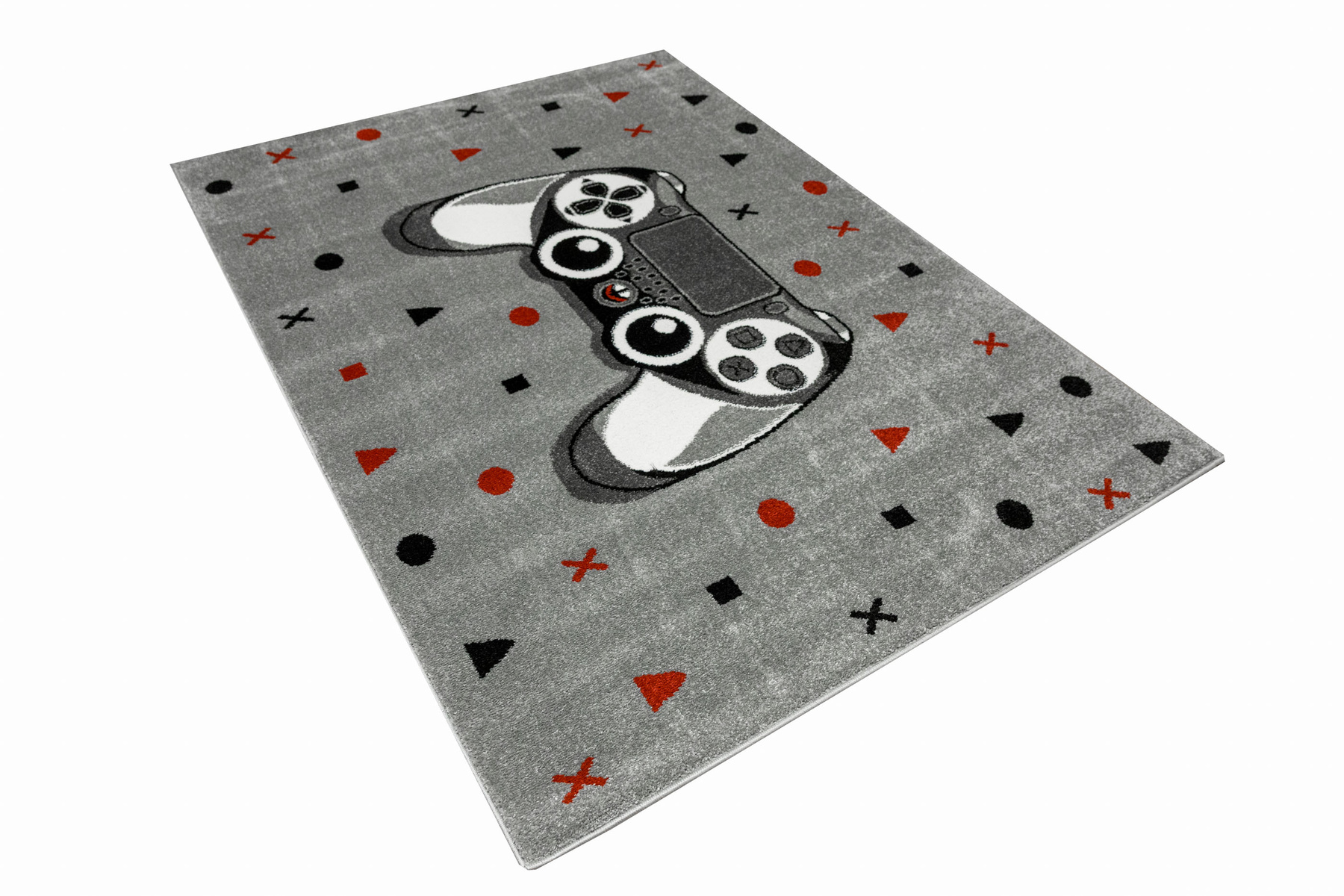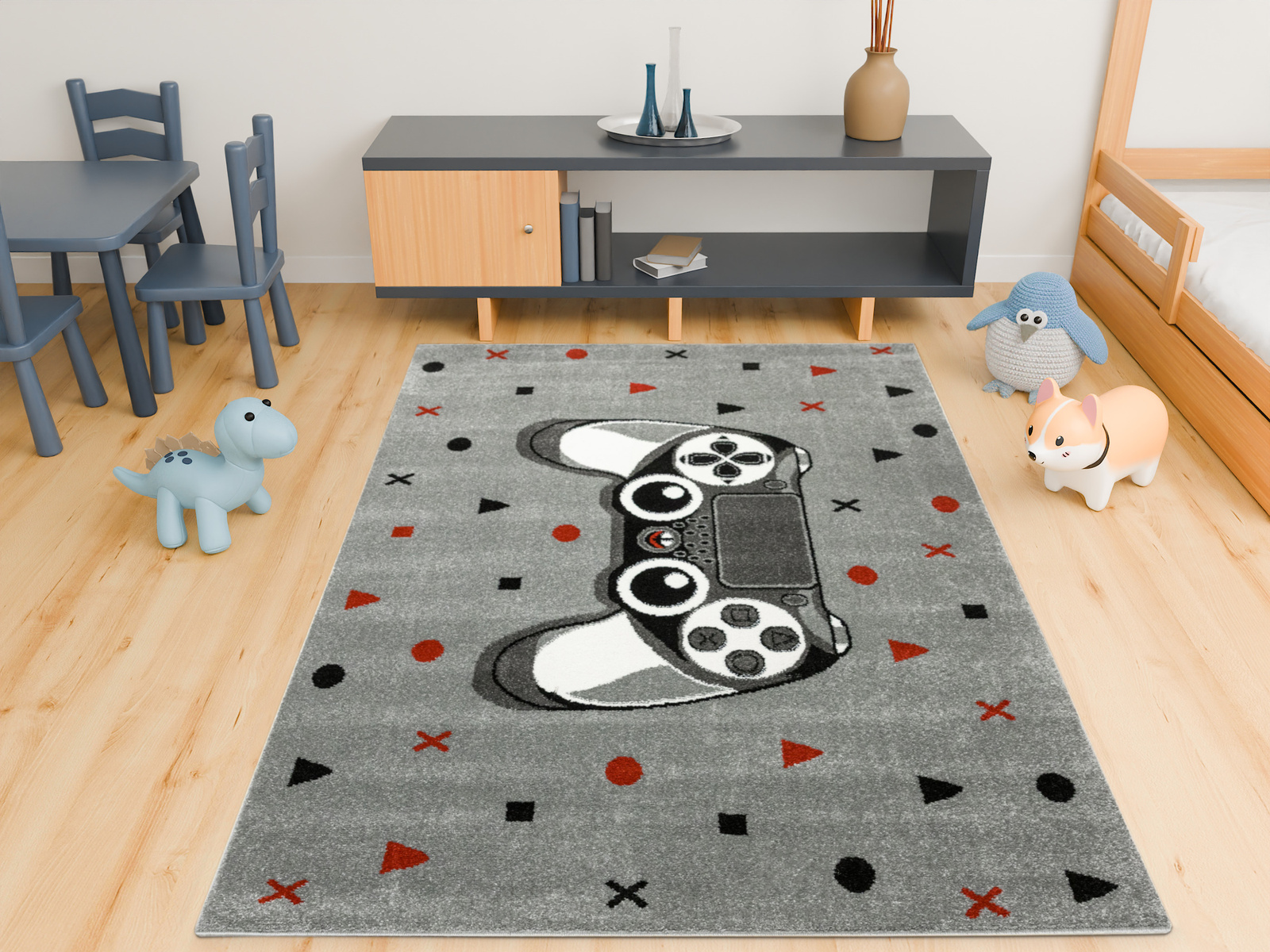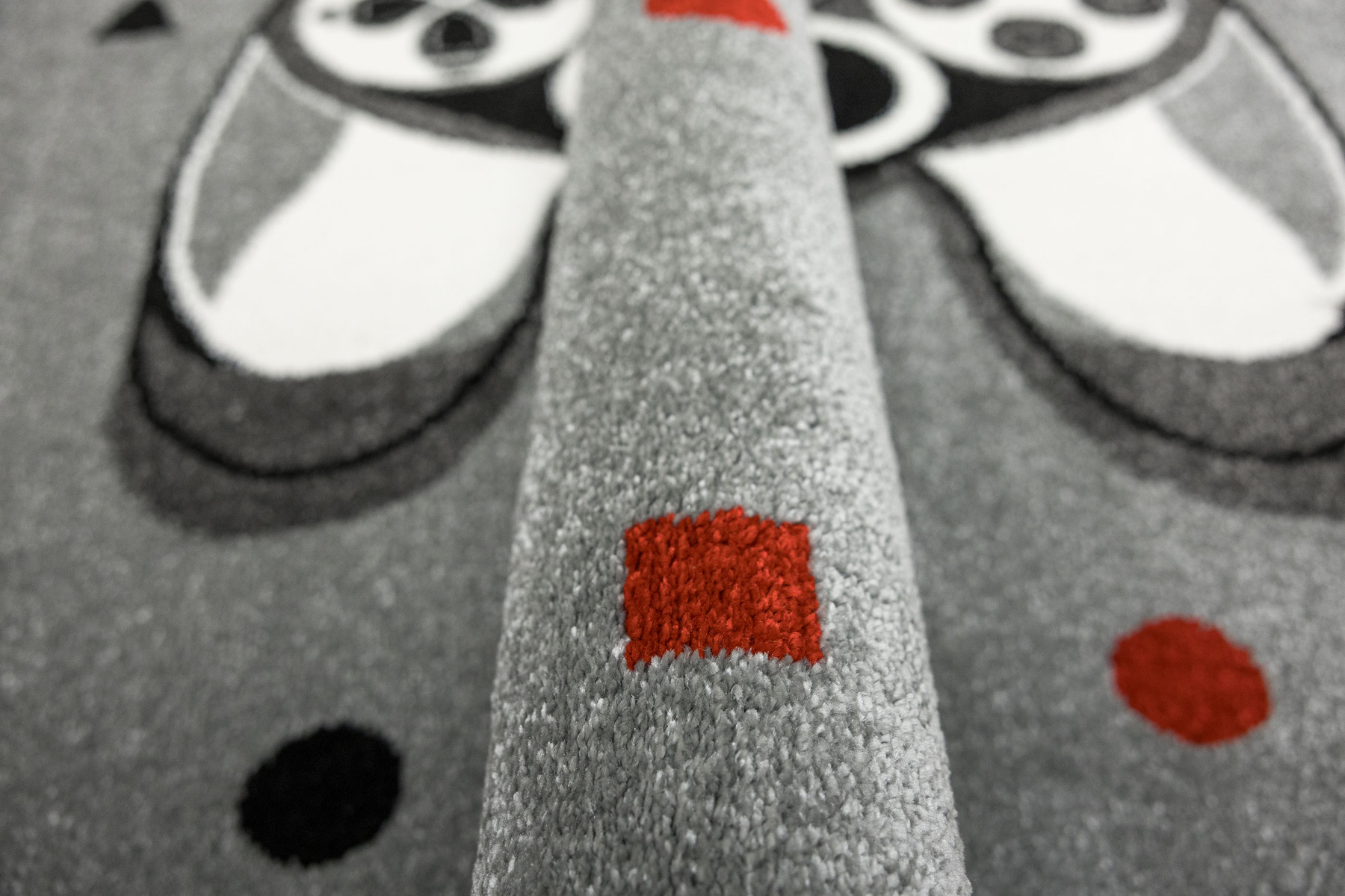- Dywan dziecięcy Lima ze wzorem z game padem, kontrolerem do konsoli w odcieniach szarości, czerwieni, czerni i bieli - miękkie i przyjemne runo z tym worem tworzy idealny dodatek do pokojów miłośników gier.