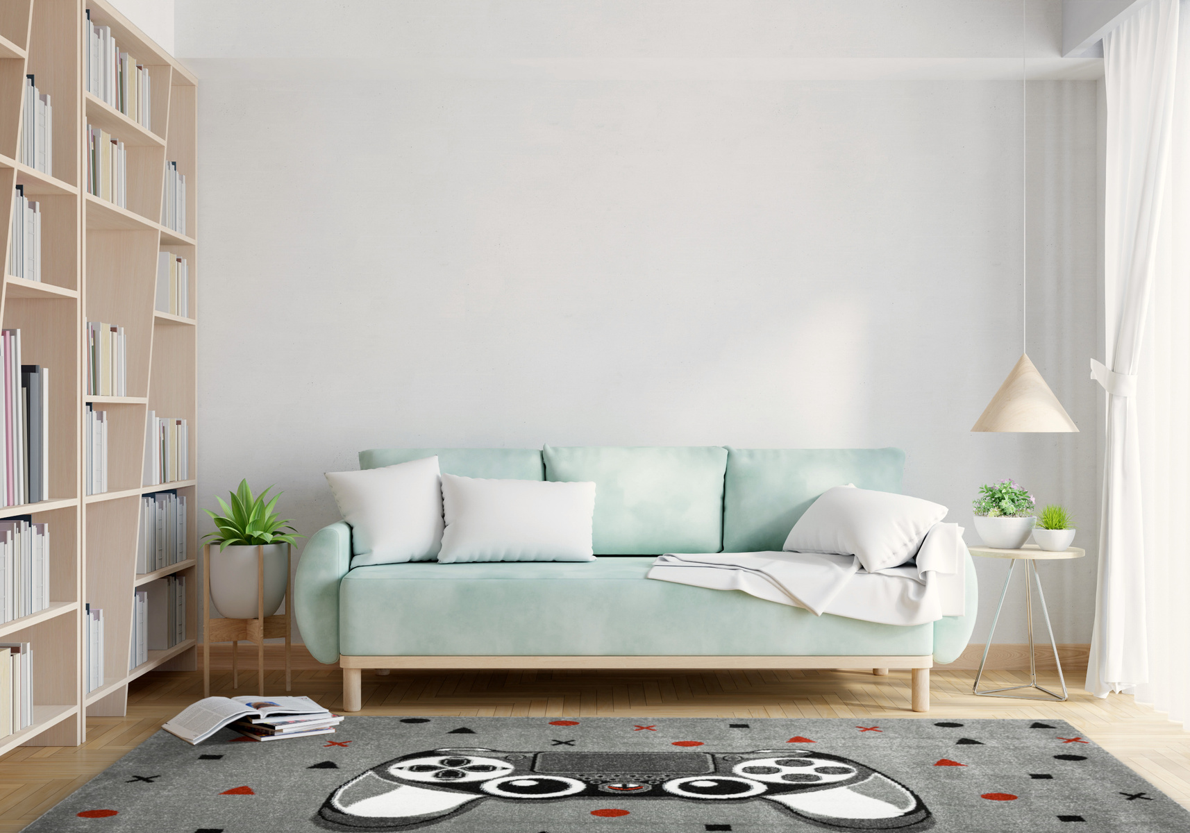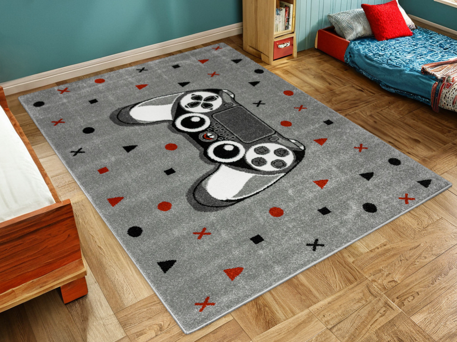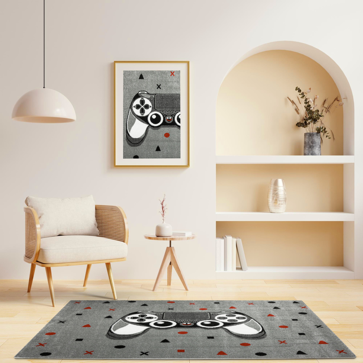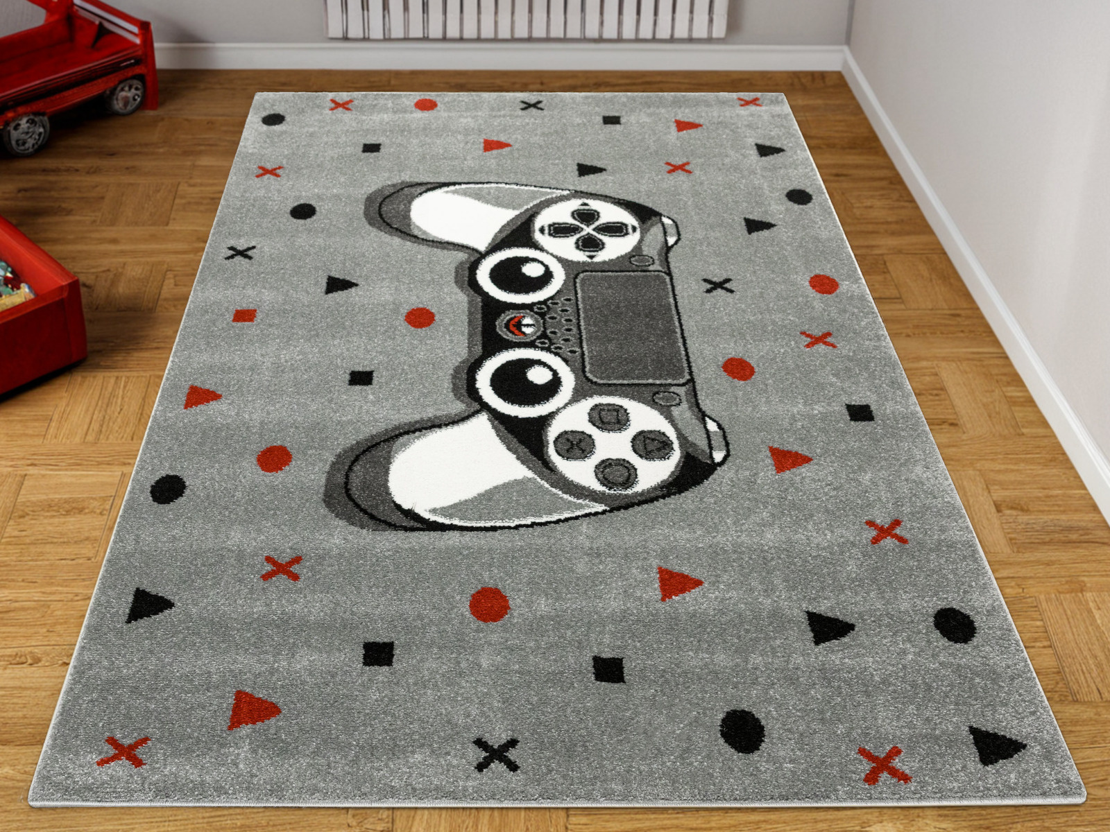 - Dywan dziecięcy Lima ze wzorem z game padem, kontrolerem do konsoli w odcieniach szarości, czerwieni, czerni i bieli - miękkie i przyjemne runo z tym worem tworzy idealny dodatek do pokojów miłośników gier.