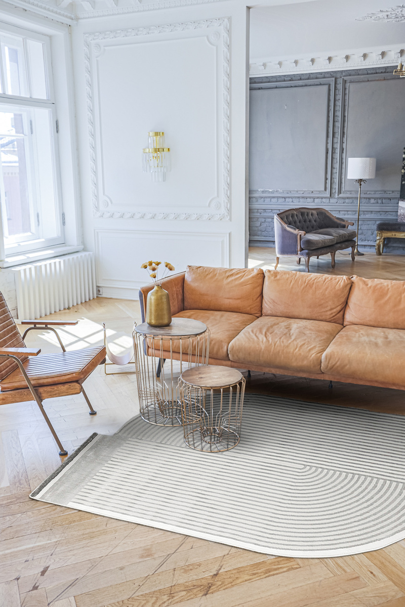 Dywan Selenne o nieregularnych kształtach to wyjątkowy dodatek do aranżacji wnętrz, łączący w sobie nowoczesność i elegancję.