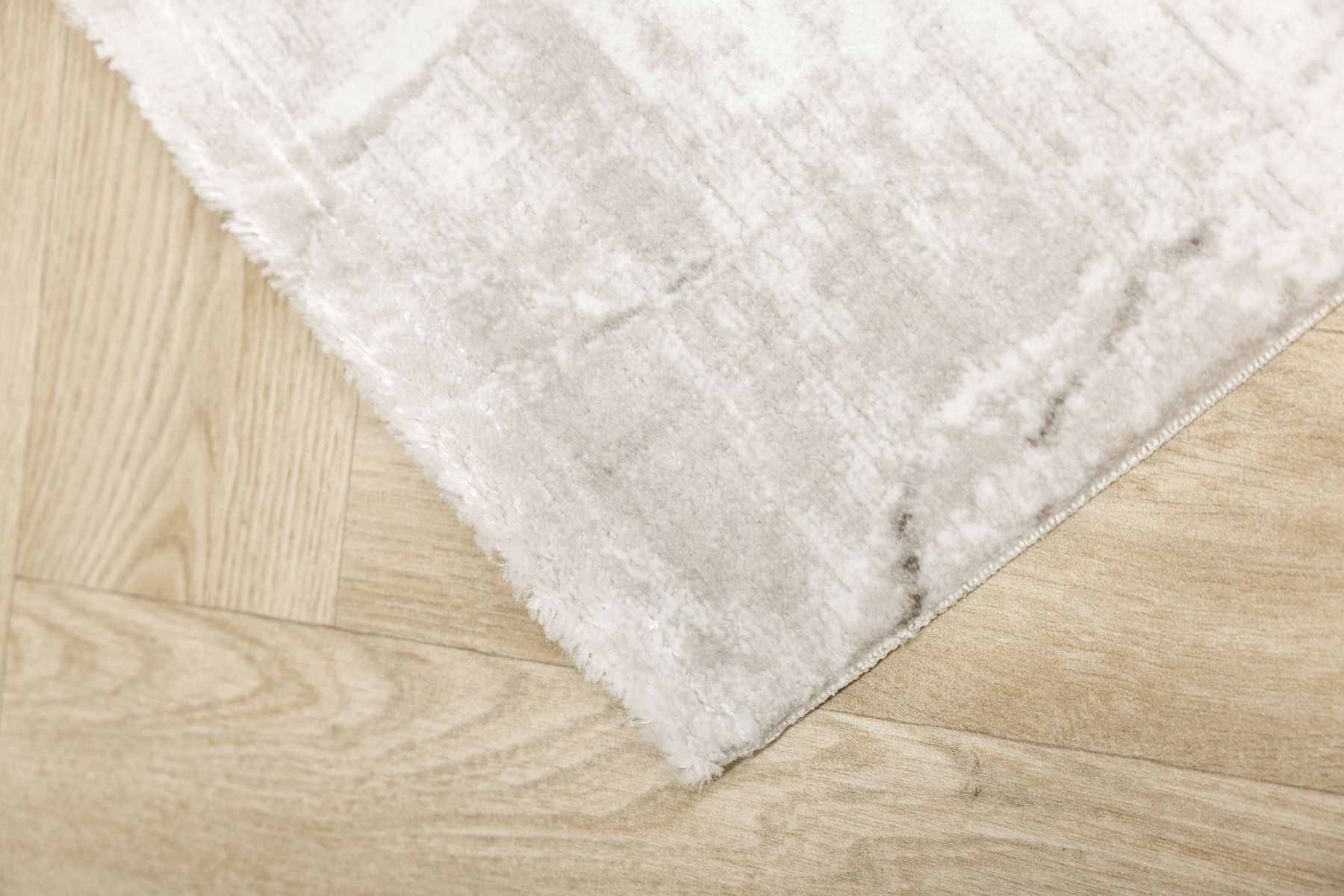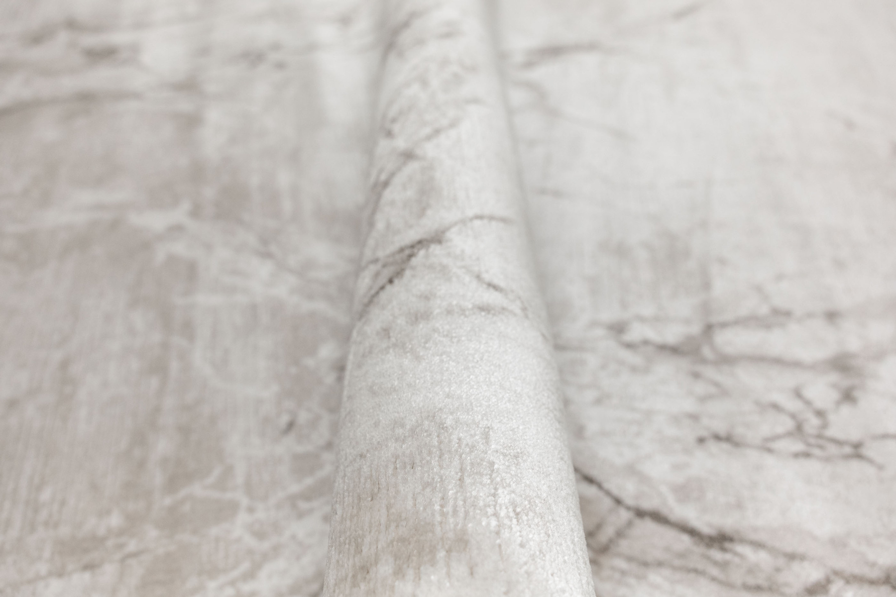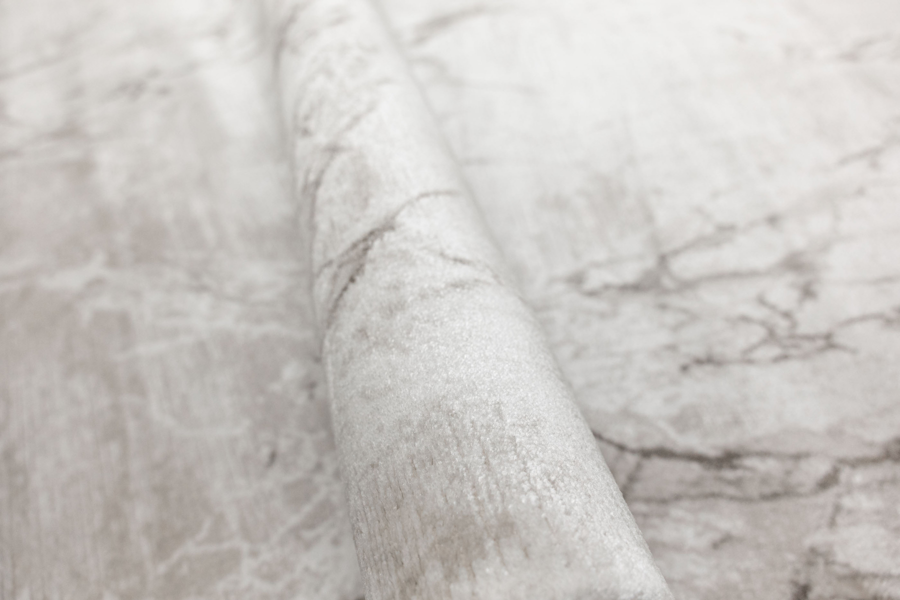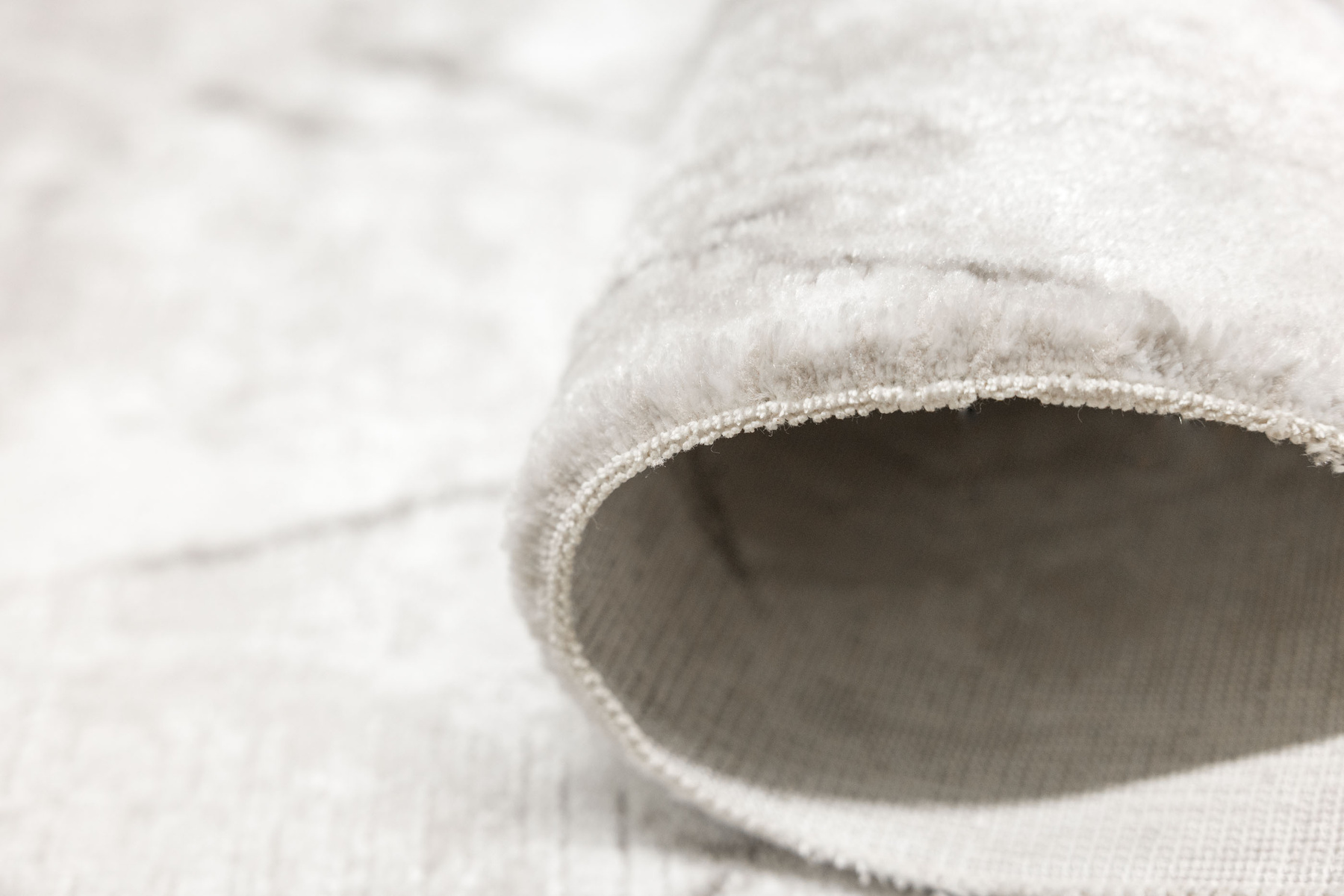 • Luksusowy dywan Nantes o mięciutkim, lekko lśniącym, dwupoziomowym runie z przecieranym wzorem imitującym taflę marmuru, w odcieniach szarości zmieszanej z beżem z akcentami kremu, ze spodem wykończonym bawełną.
