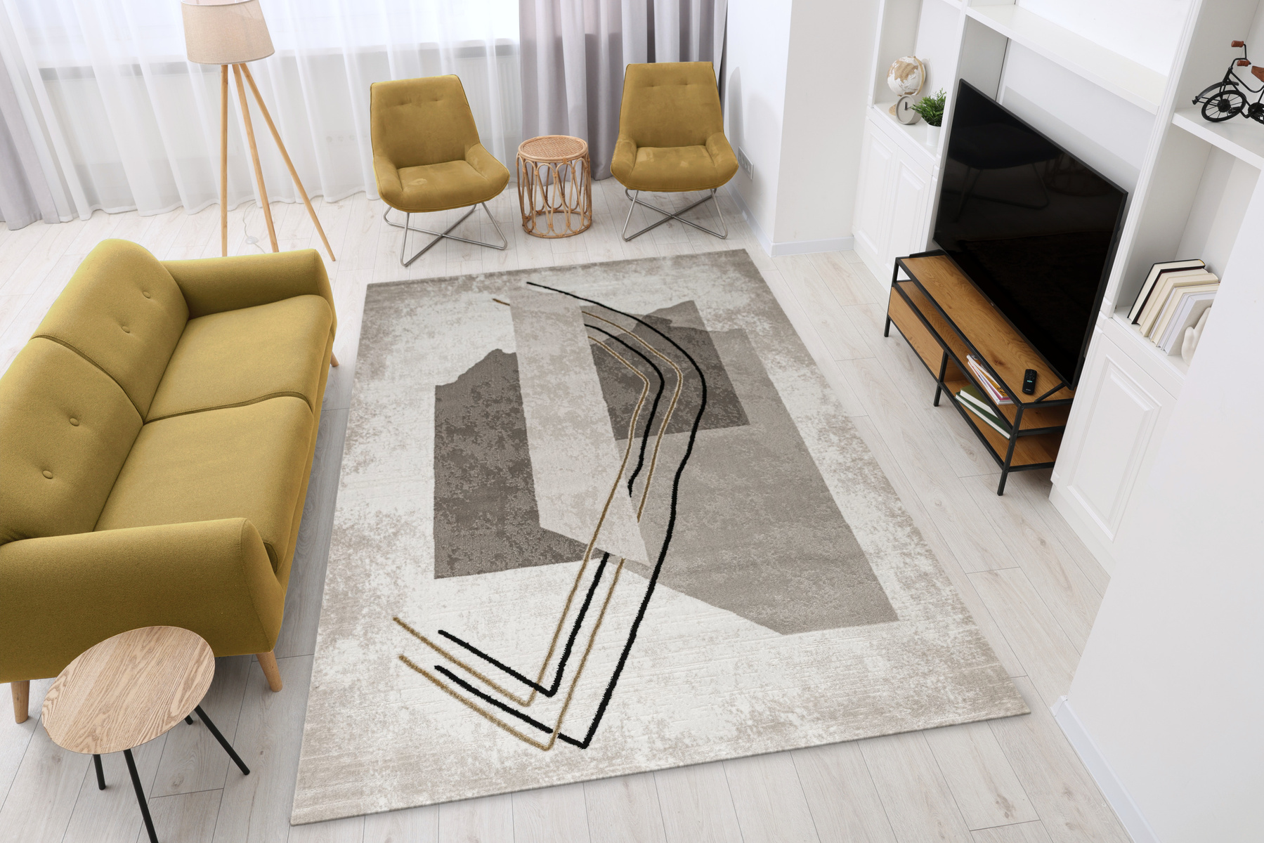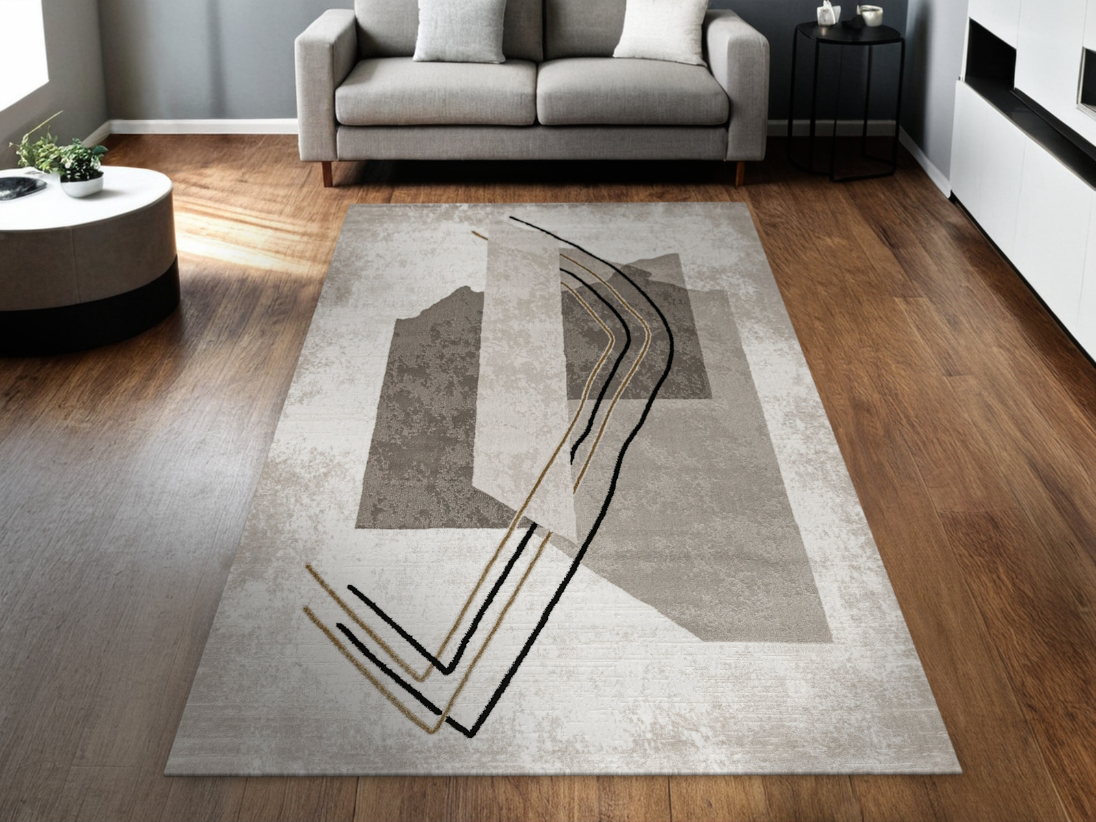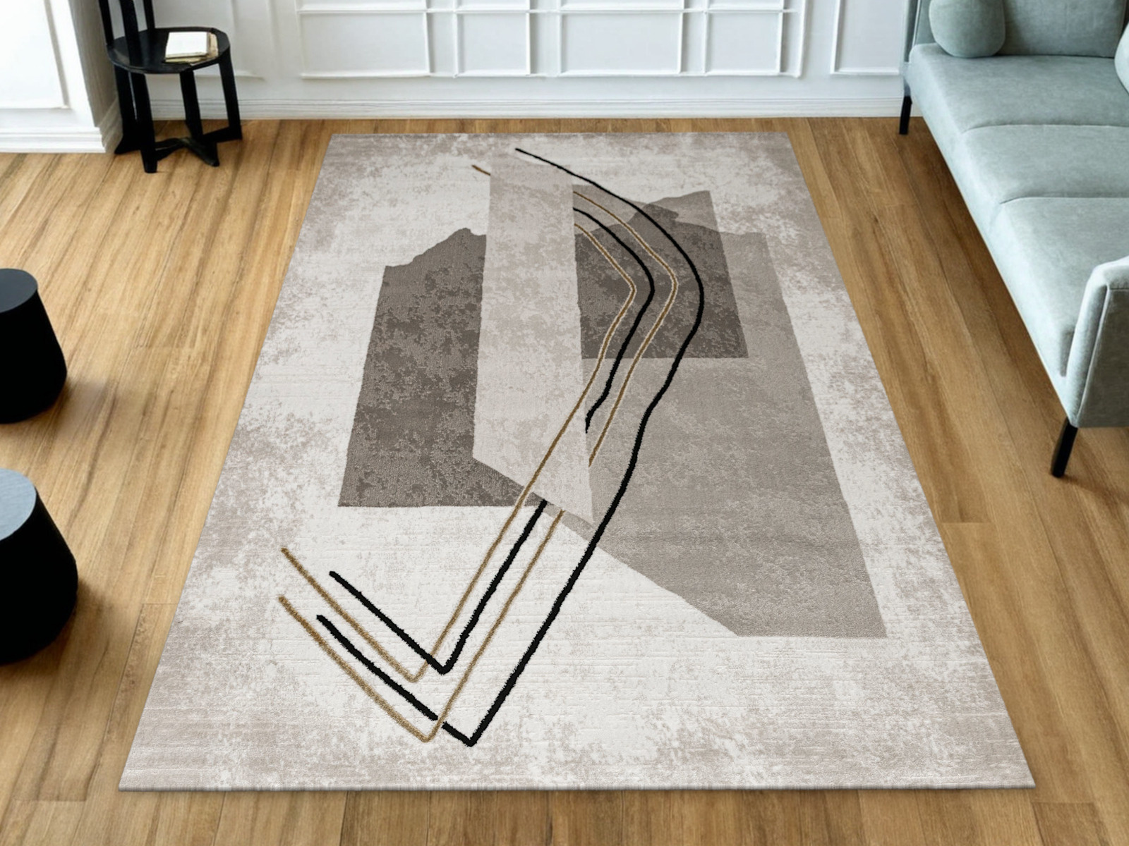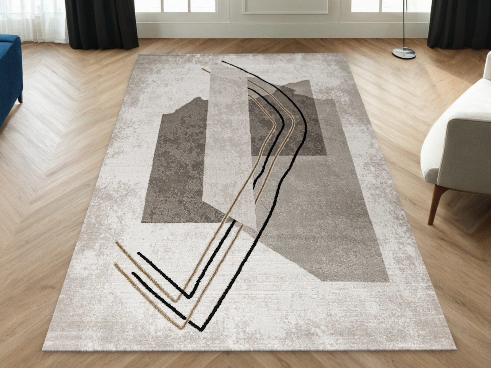 Dywan Kashmir KR168S Vizon/Black Szarobeżowy Złoty Abstrakcja