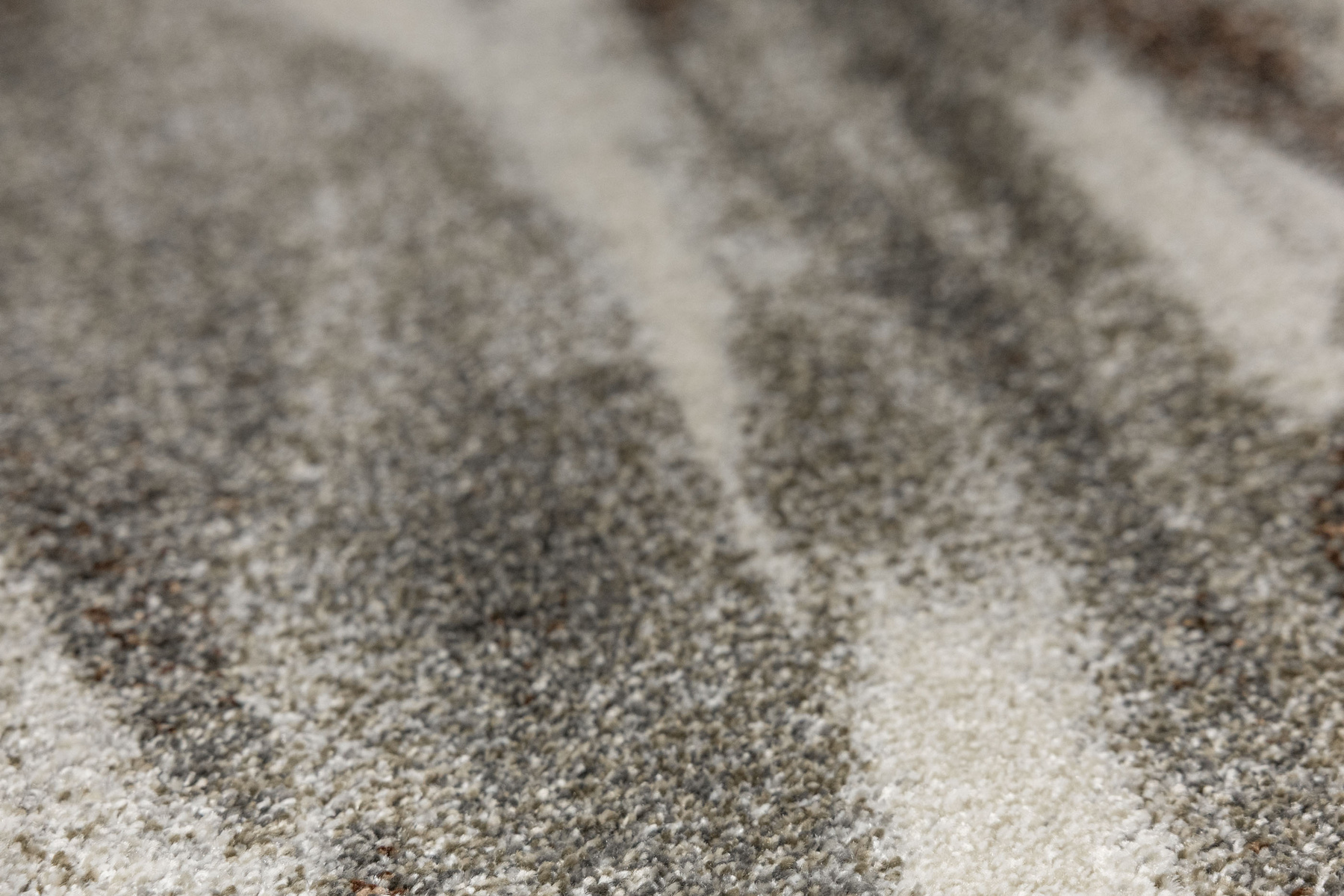- Miękki i przyjemny w dotyku dywan Ponte o runie ozdobionym nowoczesnym przecieranym wzorem w szarościach z akcentami kremu, srebrnego, beżu, brązu i czerni. Spód wykończony jutą.