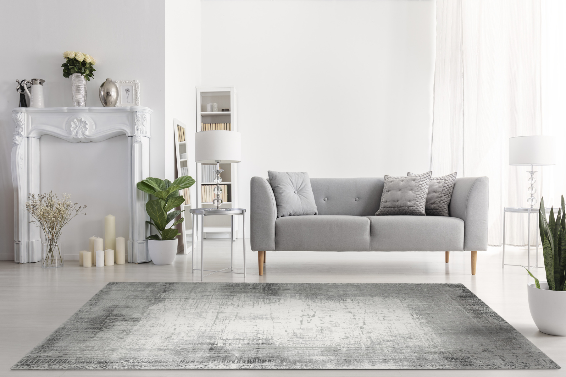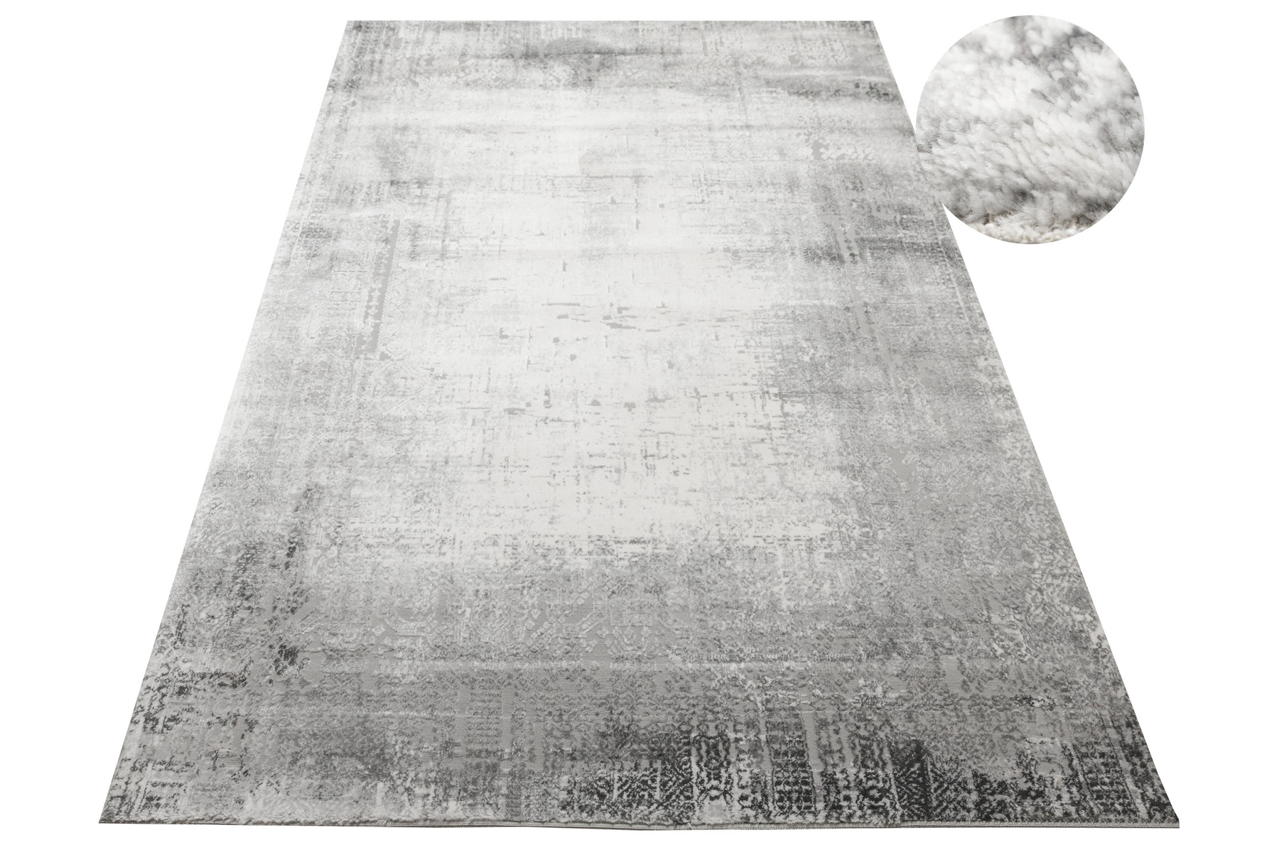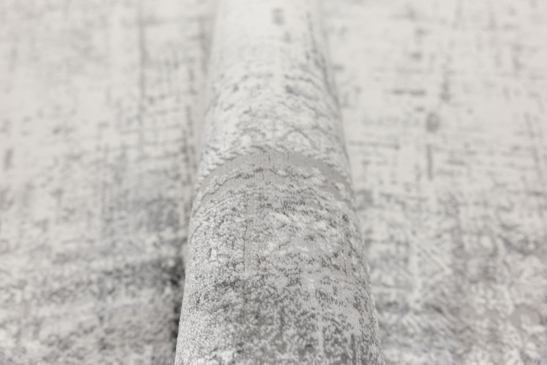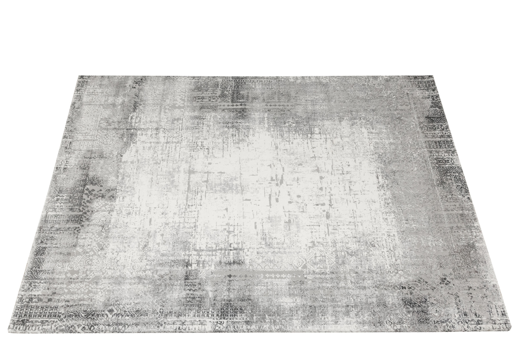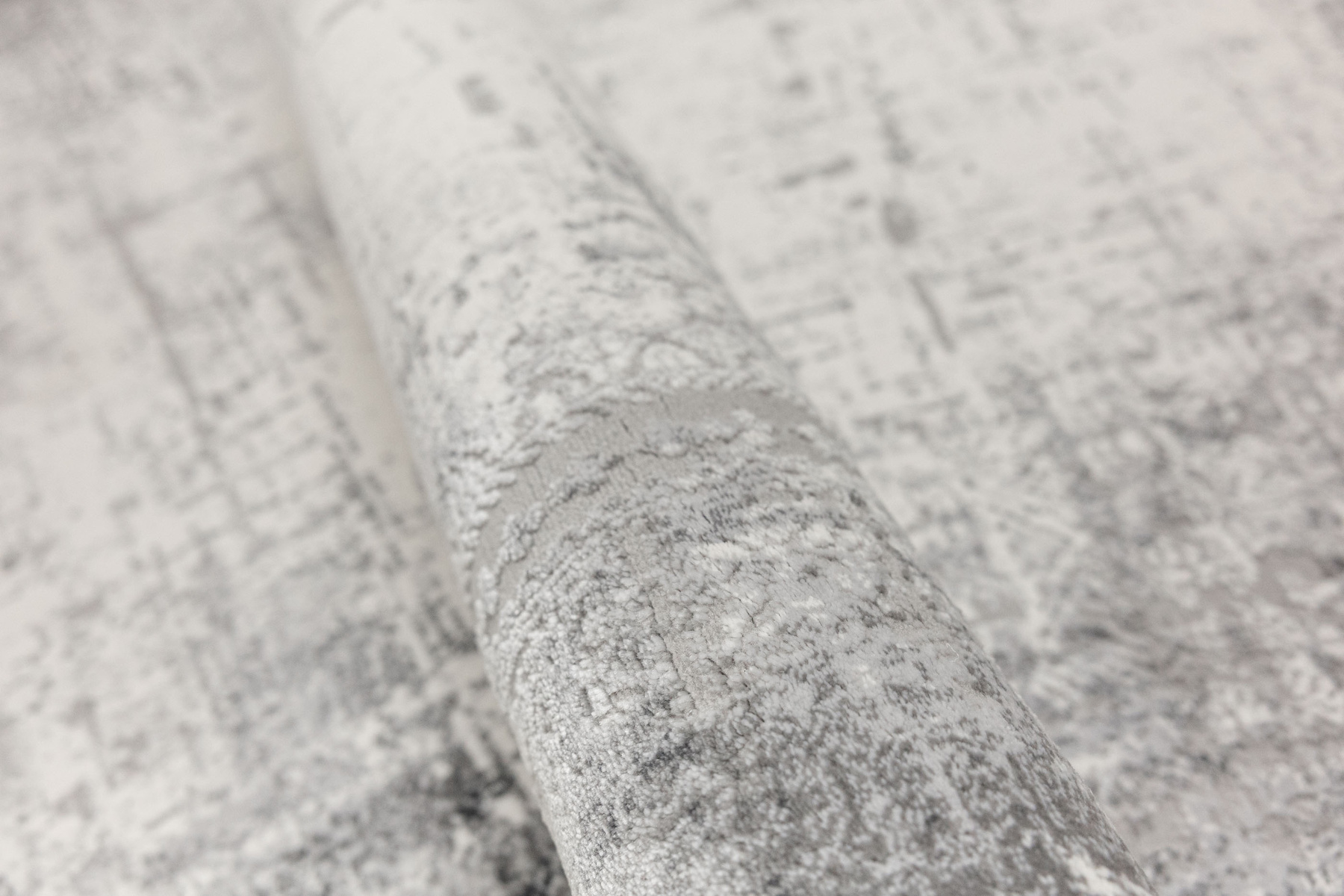 • Luksusowy dywan Nantes o mięciutkim, lekko lśniącym, dwupoziomowym runie ze złożonym wzorem ornamentowym, w odcieniach szarości z akcentami kremu, ze spodem wykończonym bawełną.