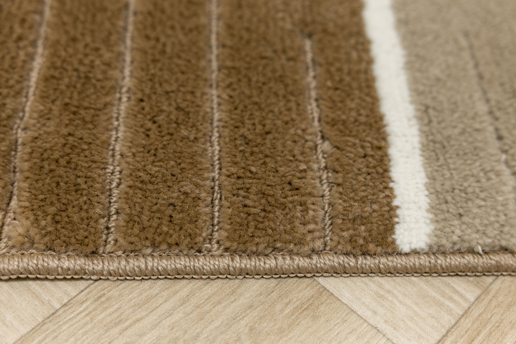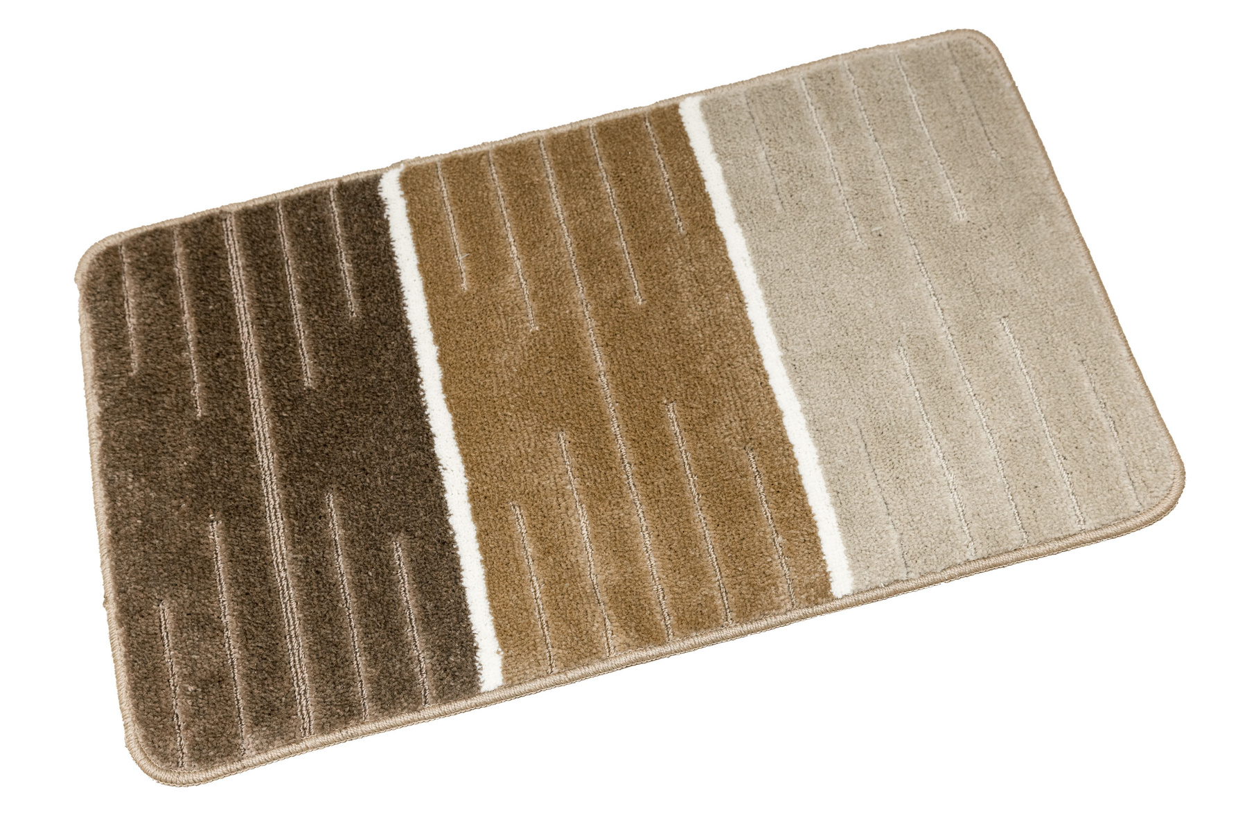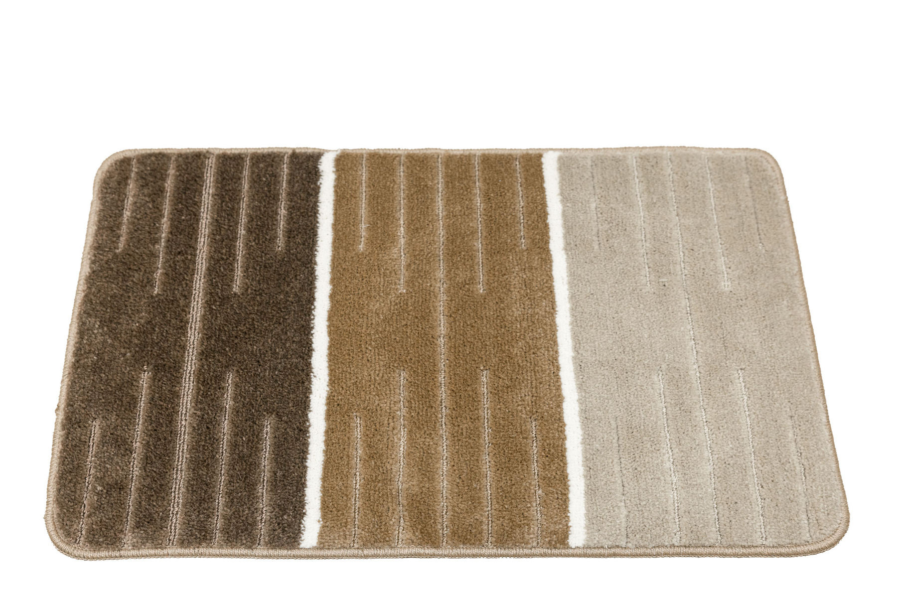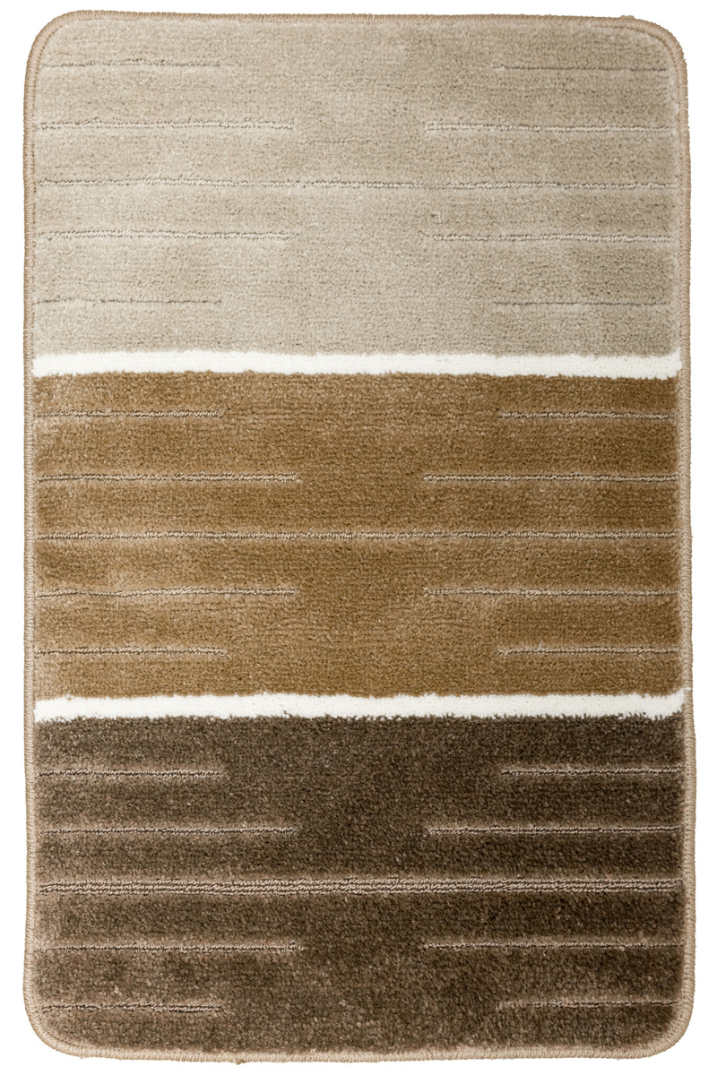 - Miękki i przyjemny w dotyku zestaw łazienkowy Como Beige ze wzorem w paski, dwupoziomowym runem i antypoślizgowym spodem. Dywaniki można stosować na ogrzewanie podłogowe.