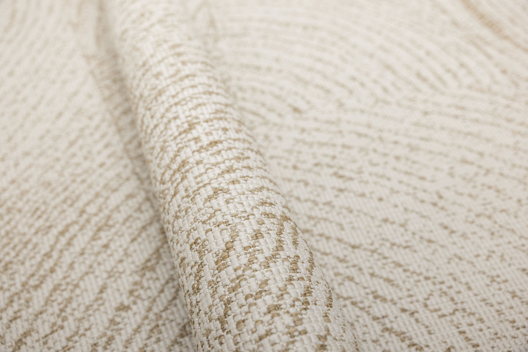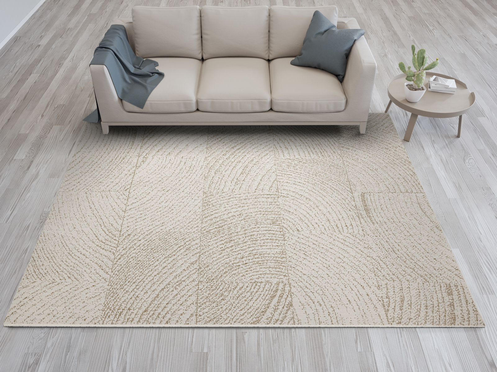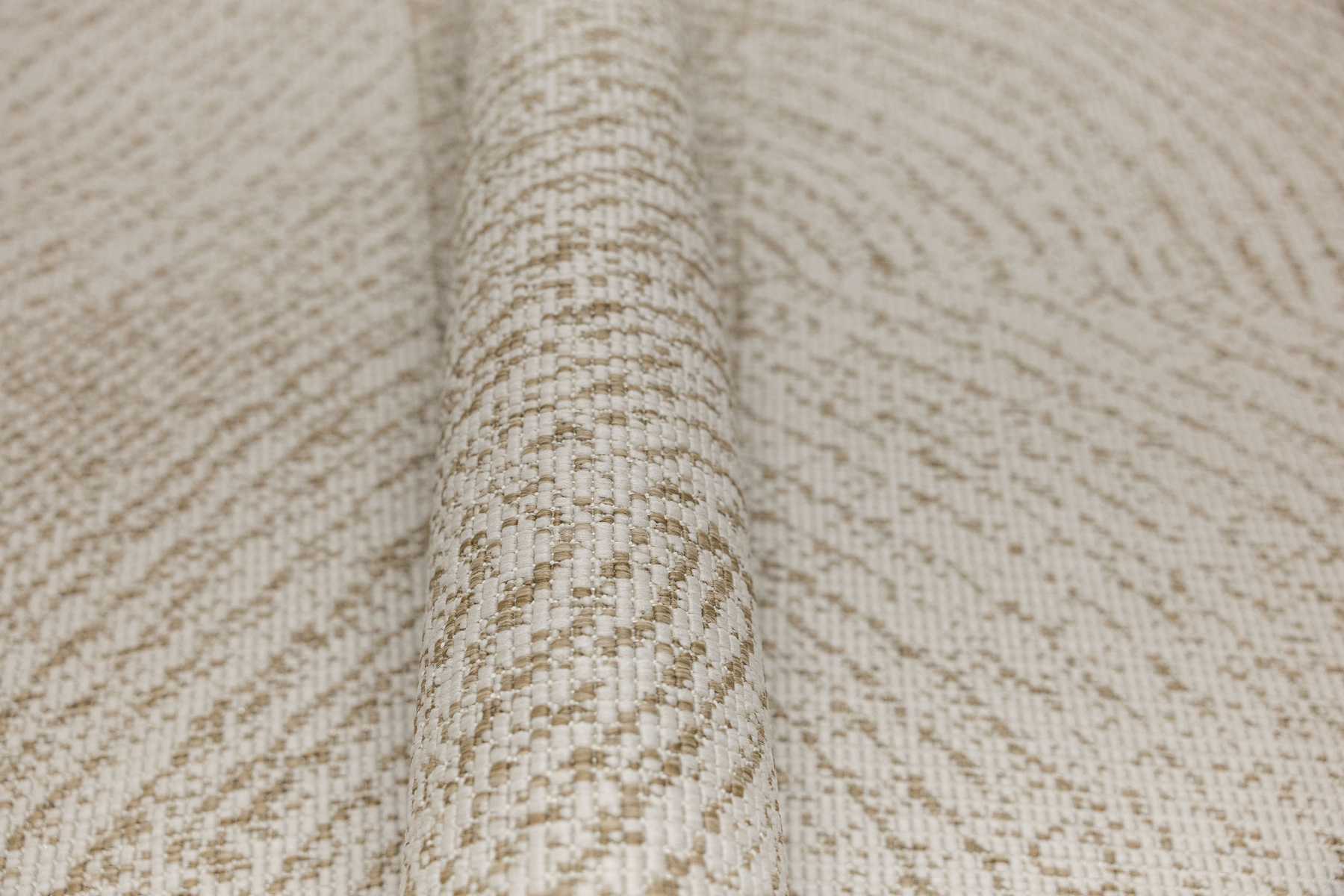 - Dwustronny, sznurkowy dywan Brussels belgijskiej produkcji z naturalnym wzorem z motywem drewna, w jasnych odcieniach kremu i beżu, który może być stosowany zarówno wewnątrz jak i na zewnątrz.