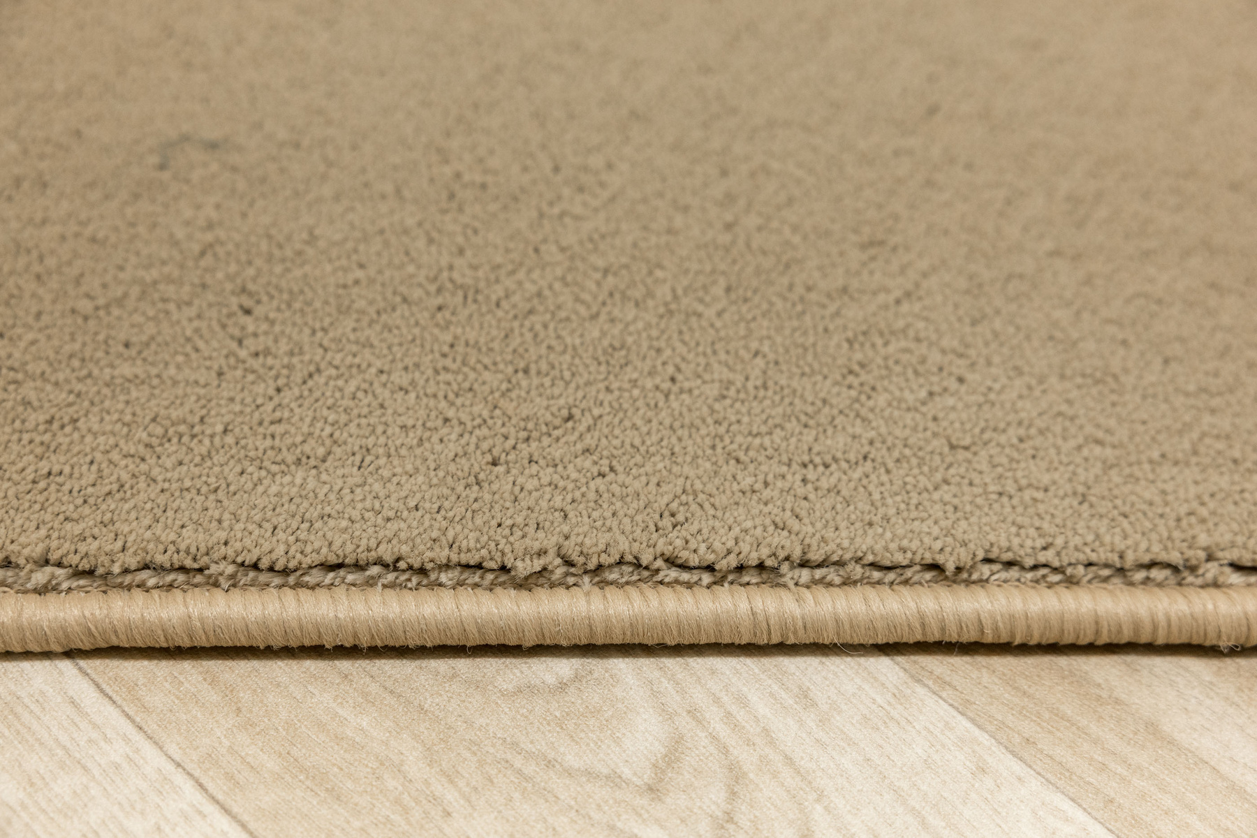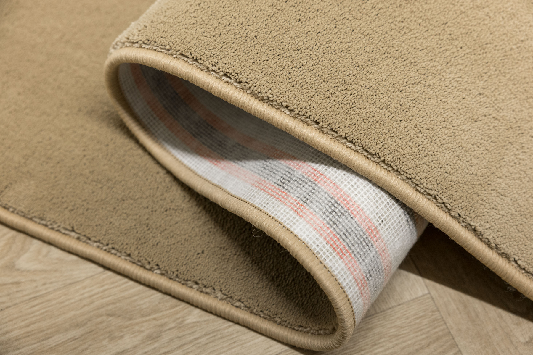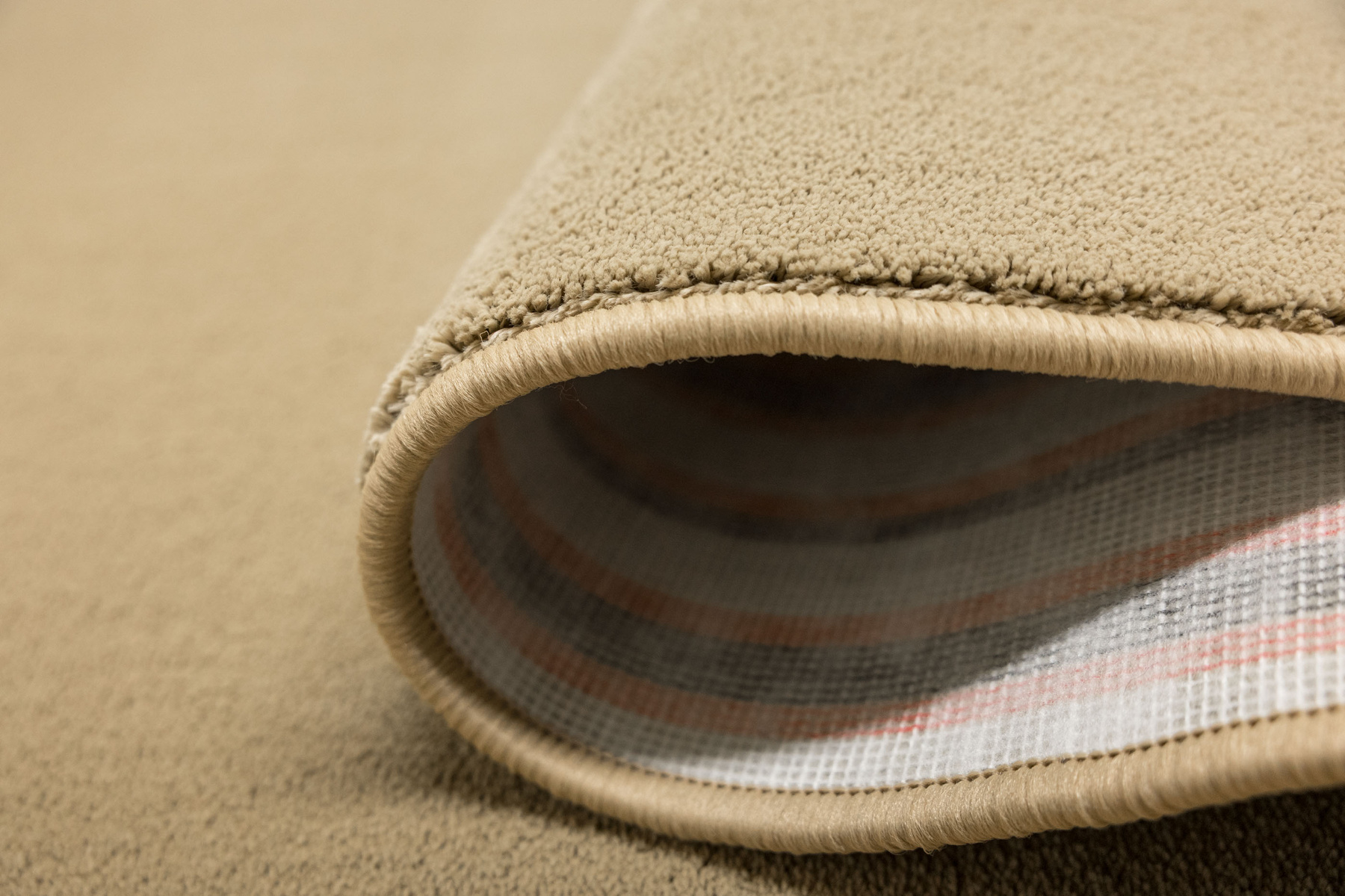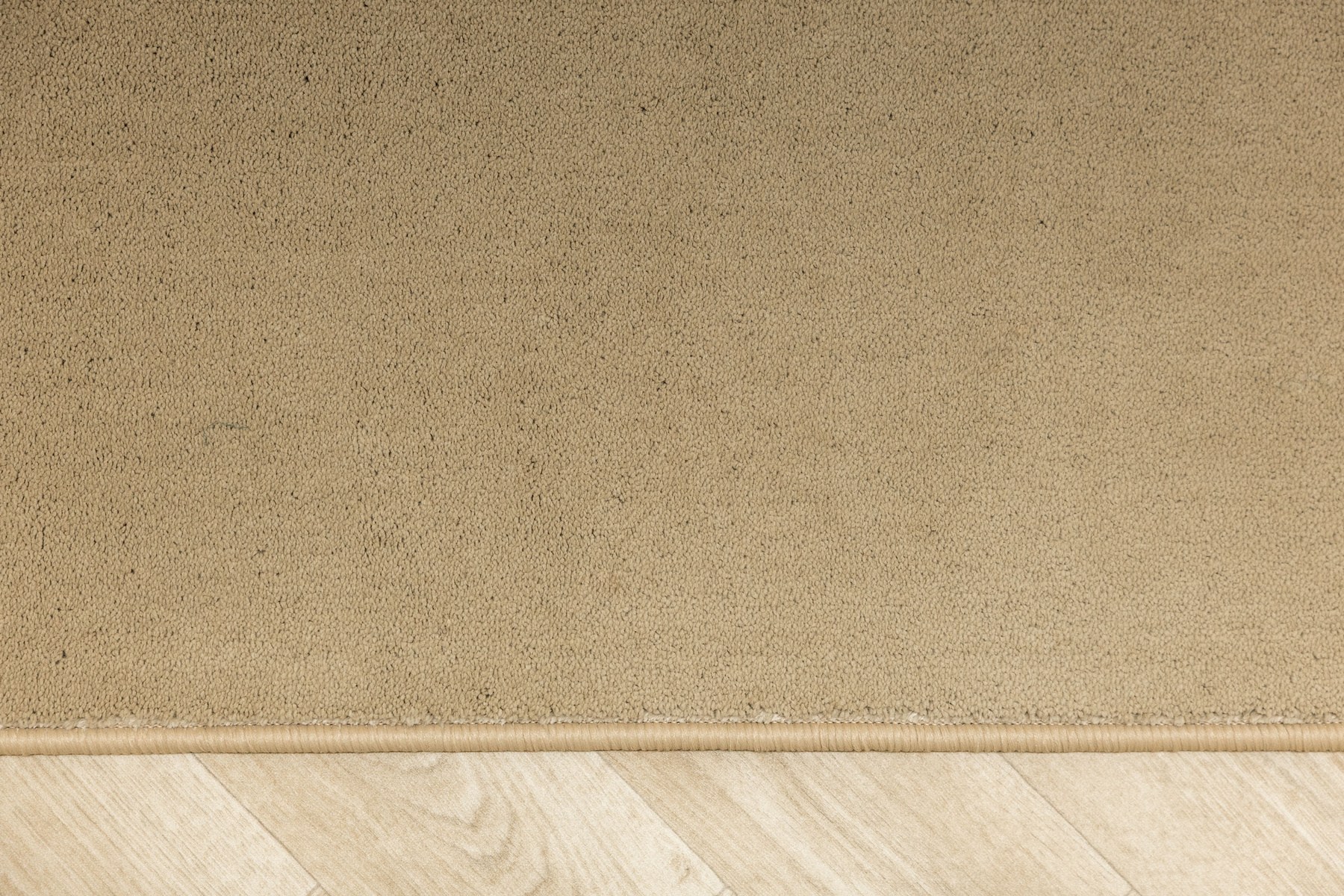 - Nowoczesny dywan z wykładziny Violin z grubym, gęstym runem ciętym typu saxon, w lśniącym odcieniu beżu oraz spodem wykończonym połączeniem filcu i juty o nazwie Fusionback.