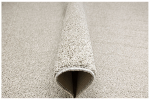 - Dywan z wykładziny Sphinx-special o miękkim runie typu SHAGGY w odcieniu szarości zmieszanej z beżem i ze spodem wykończonym filcem.