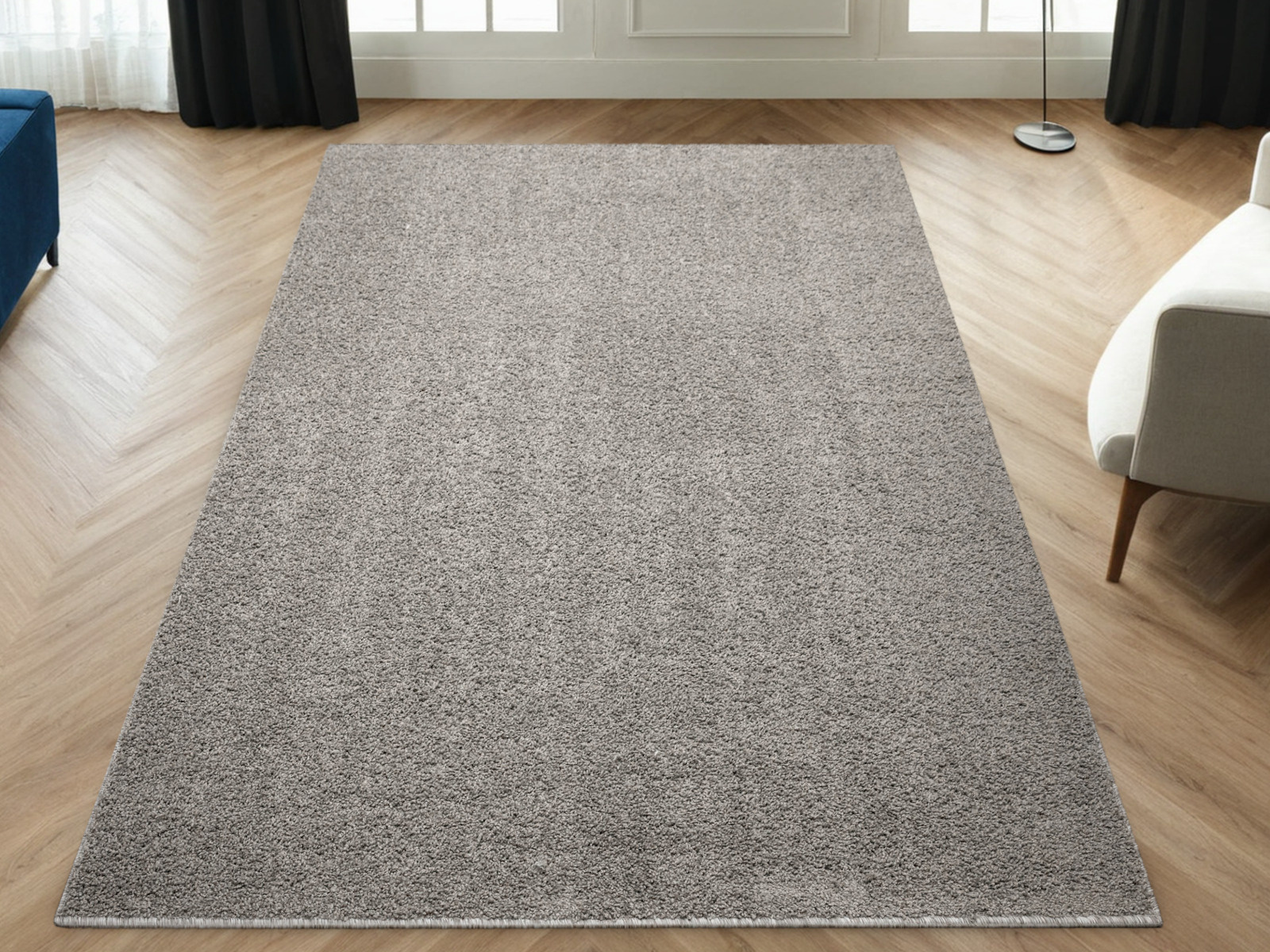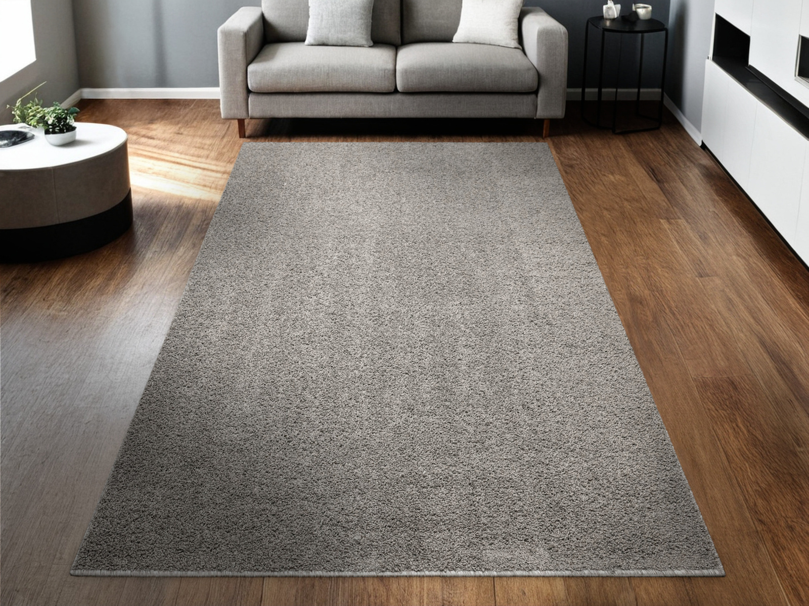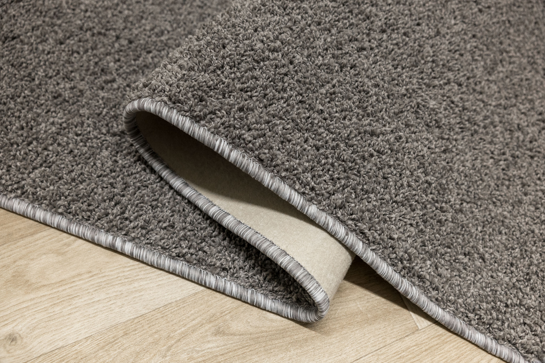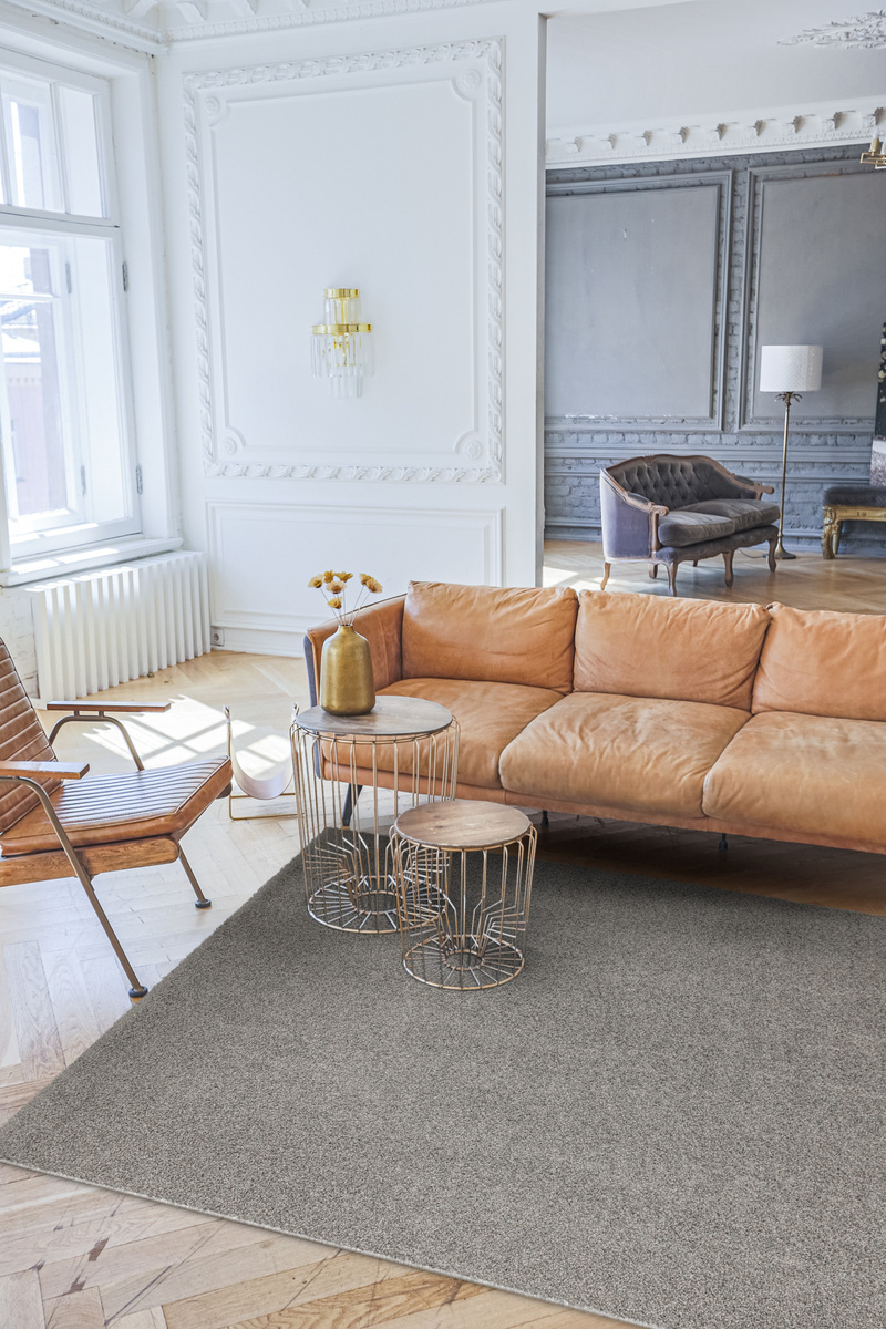 - Dywan z wykładziny Sphinx-special o miękkim runie typu SHAGGY w odcieniu szarości i ze spodem wykończonym filcem.
