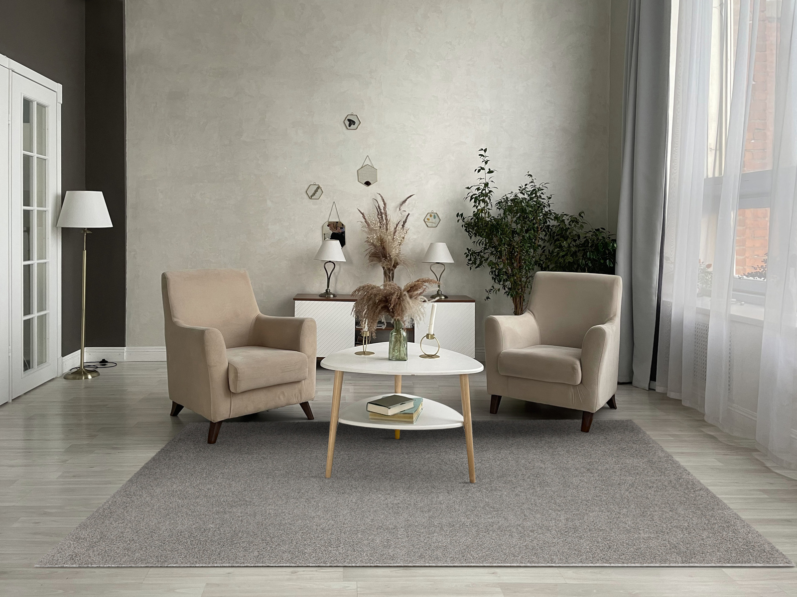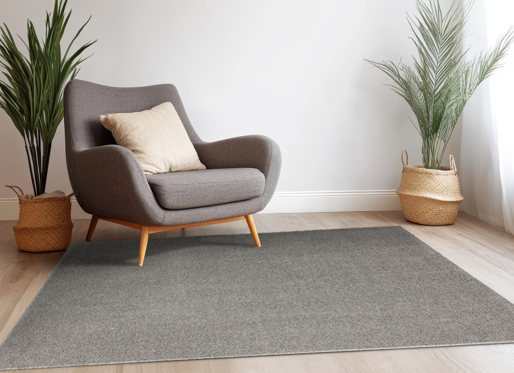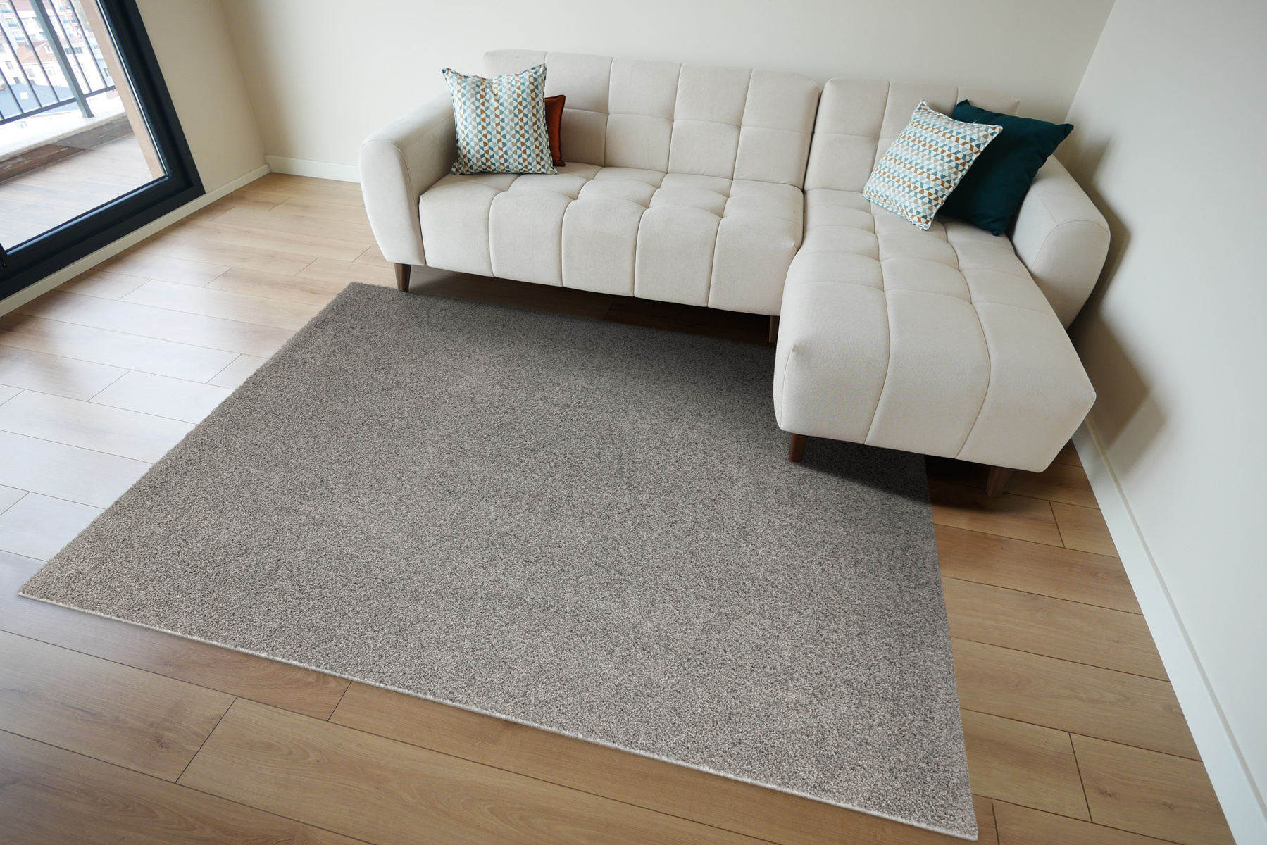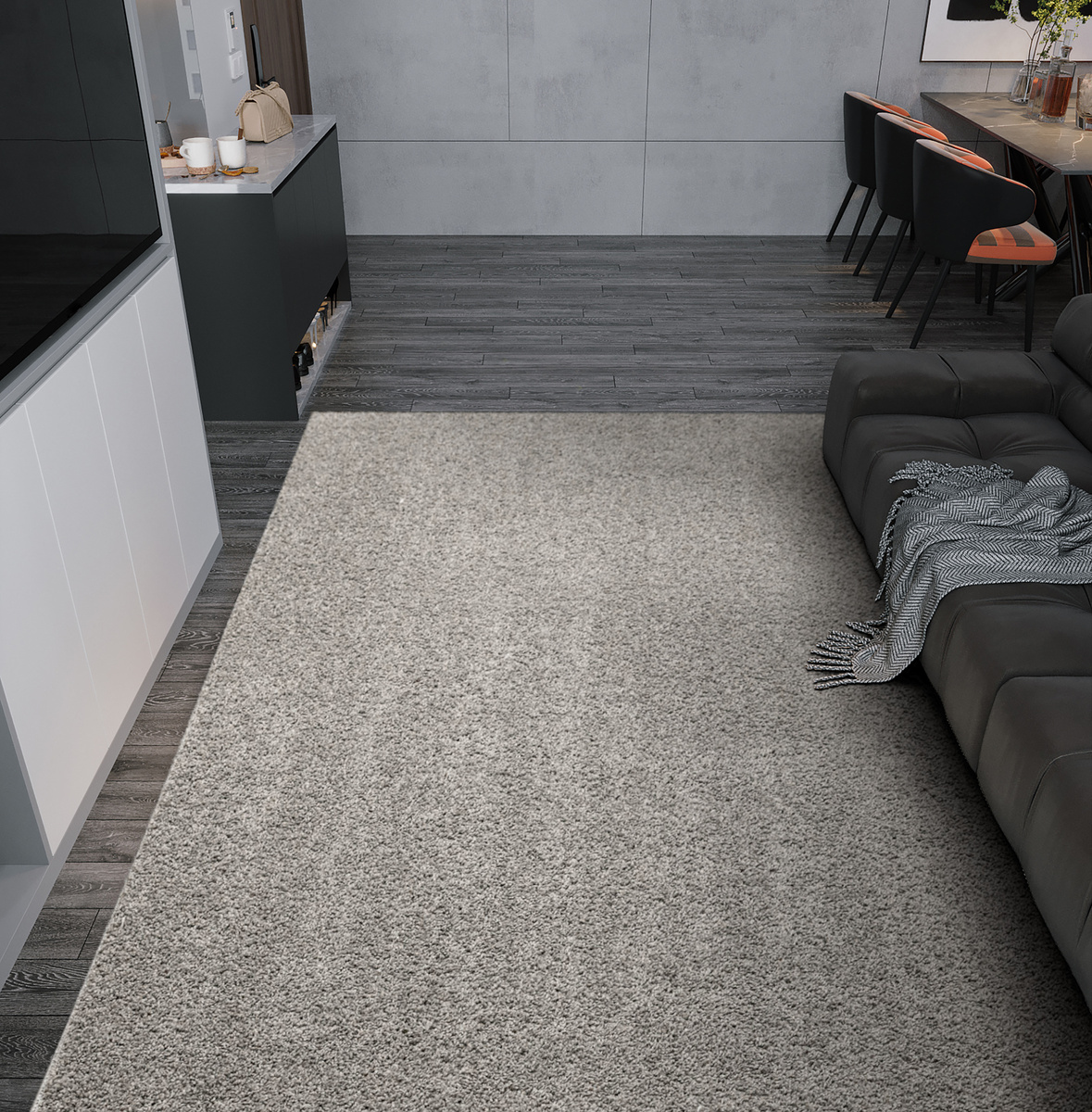 - Dywan z wykładziny Sphinx-special o miękkim runie typu SHAGGY w odcieniu szarości i ze spodem wykończonym filcem.