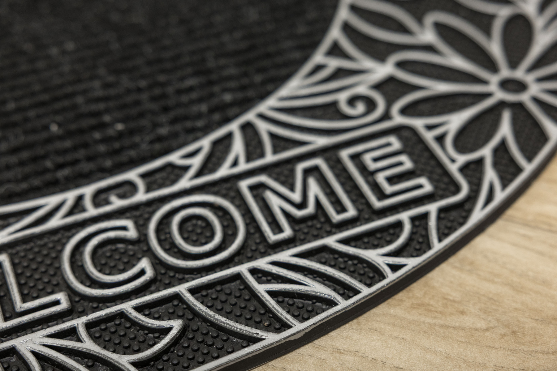 Oferowane wycieraczki Półokrągła Grey Welcome są odporne na warunki atmosferyczne oraz przystosowane do zastosowań  wewnętrznych oraz zewnętrznych.