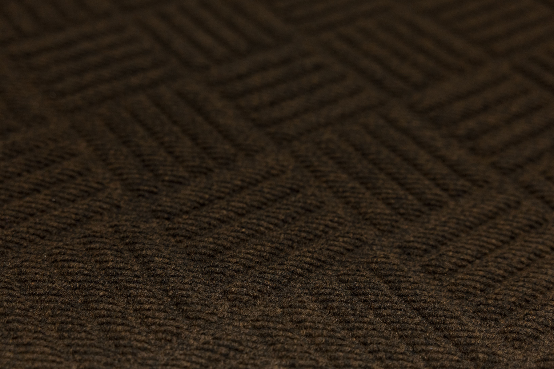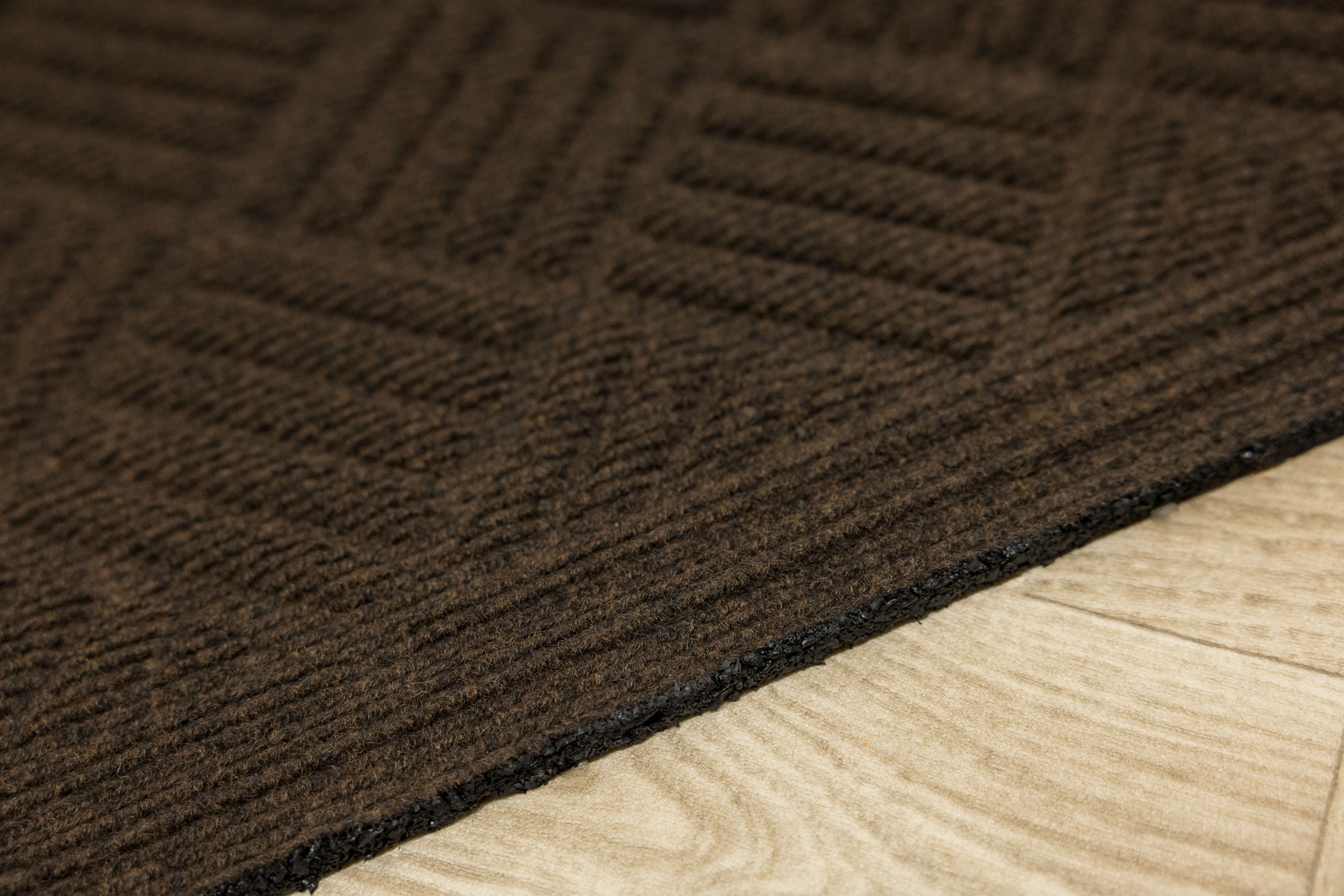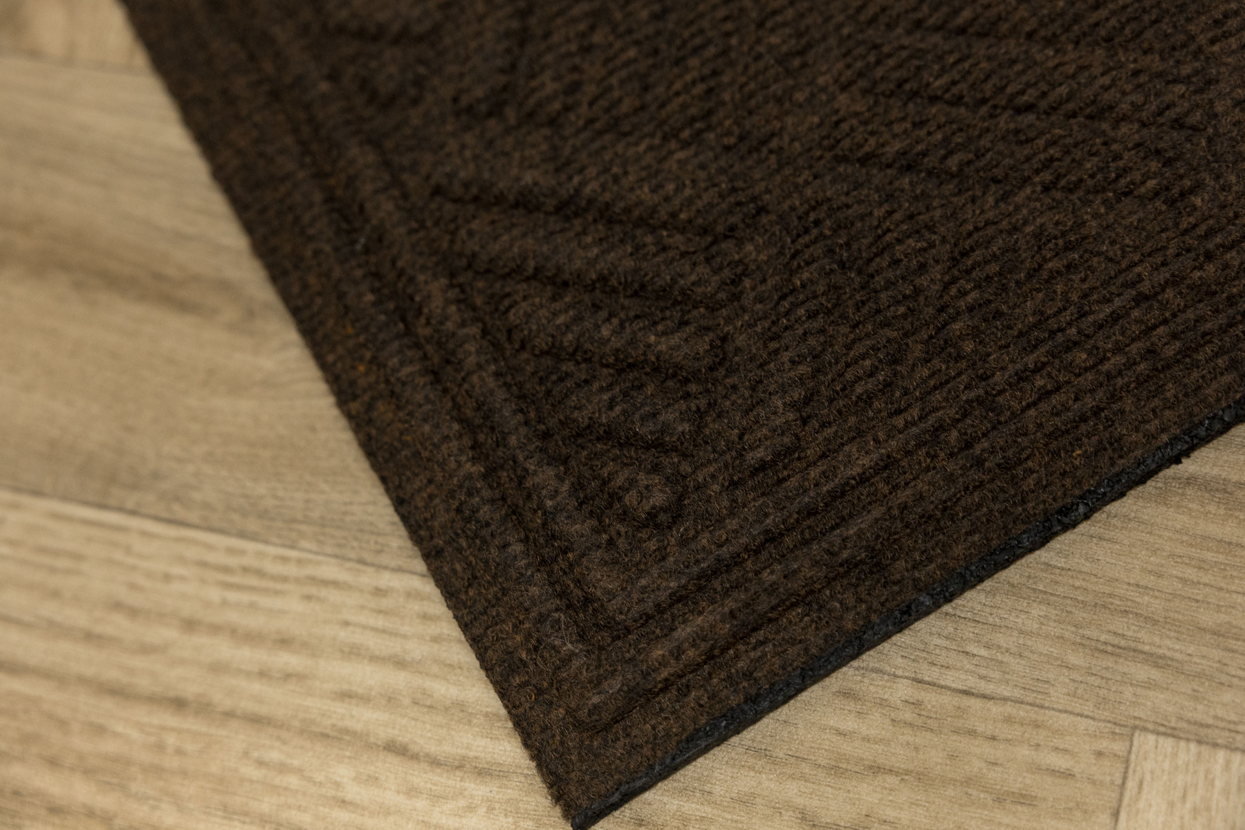 • Antypoślizgowa wycieraczka Kiri Contours Brąz z głęboko profilowanym wzorem geometrycznym przypominającym parkietaż, w odcieniu brązu.
