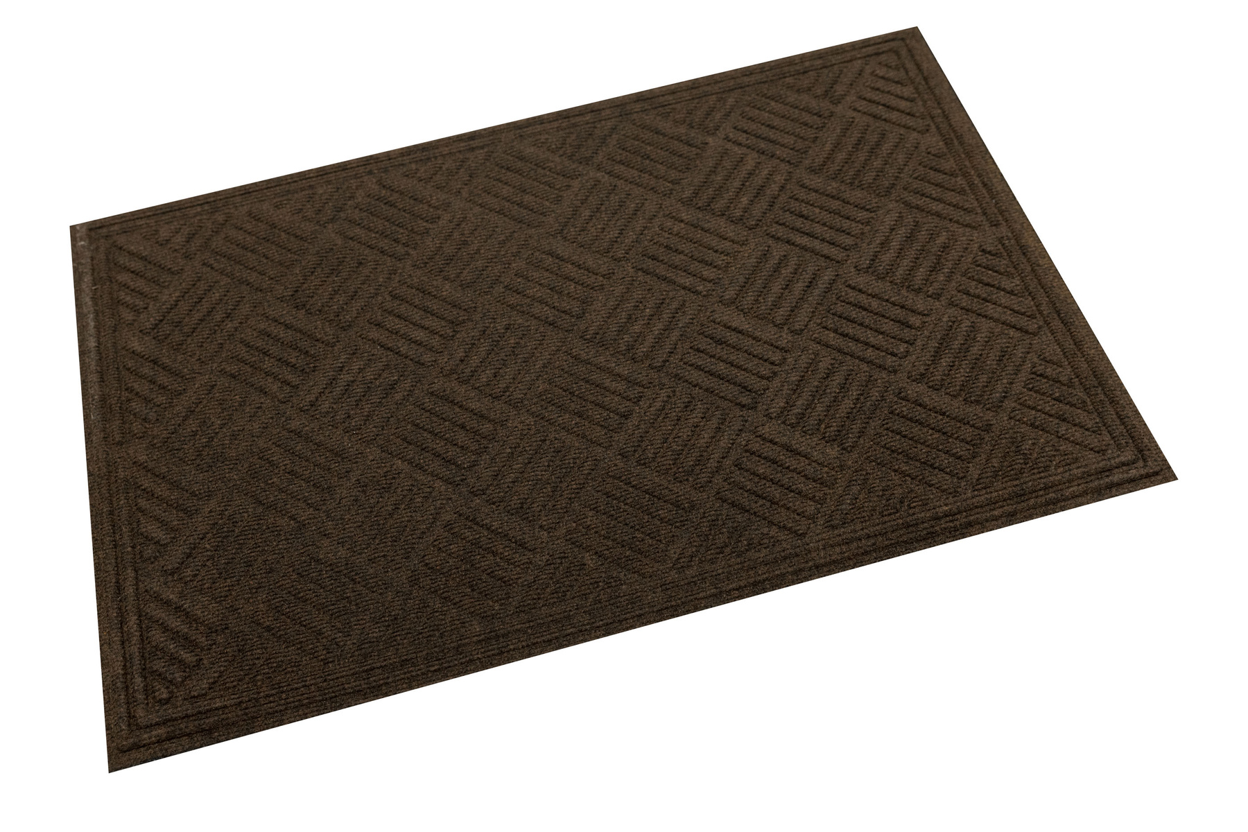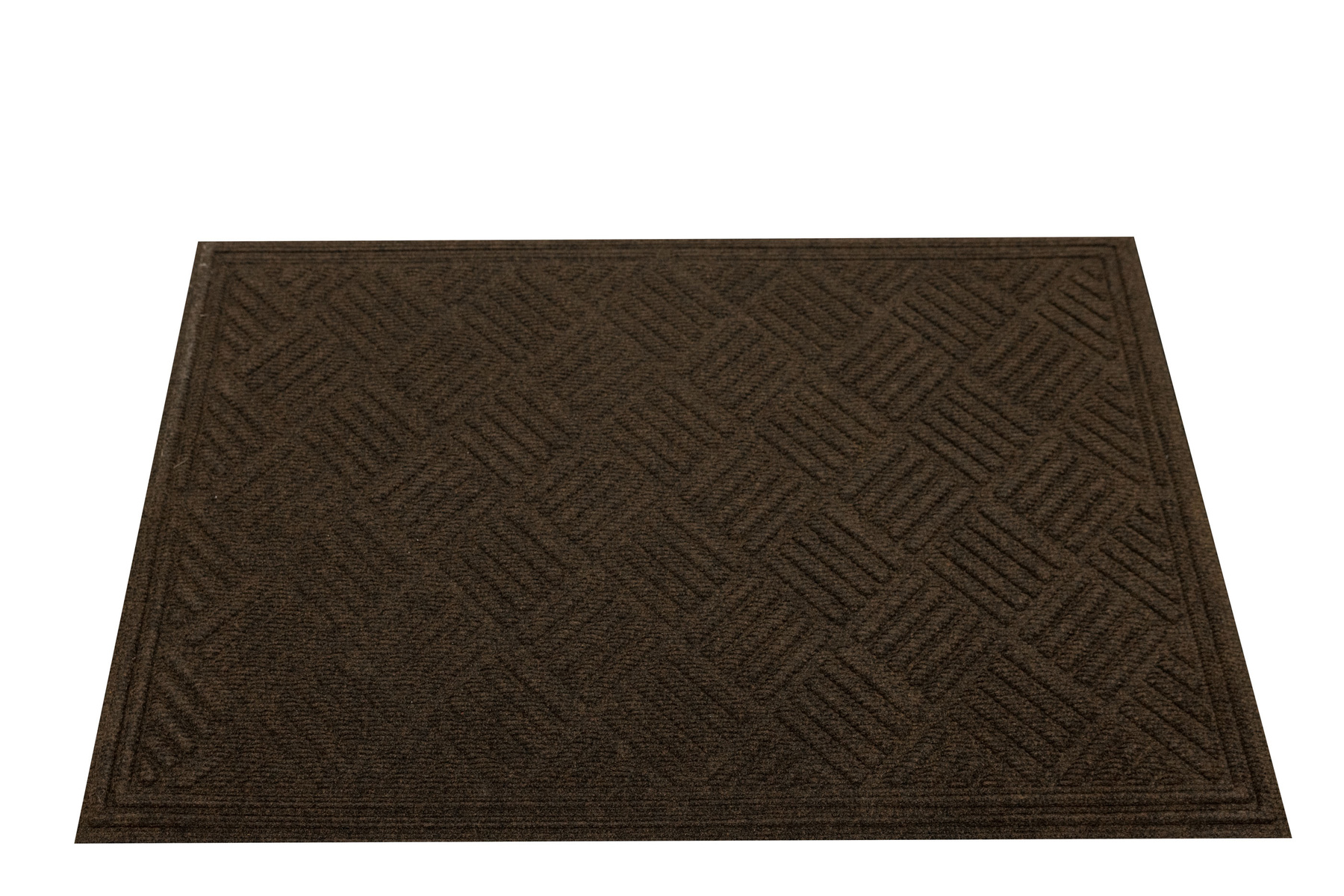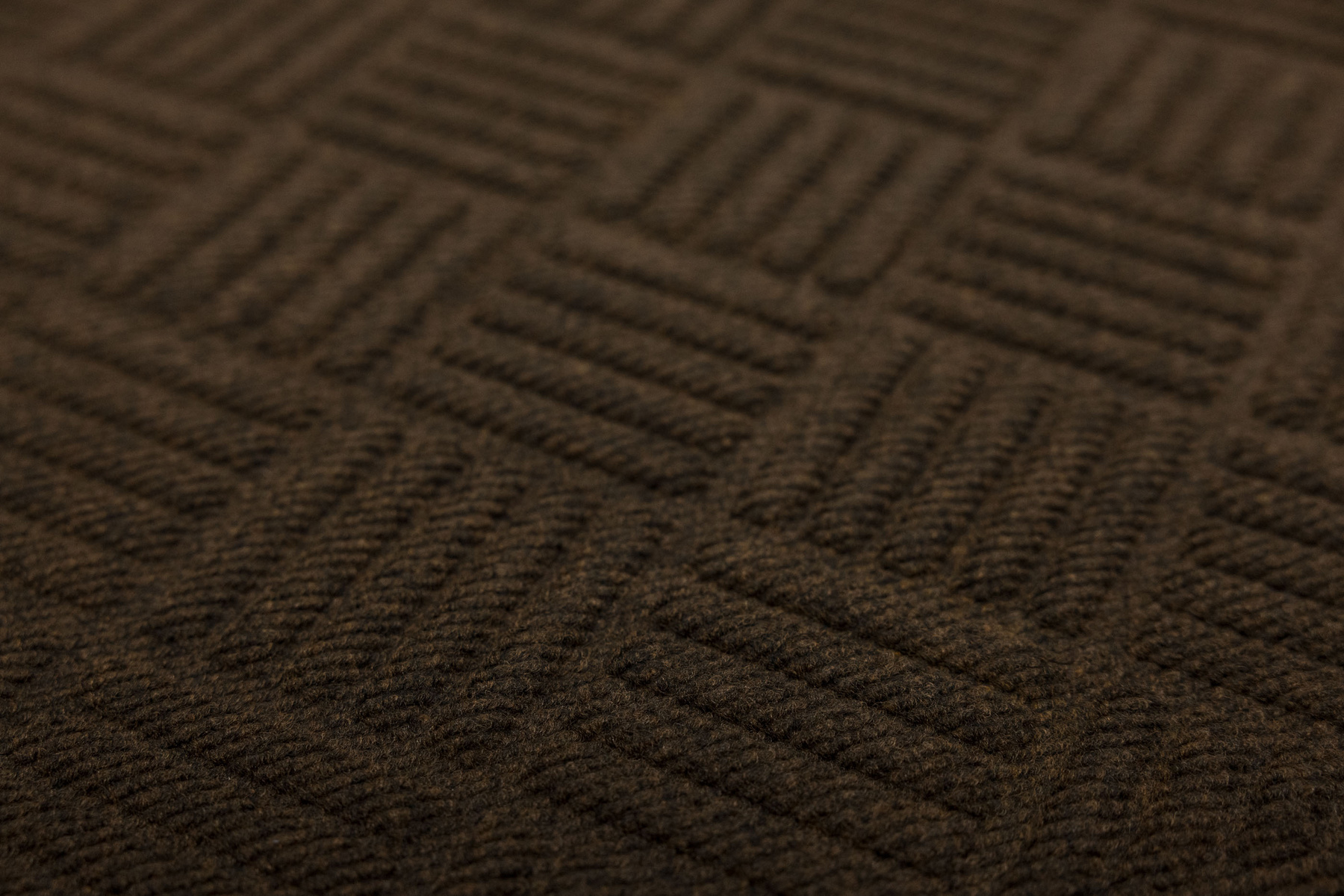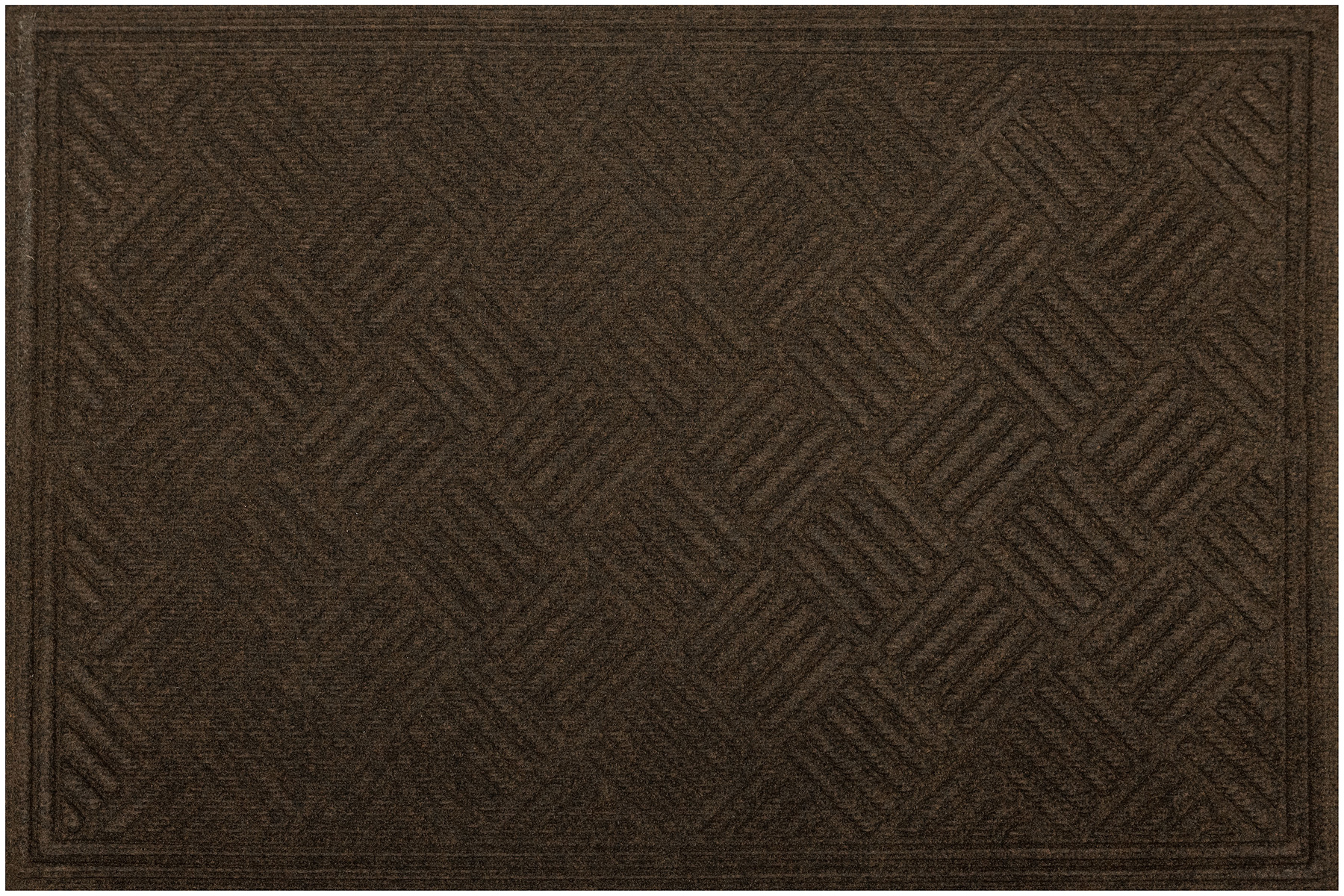 • Antypoślizgowa wycieraczka Kiri Contours Brąz z głęboko profilowanym wzorem geometrycznym przypominającym parkietaż, w odcieniu brązu.