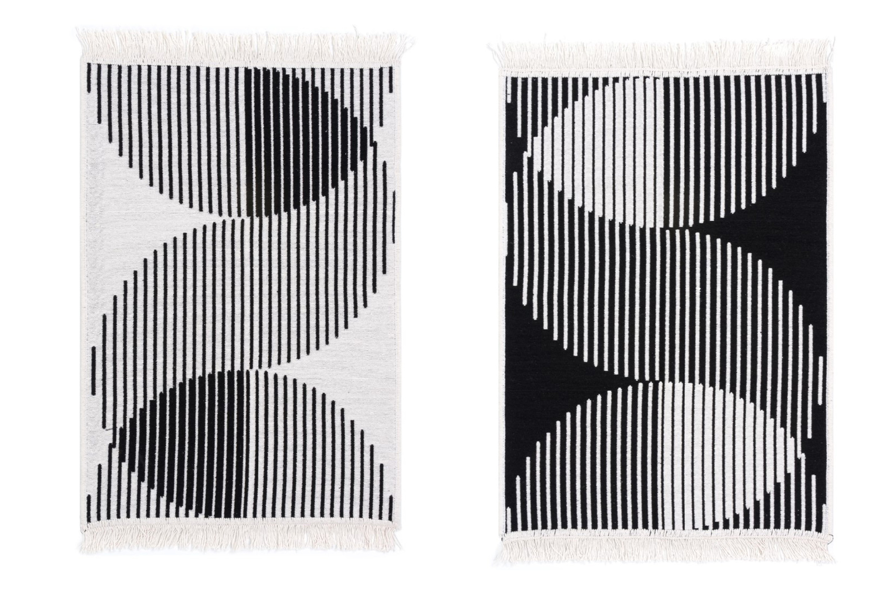 Dwustronny Dywanik Chodniczek Orient Wzór 1 Czarny Krem Półkola Paski