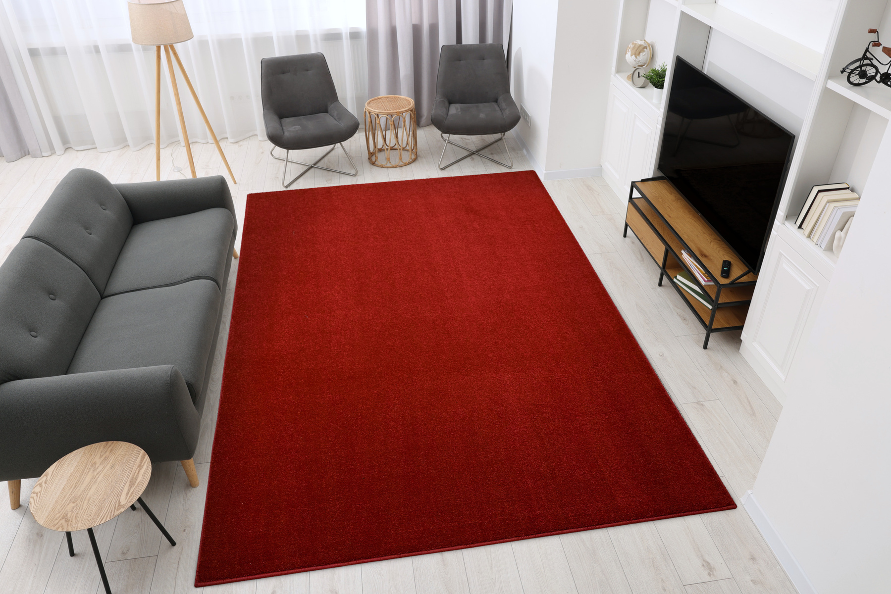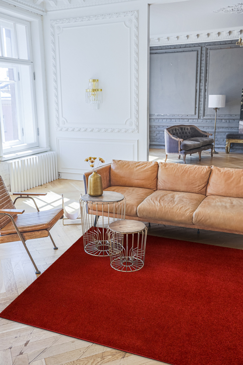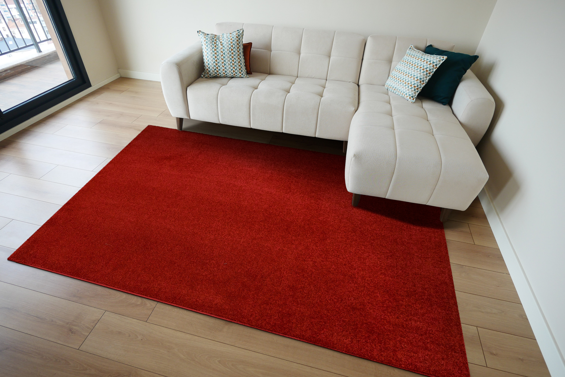 - Miękki i przyjemny w dotyku dywan Ultimate-Twist z runem w odcieniu czerwieni i spodem wykończonym jutą.