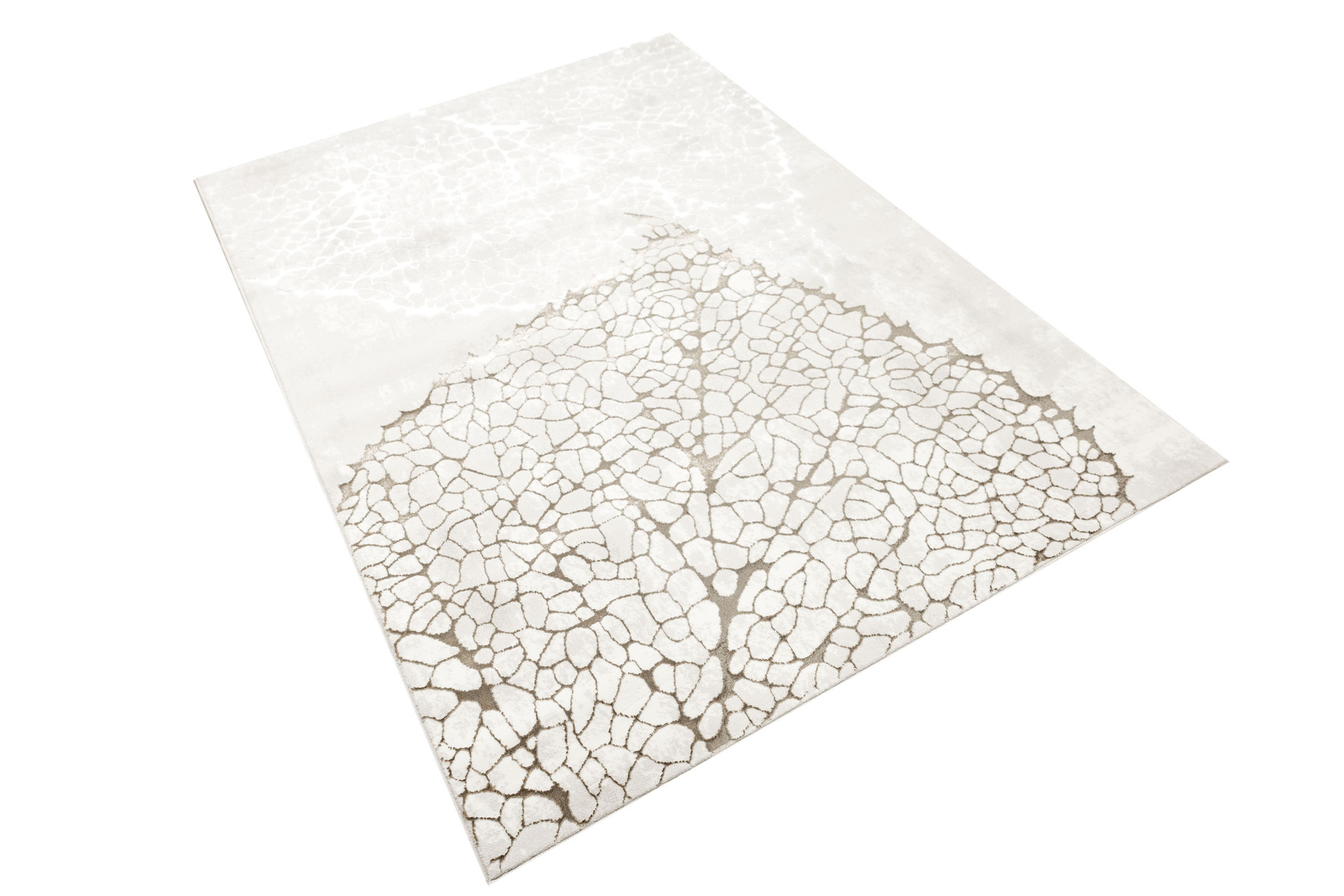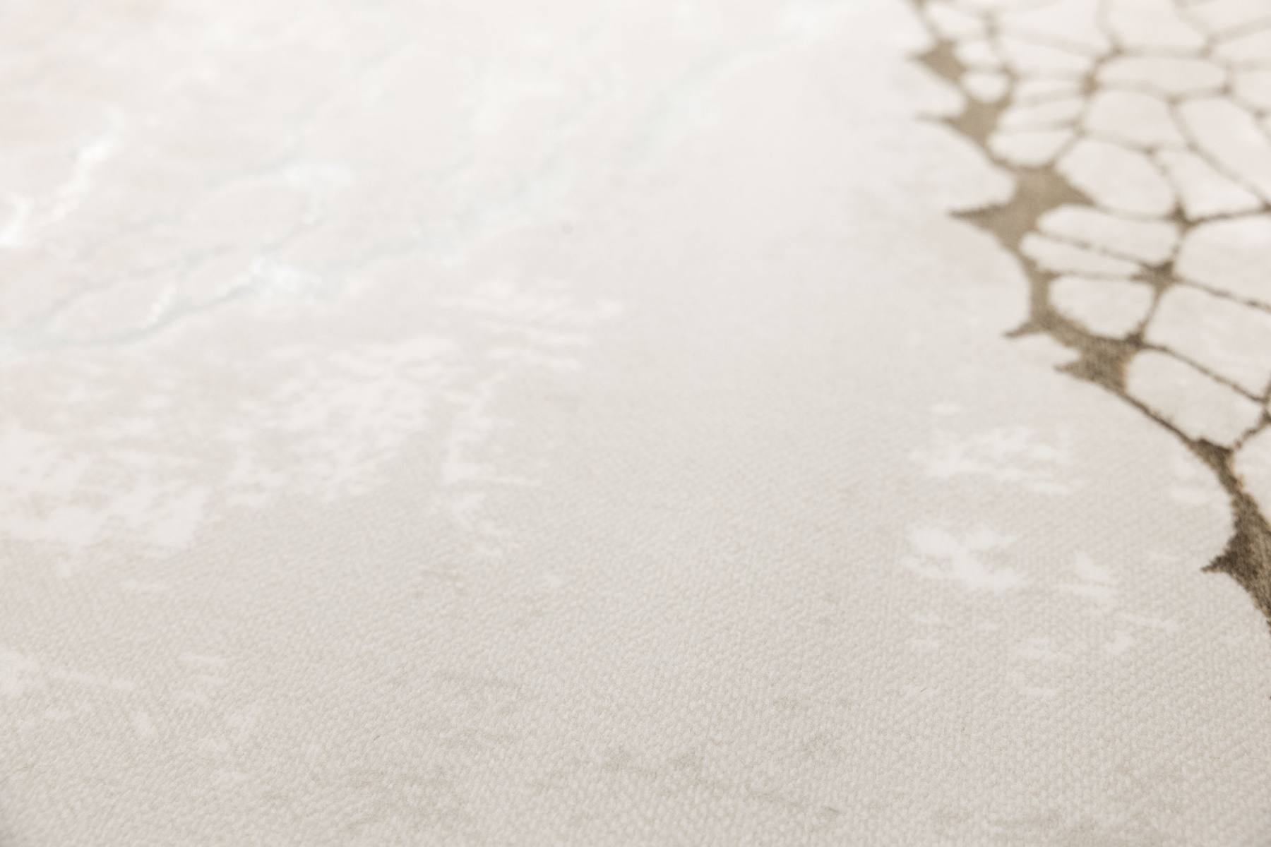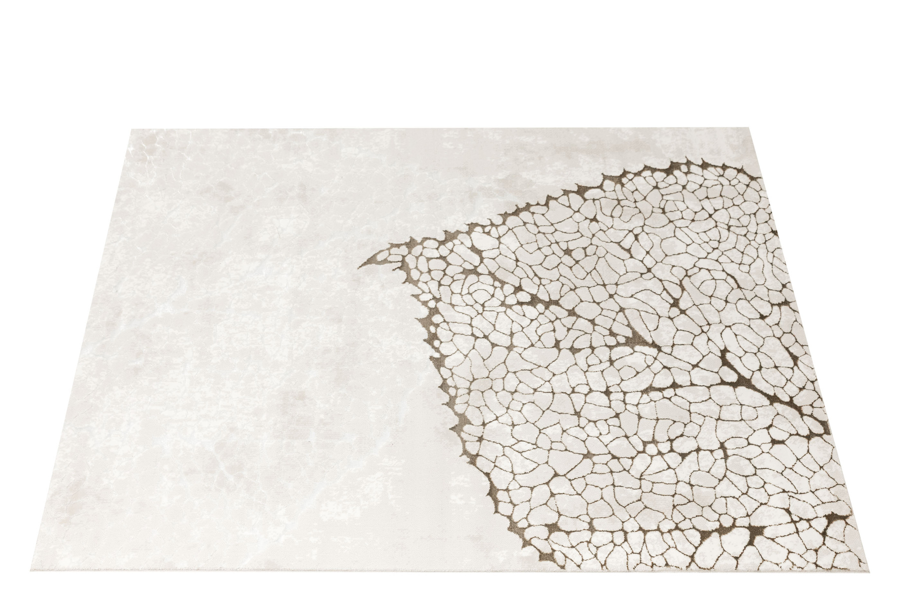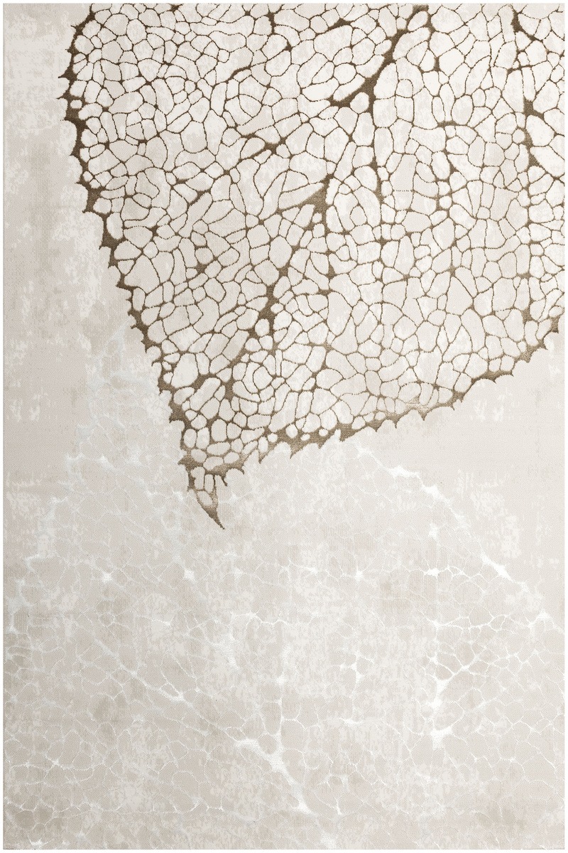 • Miękki dywan Factor o gęstym, lśniącym dwupoziomowym runie ozdobionym naturalnym wzorem z motywem liści w odcieniach kremu beżu, brązu z elementami w srebrzystej szarości.