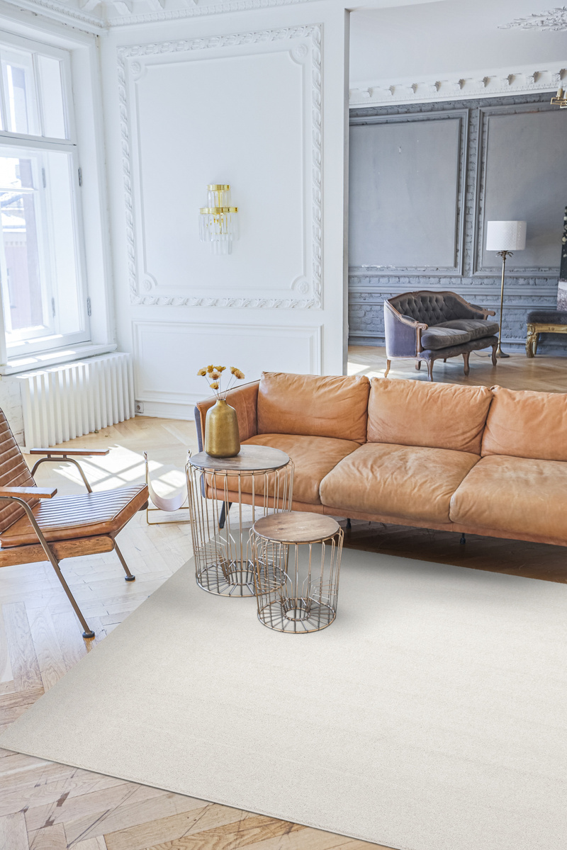 - Miękki i przyjemny w dotyku dywan z wykładziny Destiny miękkim, poliestrowym runem w odcieniu kremu - kości słoniowej i spodem wykończonym filcem.