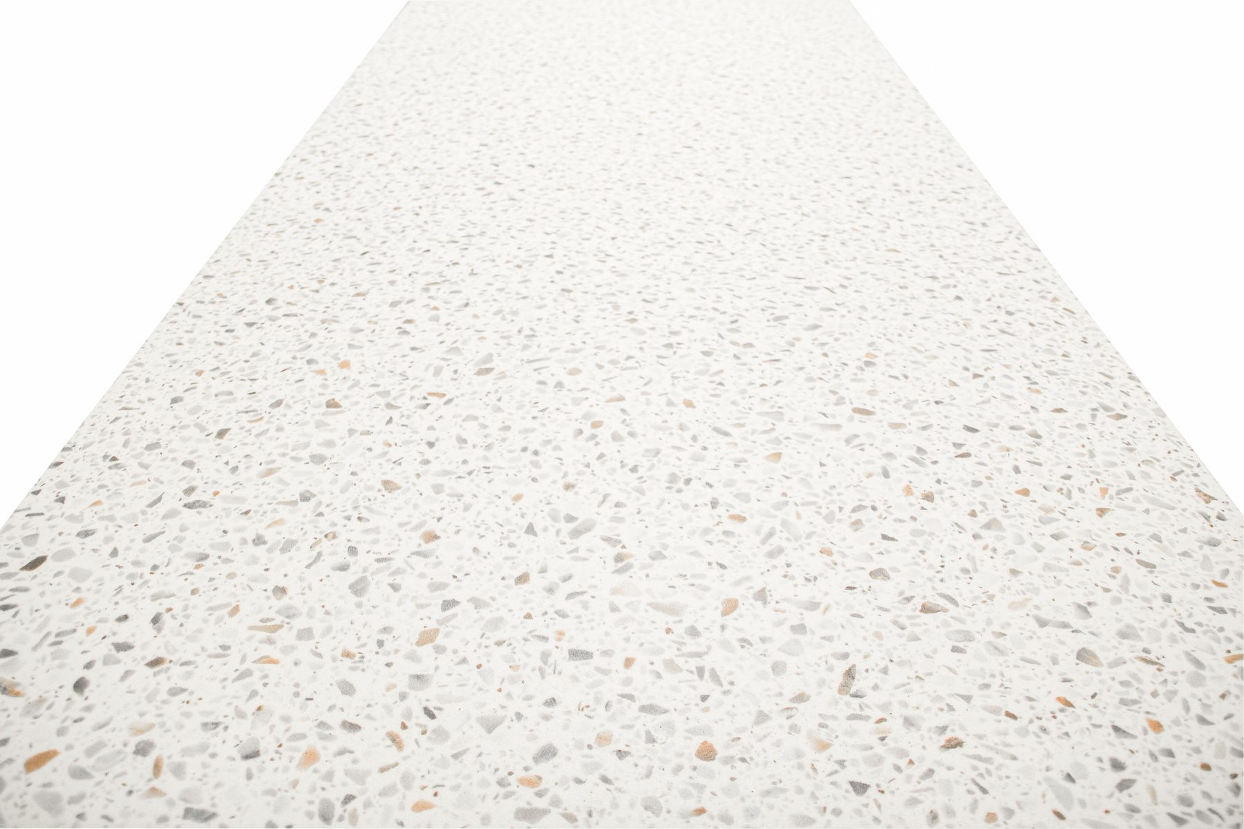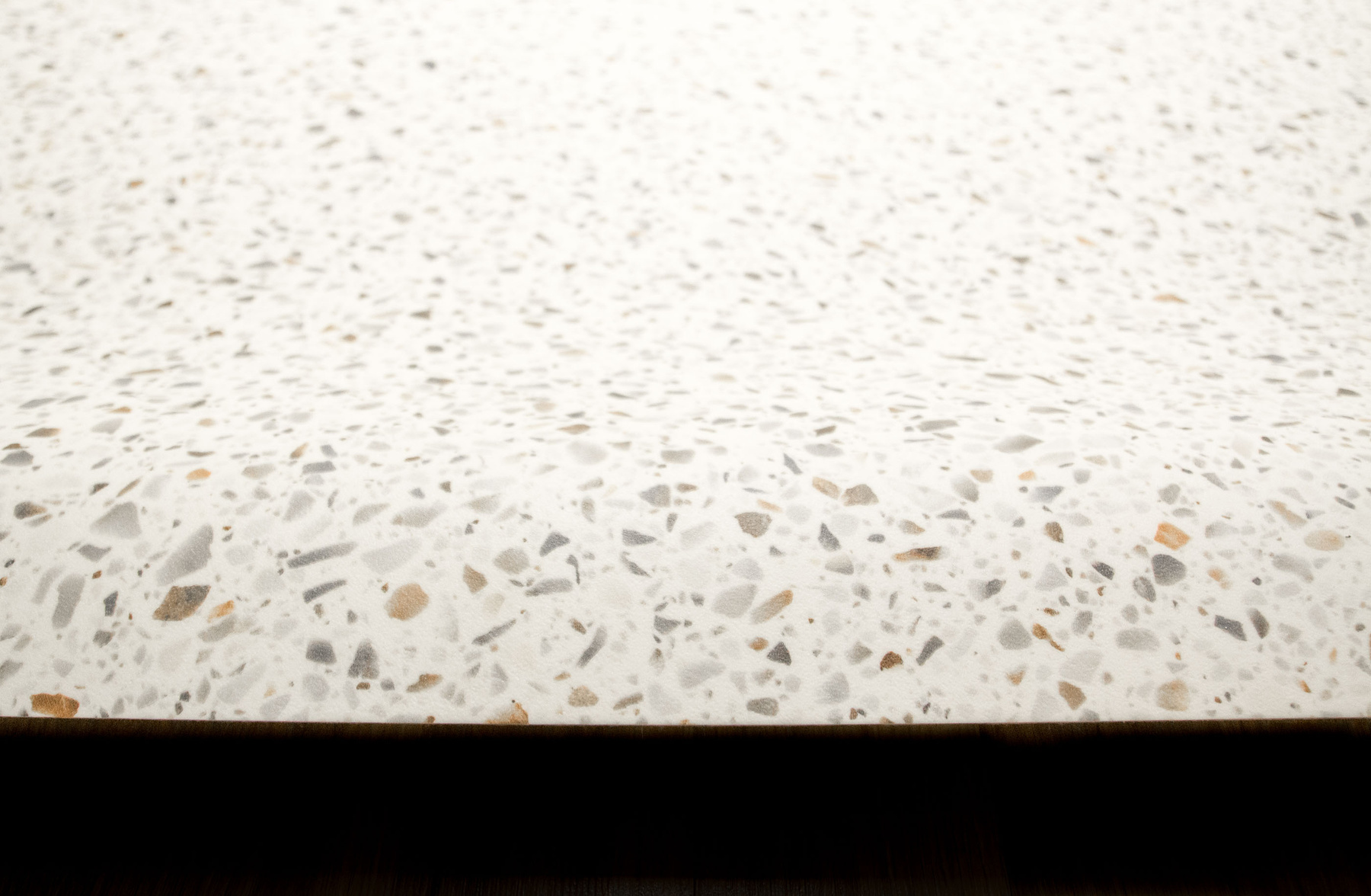 - Gruba elastyczna wykładzina podłogowa PCV Bingo Maira imitująca posadzkę lastryko w kremie z kamyczkami w odcieniach brązu, beżu i szarości.