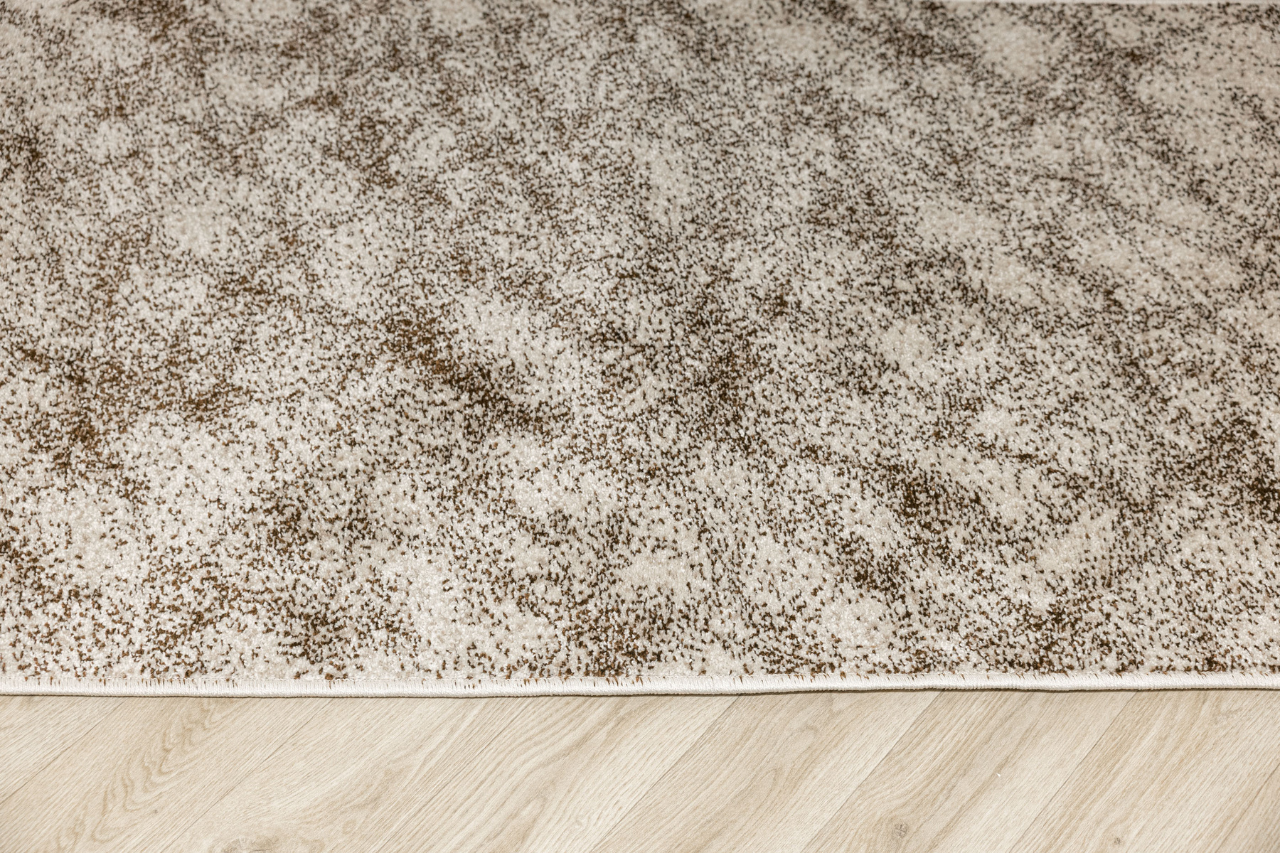 - Chodnik dywanowy Cappuccino z miękkim runem o wzorze imitującym fakturę marmuru w melanżu odcieni beżu, kremu i brązu, ze spodem wykończonym jutą.