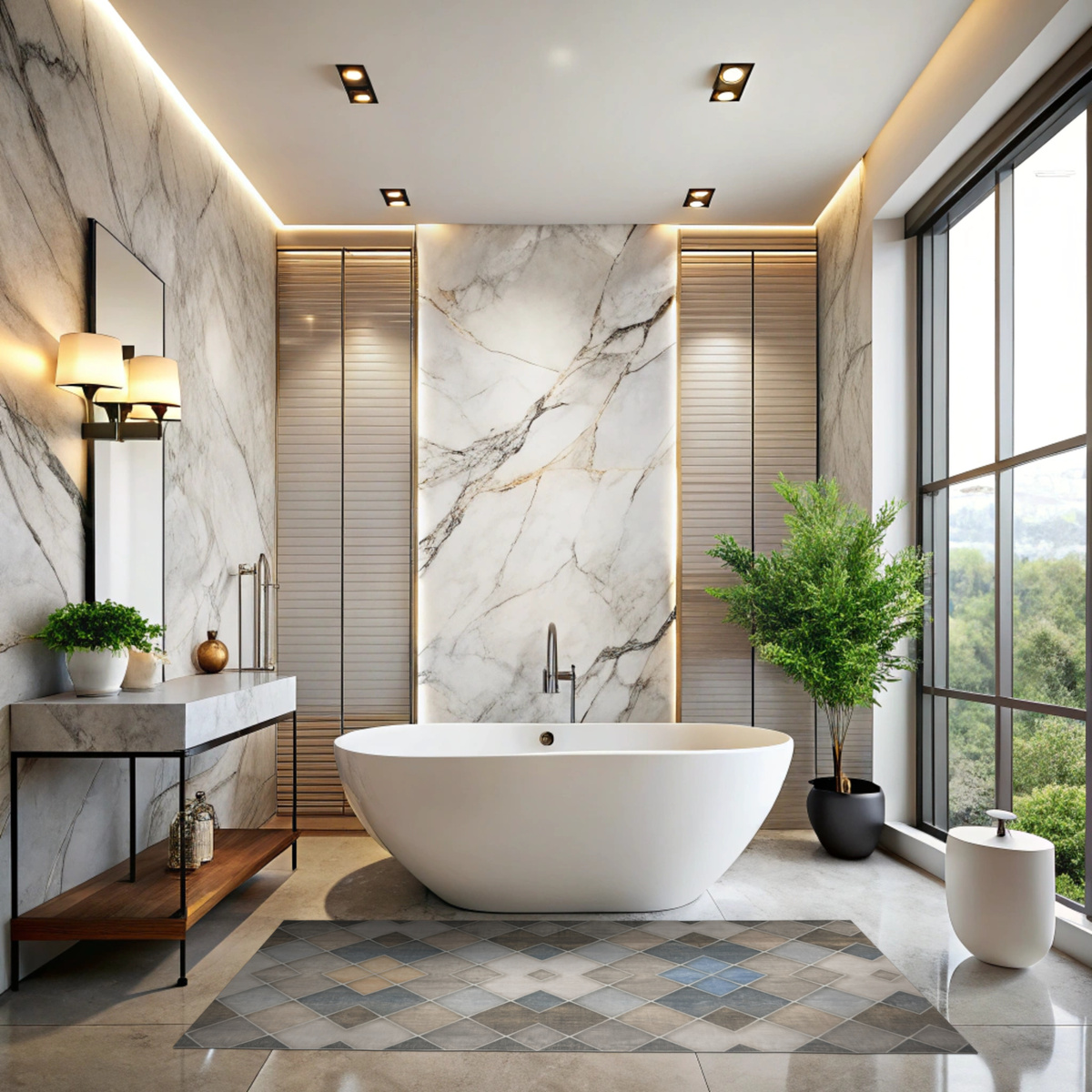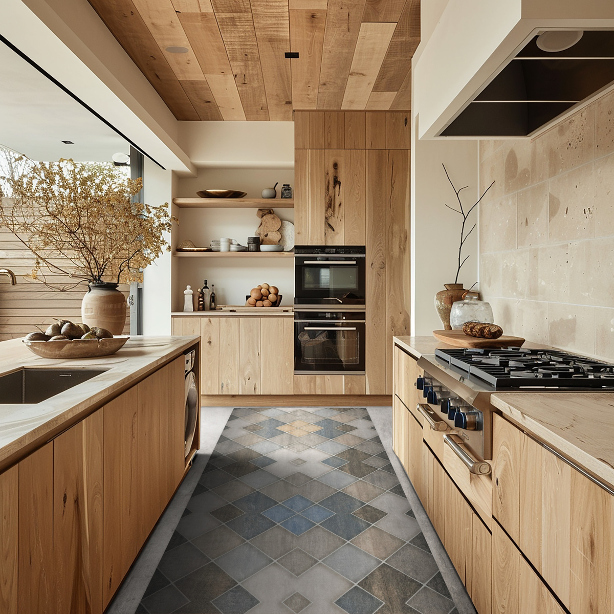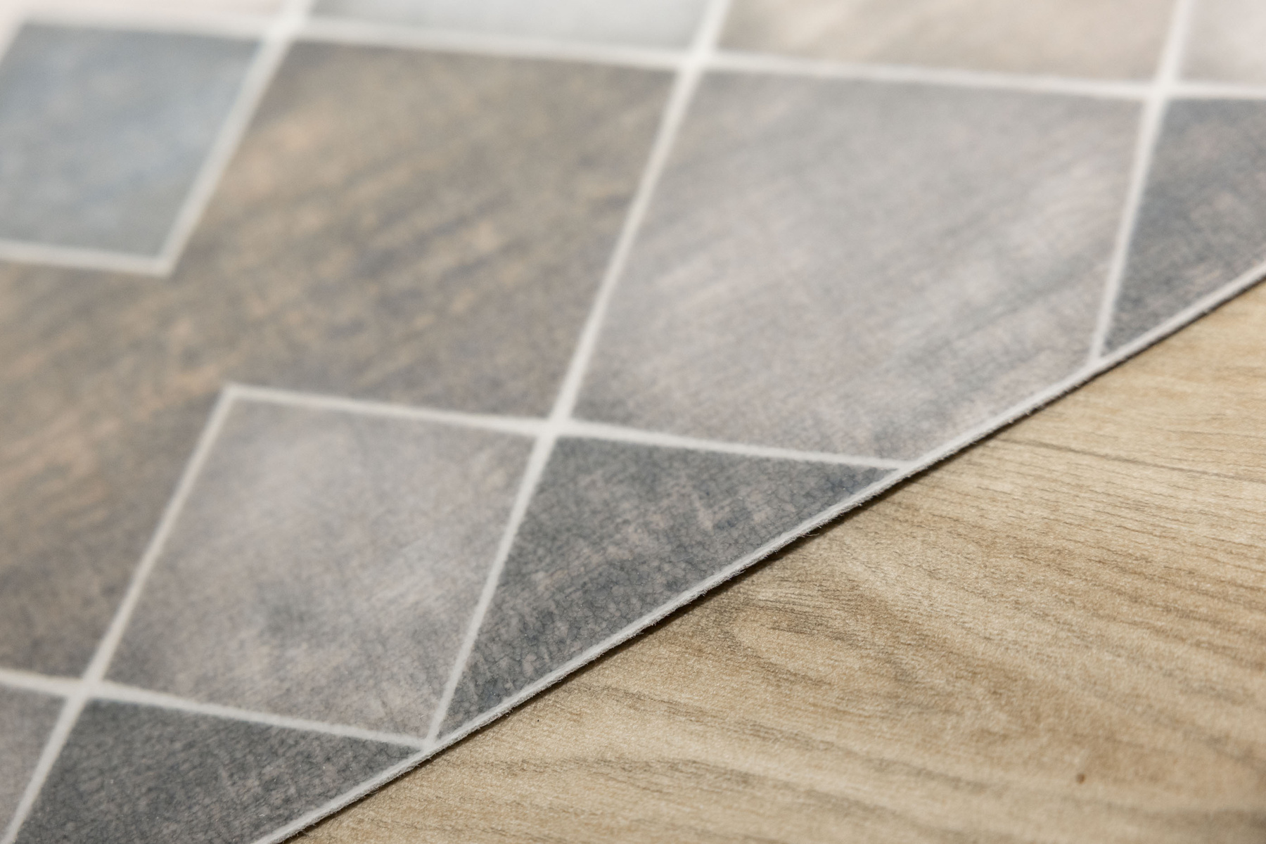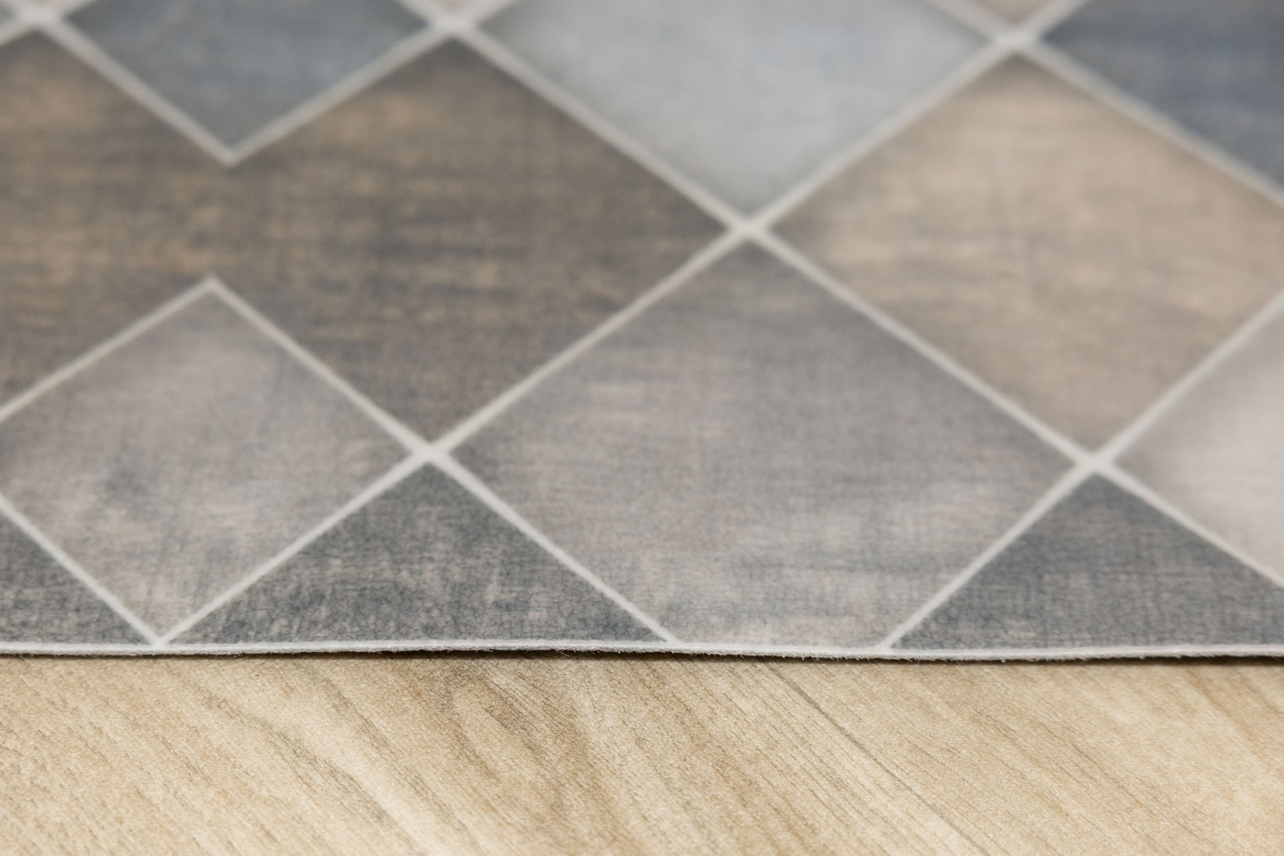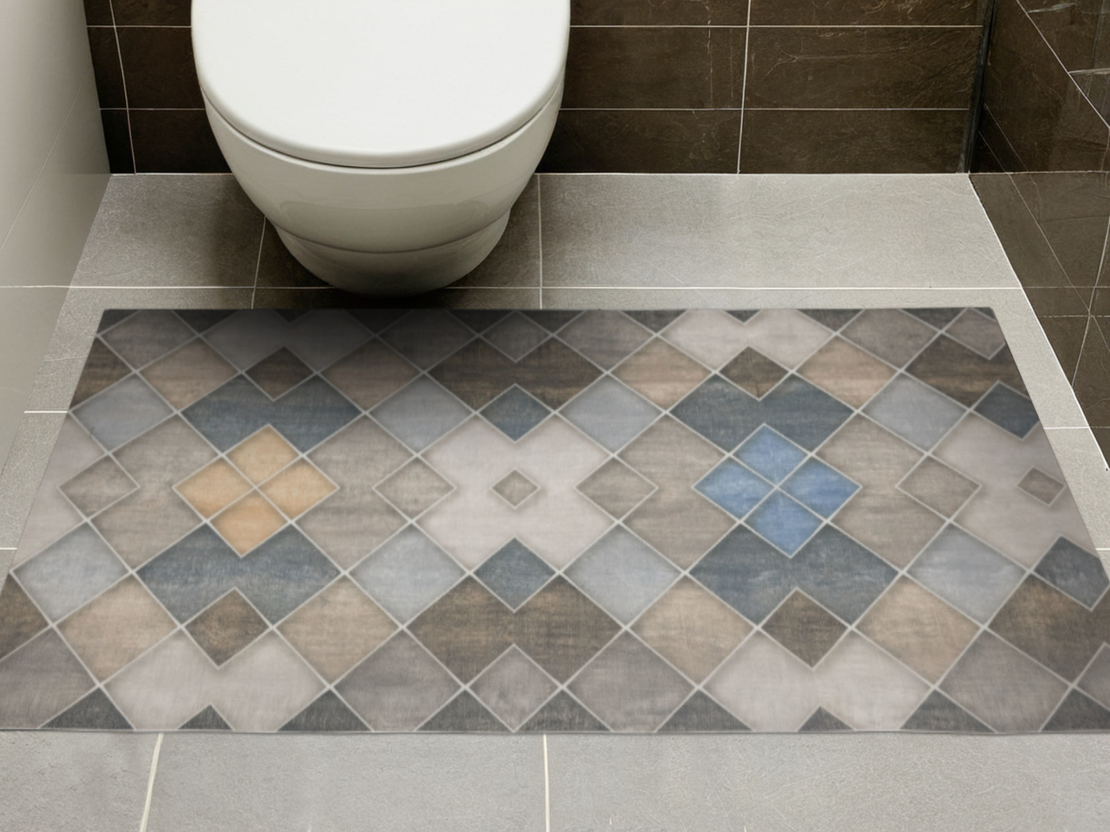 - Dywanik - mata antypoślizgowa Magic 2 zlekko cieniowanym wzorem w romby imitujące płytki w odcieniach szarości, grafitu, beżu, brązu i kremu.