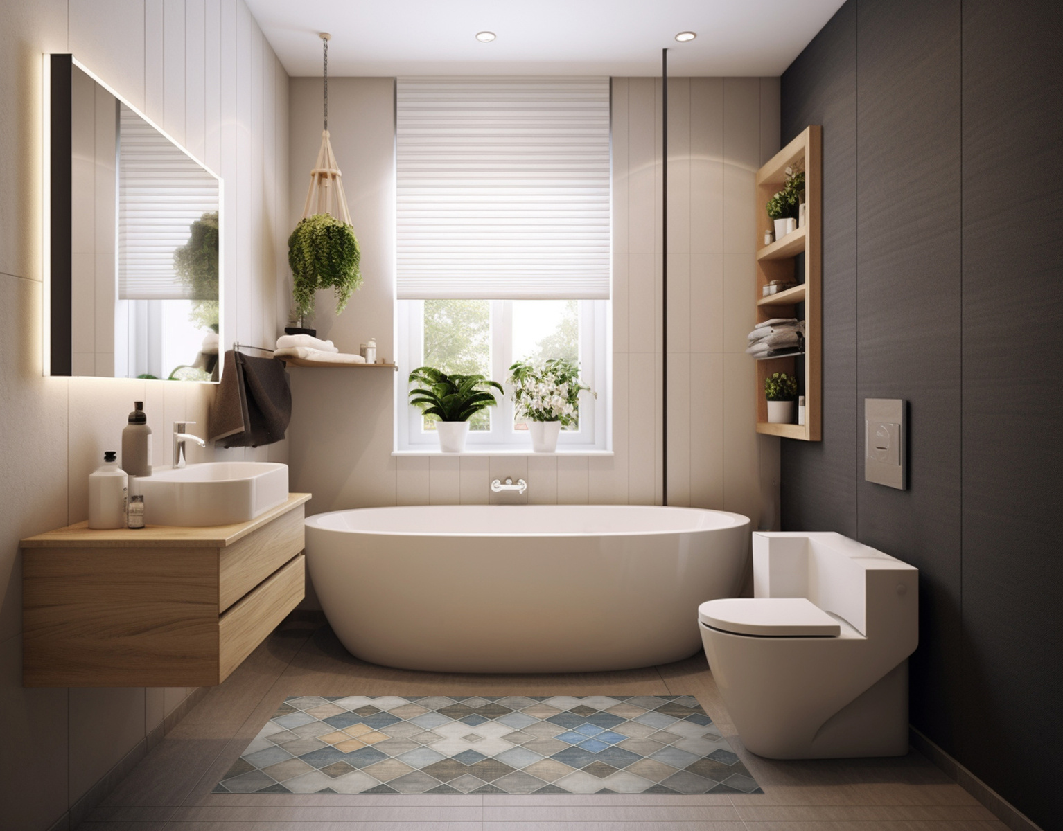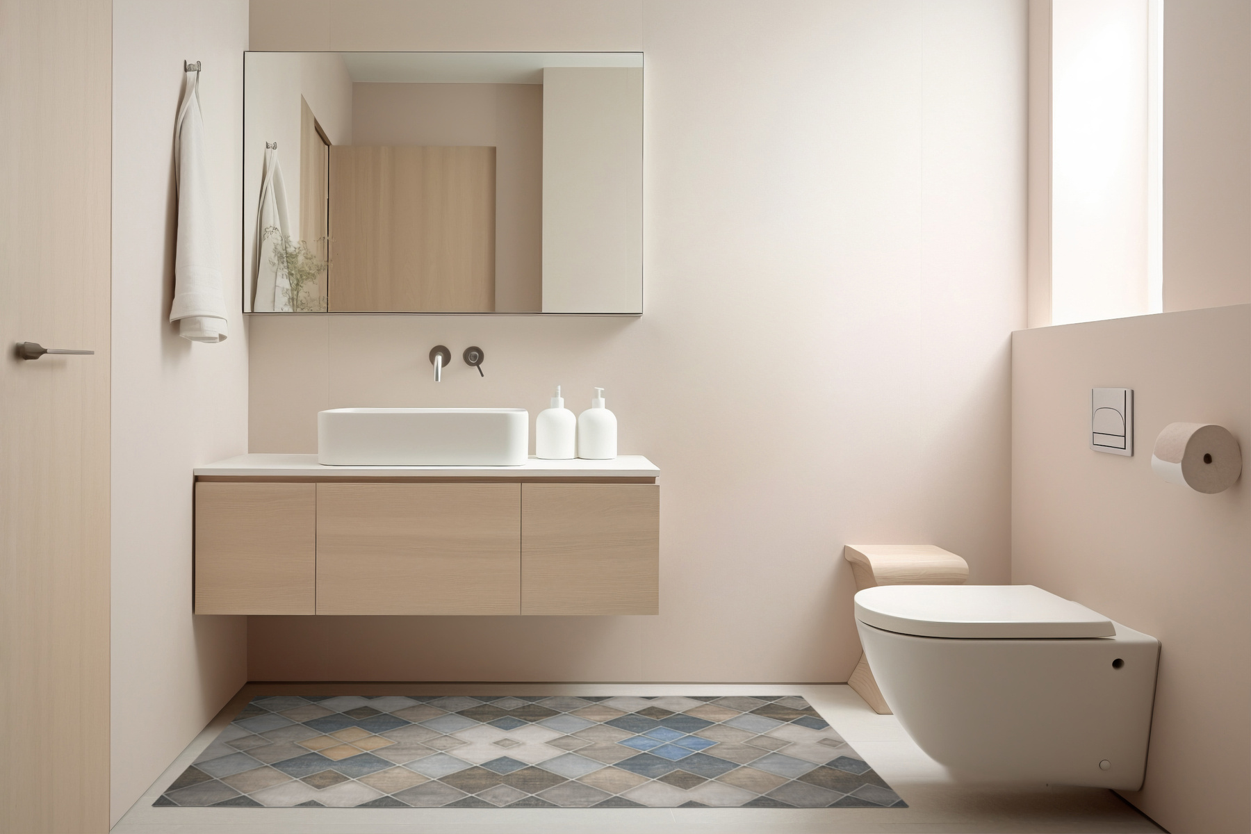Antypoślizgowy Dywanik Łazienkowy Kuchenny Mata Magic M2 Szary Beż Romby