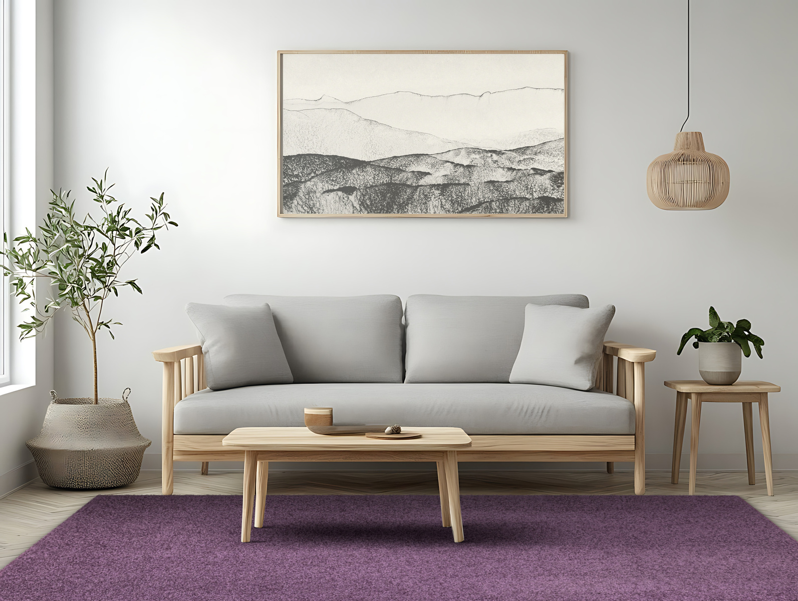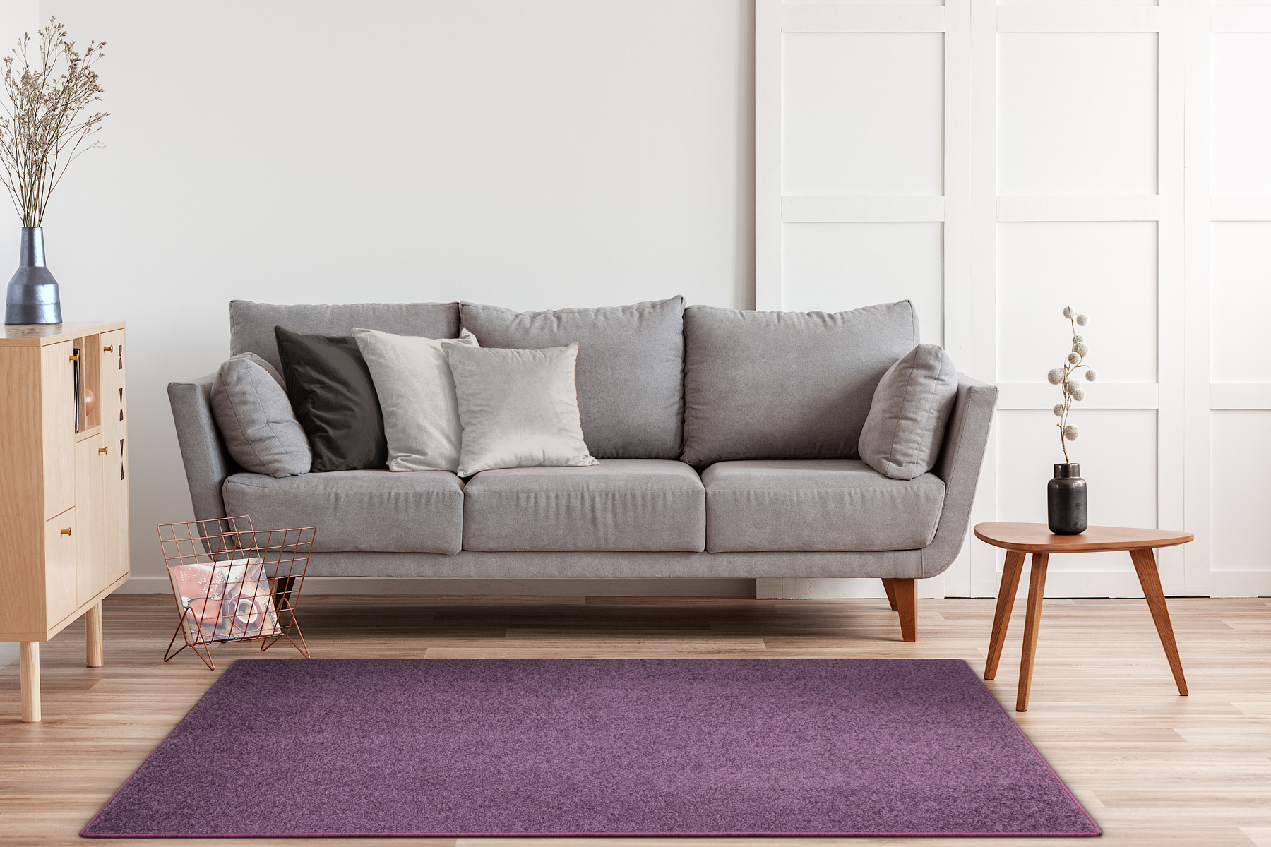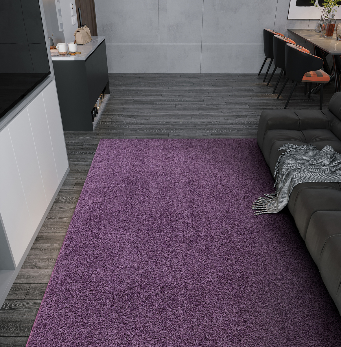- Wykładzina Sphinx typu SHAGGY z miękkim i puszystym runem w odcieniu fioletu, ze spodem wykończonym filcem.