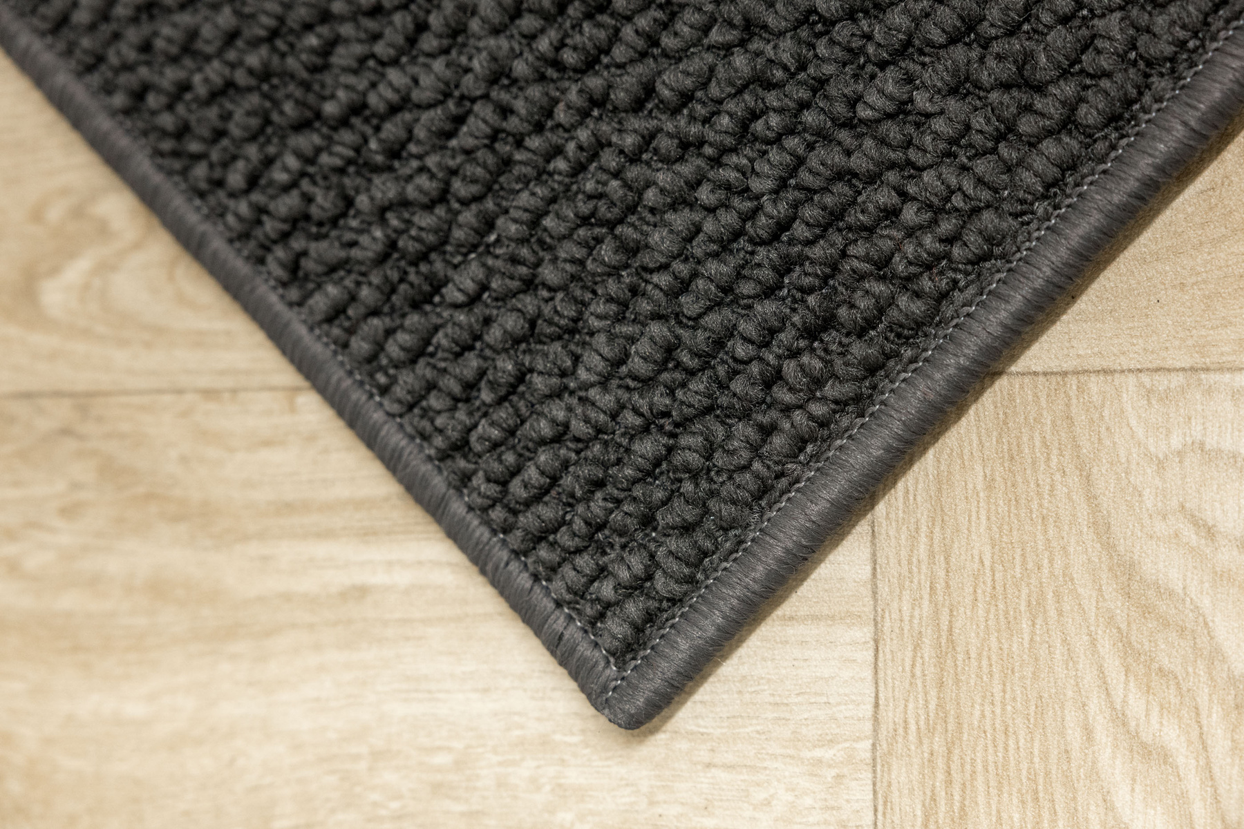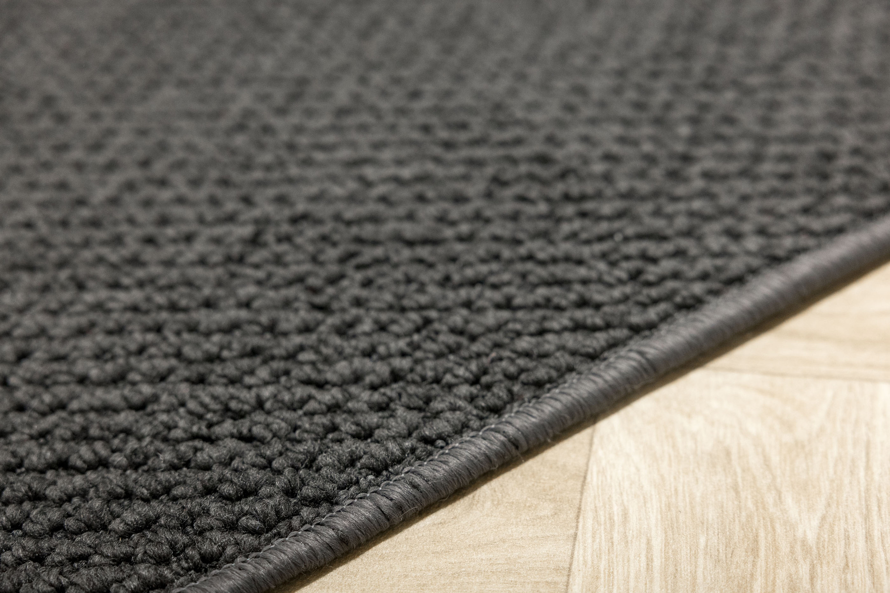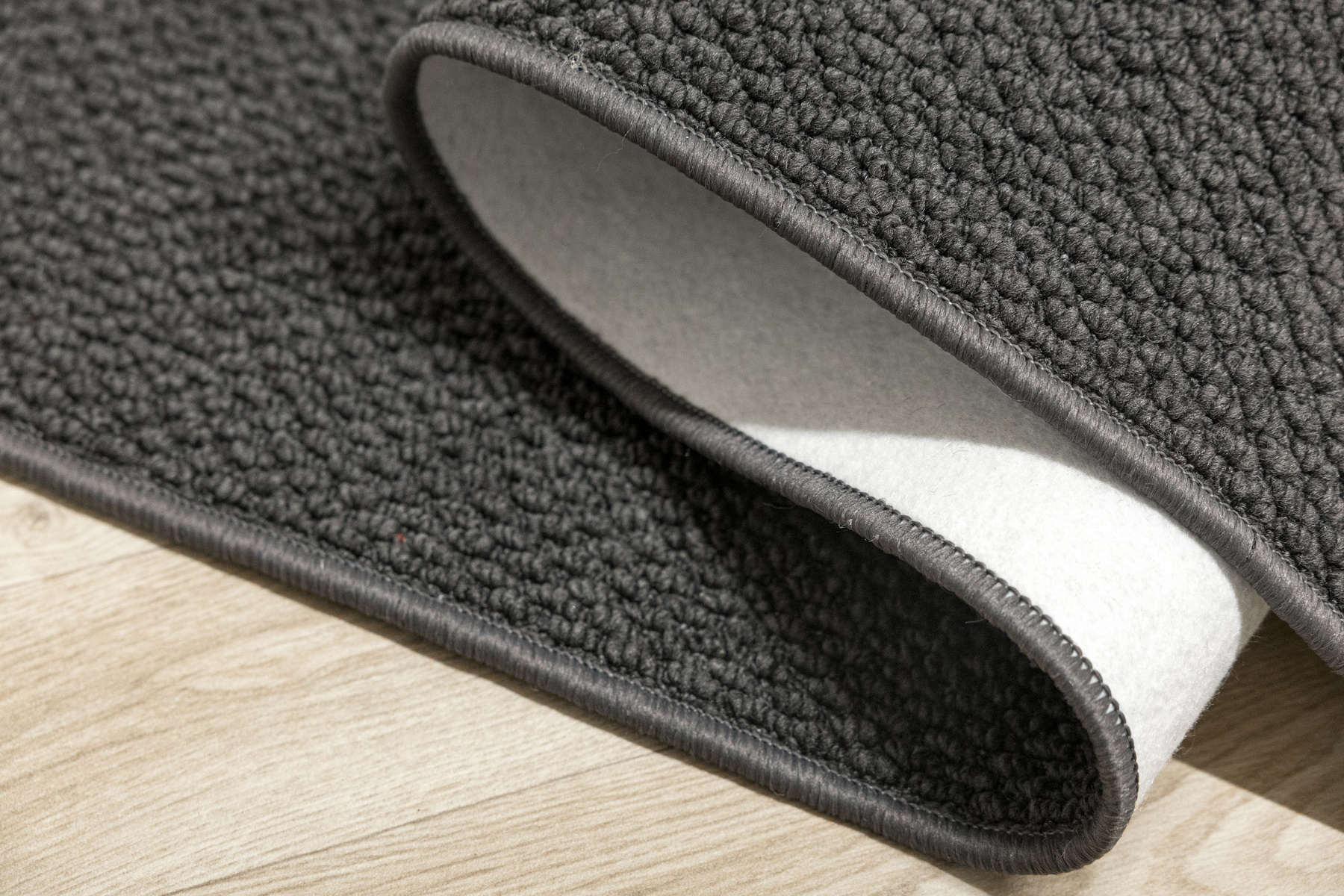 - Trwała i praktyczna wykładzina pętelkowa New Topaz o grubym splocie w odcieniu antracytowej szarości i spodem wykończonym grubym filcem.
