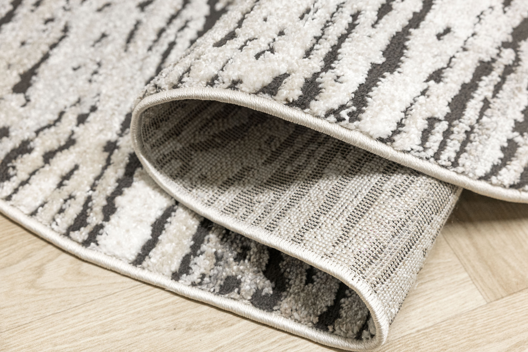 • Miękki i przyjemny w dotyku dywan owalny Matara o dwupoziomowym runie ozdobionym przecieranym wzorem w kremach, beżach, szarościach z akcentami w graficie. Spód dywanu wykończony jutą.