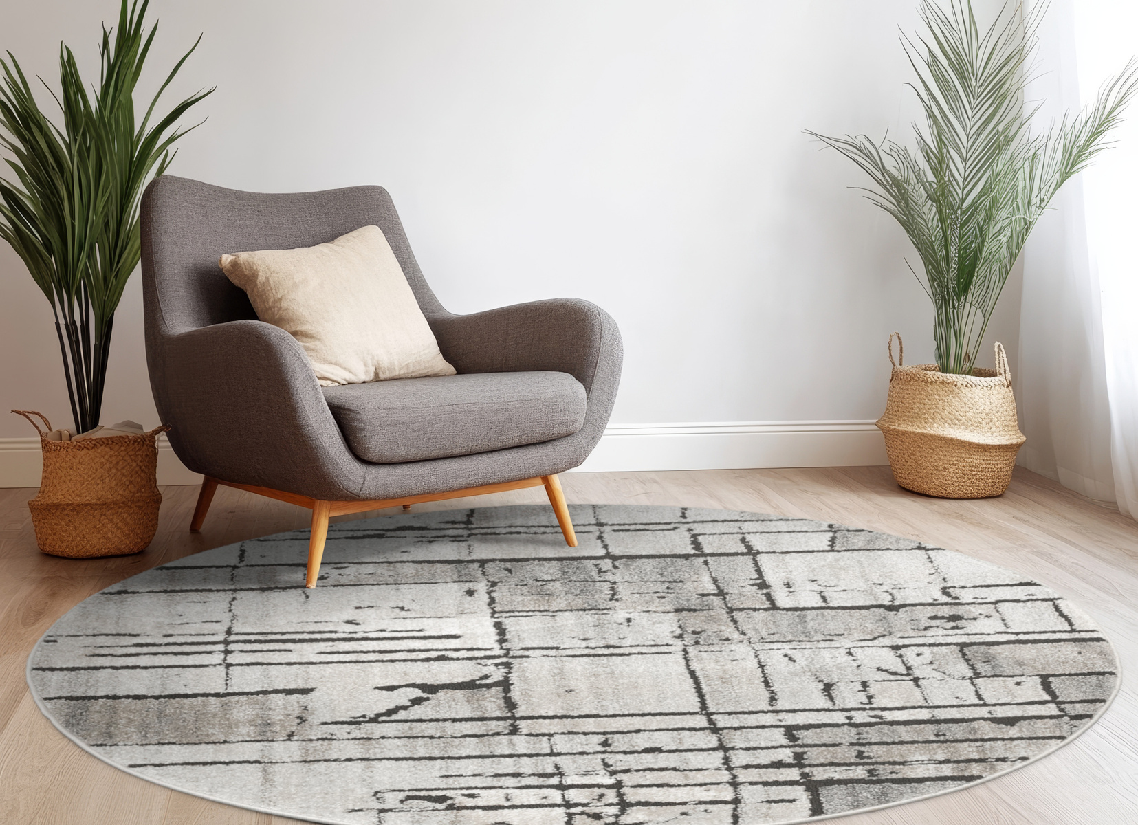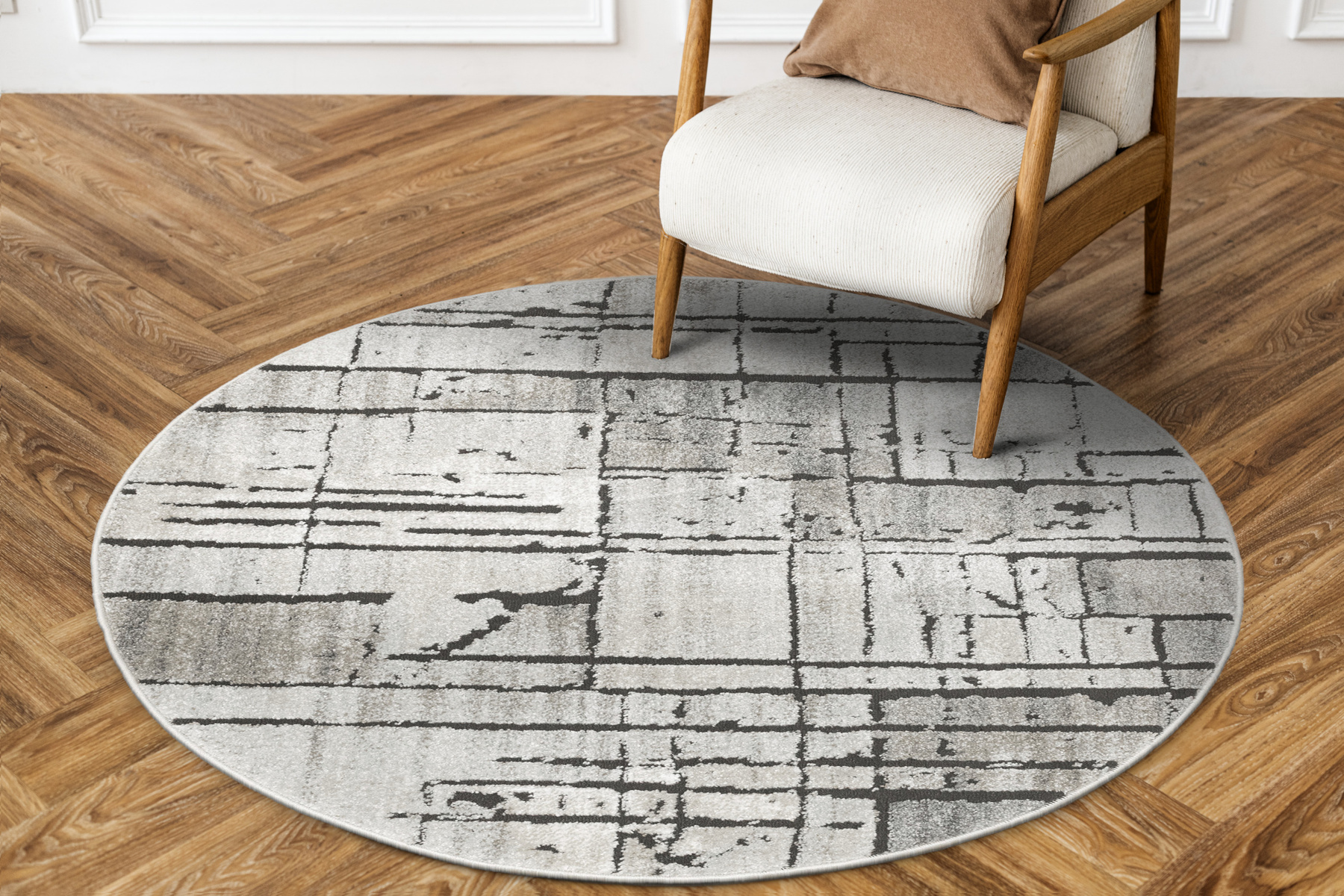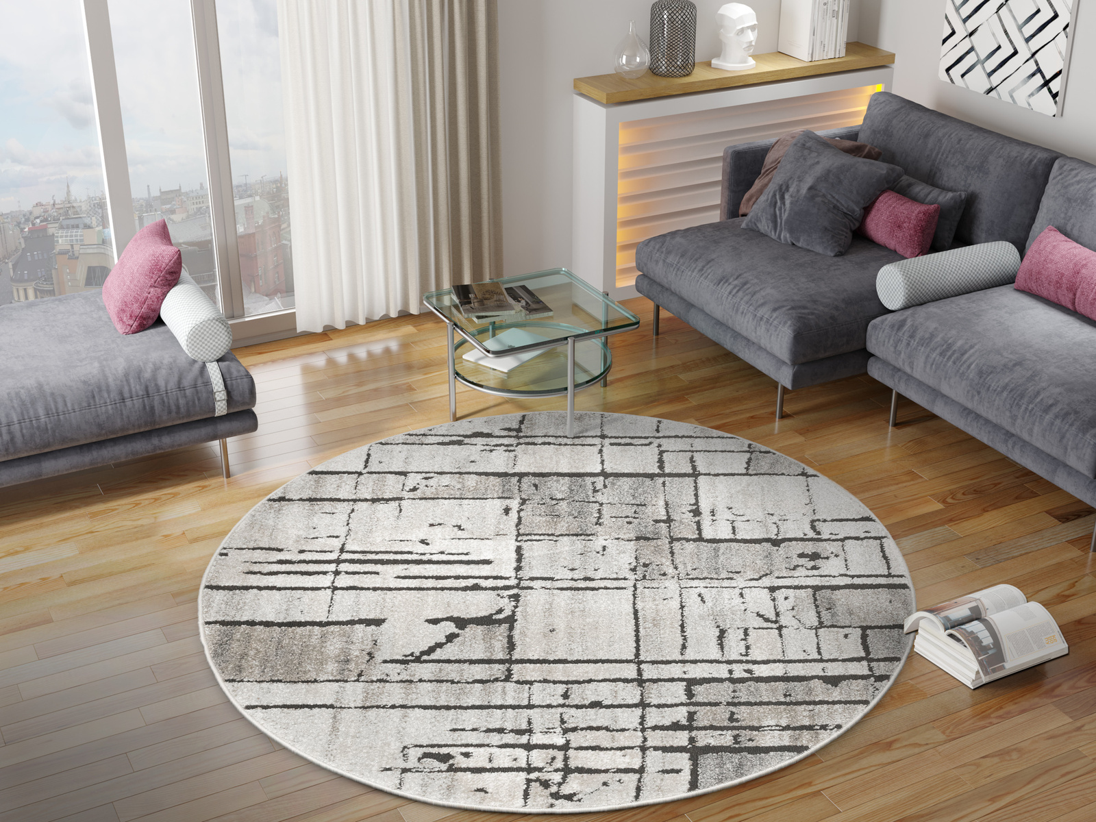 Dywan Okrągły Matara P157A l.grey/sp.antr Beż Szary Kwadraty