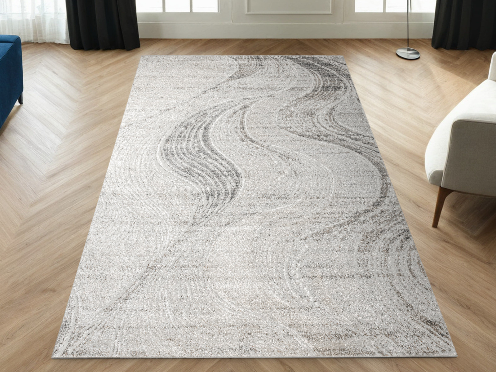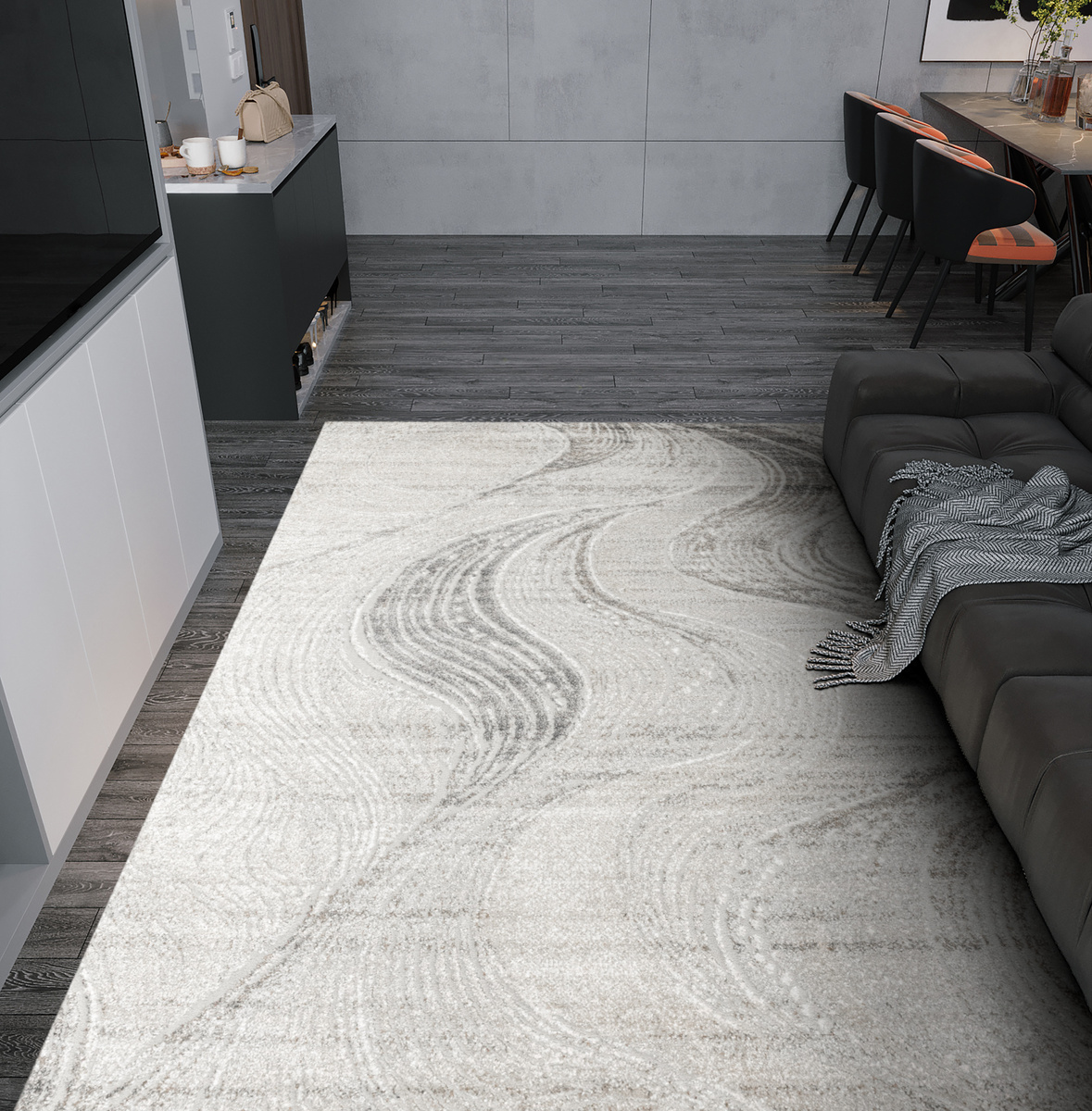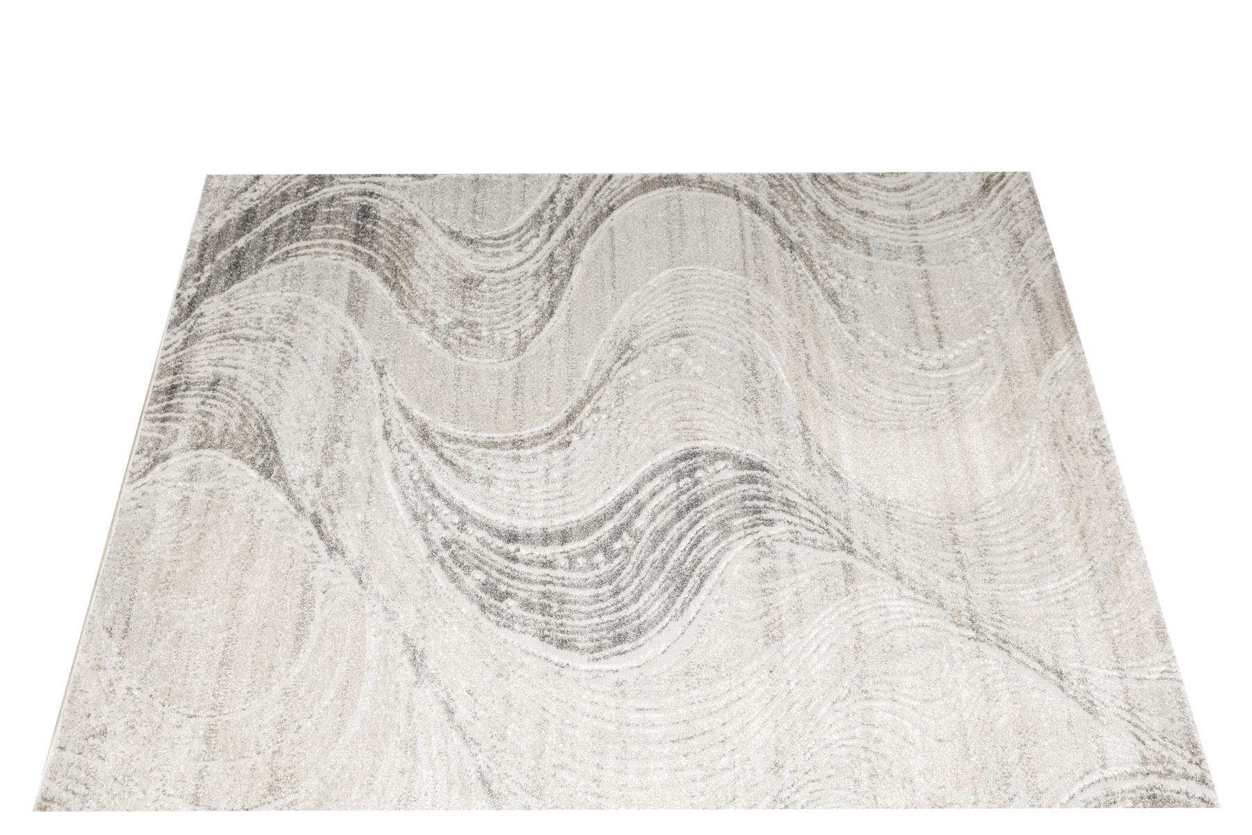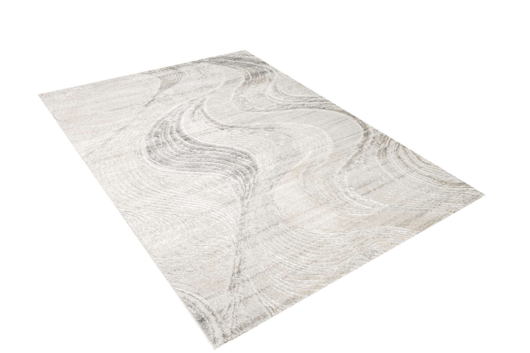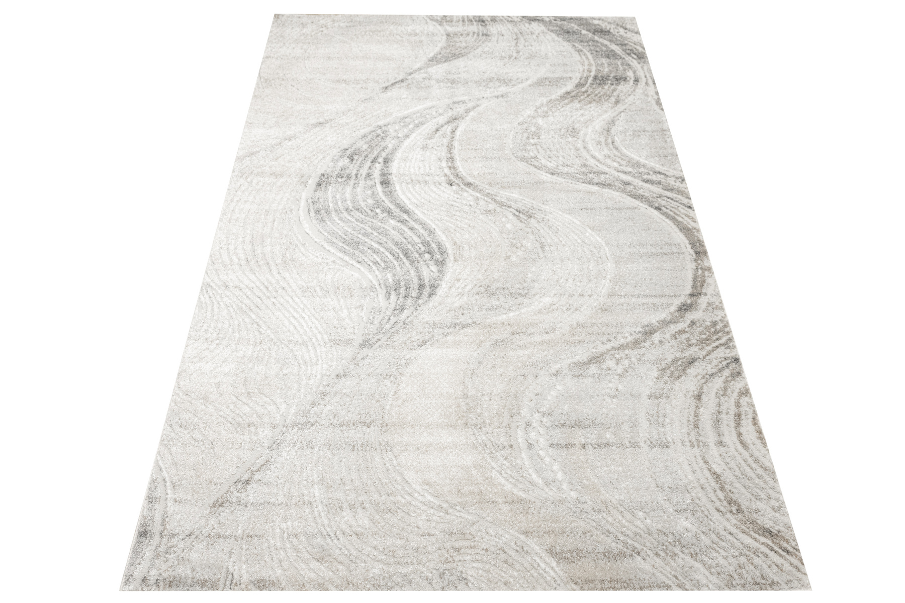 - Miękki i przyjemny w dotyku dywan Matara o dwupoziomowym runie ozdobionym wzorem abstrakcyjnym w półkola w kaszmirowych beżach i kremie. Spód wykończony jutą.