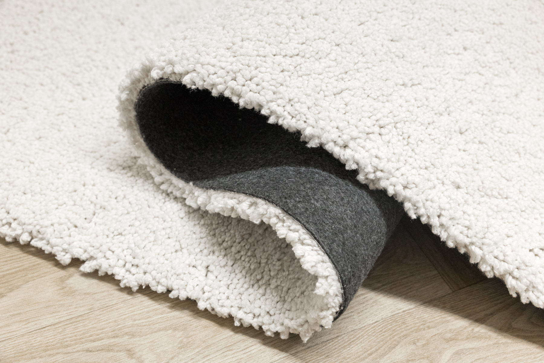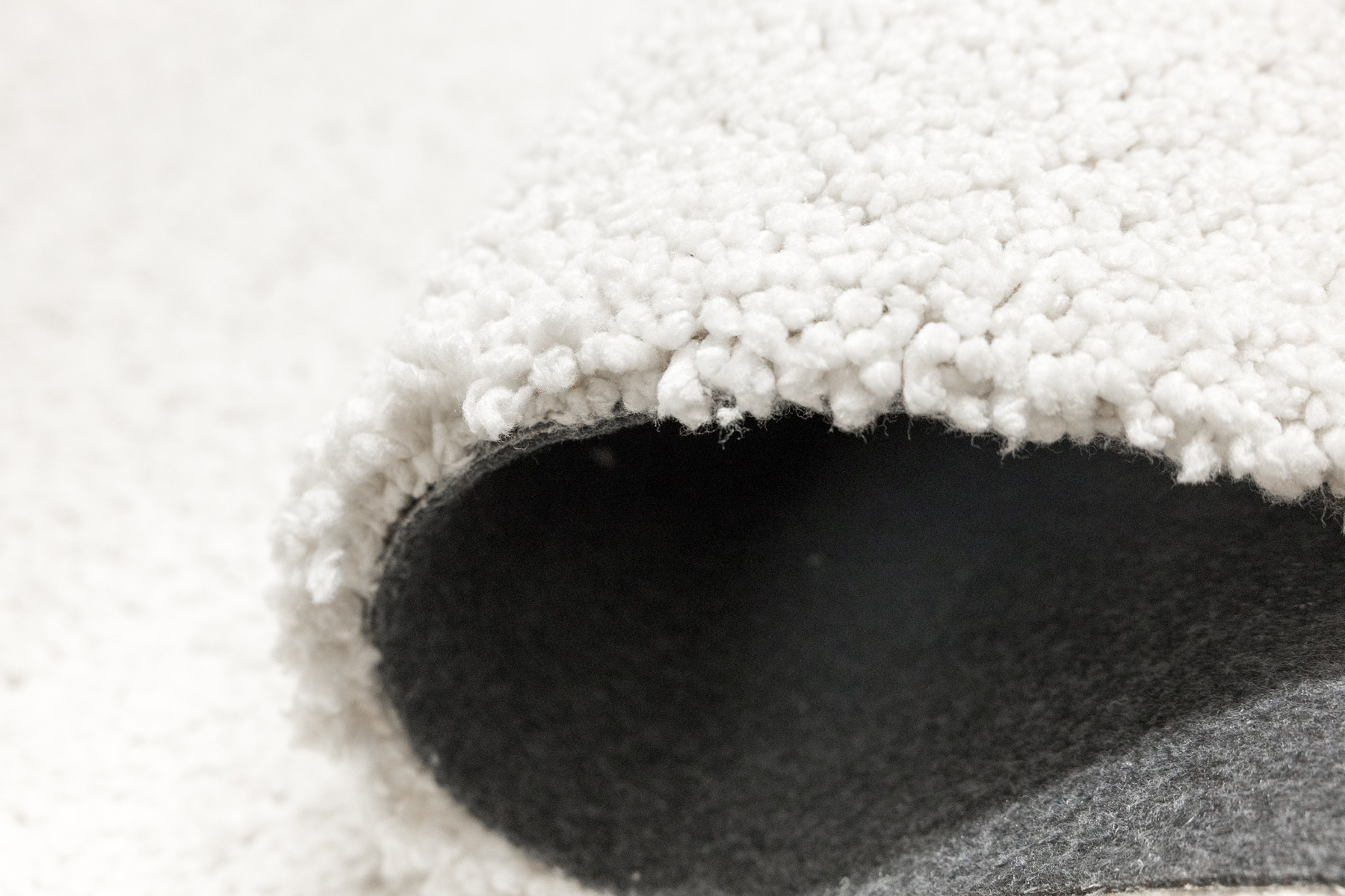 - Miękka, gruba i przyjemna w dotyku wykładzina dywanowa typu shaggy Dreamland z niezwykle bujnym, poliestrowym soft runem w odcieniu kremu i spodem wykończonym czarnym filcem nie wymagającym obszywania.