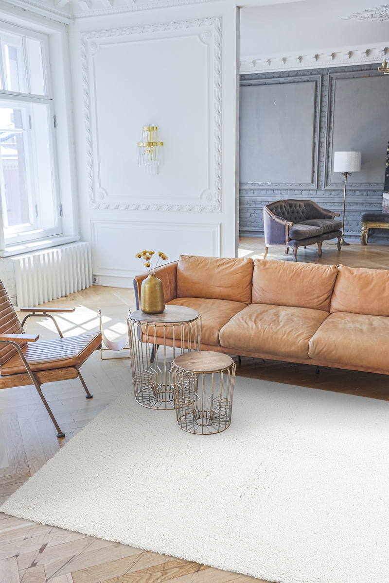 Jest to luksusowy dodatek do aranżacji wnętrz w naturalnej kolorystyce. Runo wykładziny utkane zostało z miękkiej poliestrowej przędzy, spód wykończony czarnym filcem typu Softback, który nie wymaga obszywania. Pomaga to tworzyć czysty, minimalistyczny i ultranowoczesny efekt wizualny.
