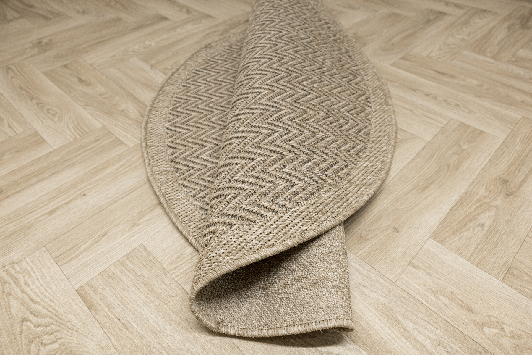 Okrągły Dywan Sznurkowy Patio 5007/170 Nature Beż Brąz Jodełka Zygzaki Outdoor