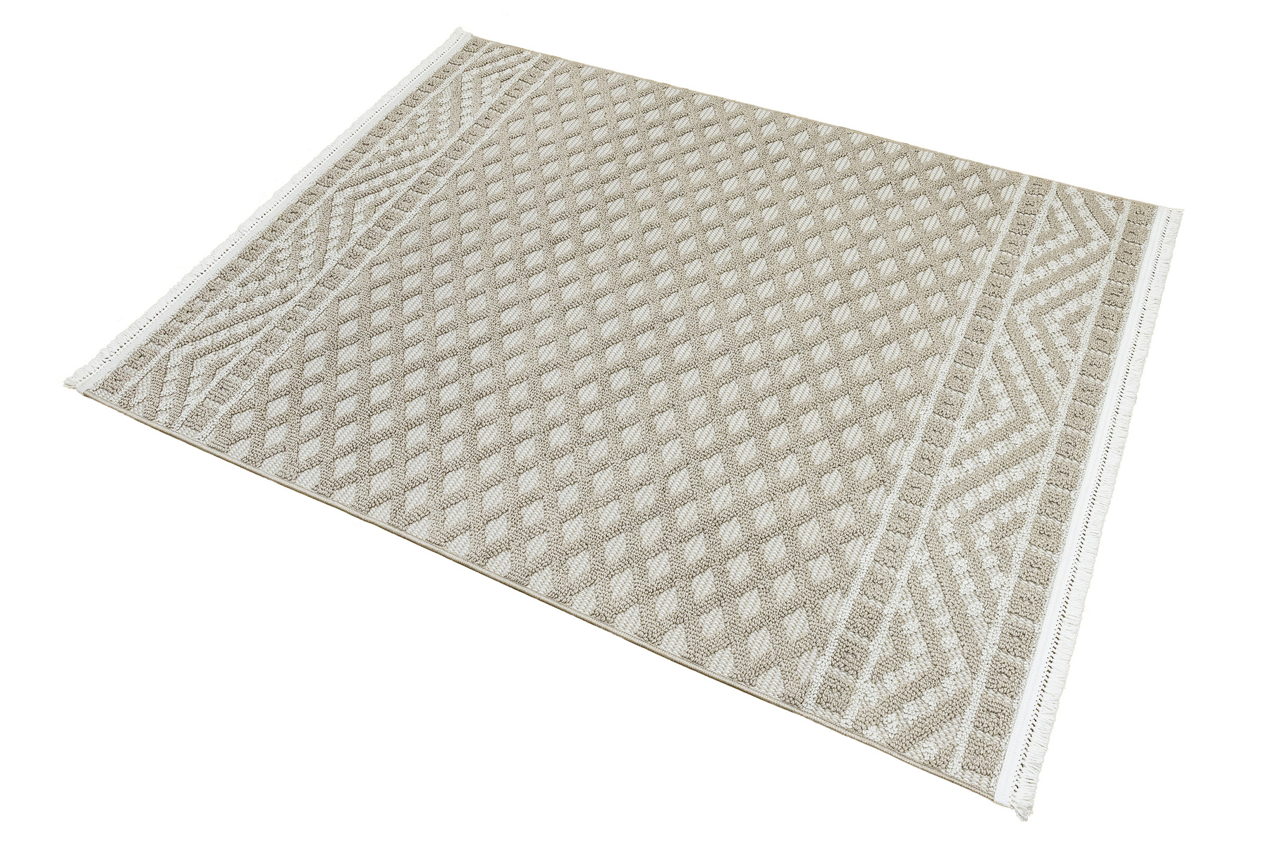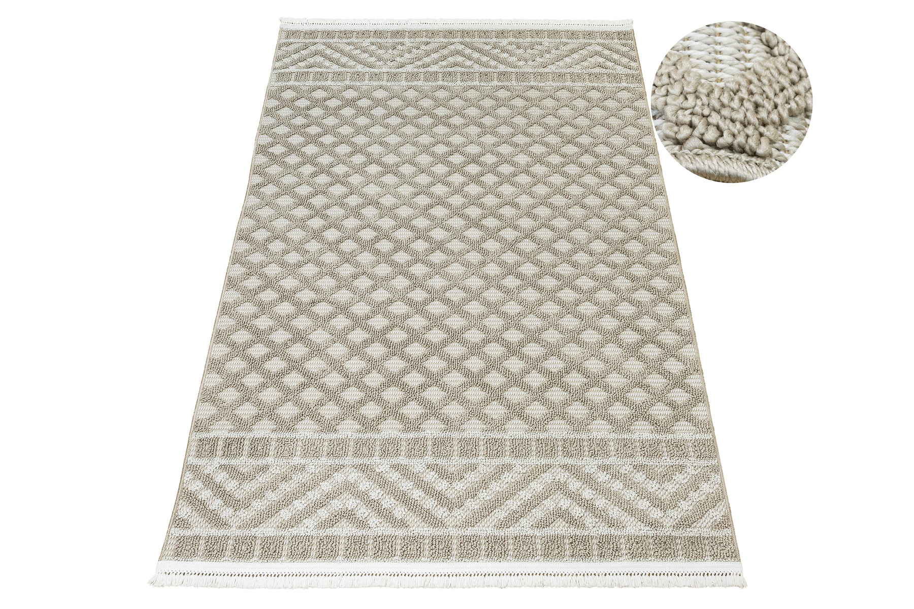Dywan Milano 027 vizon/beige Beż Krem Romby Frędzelki