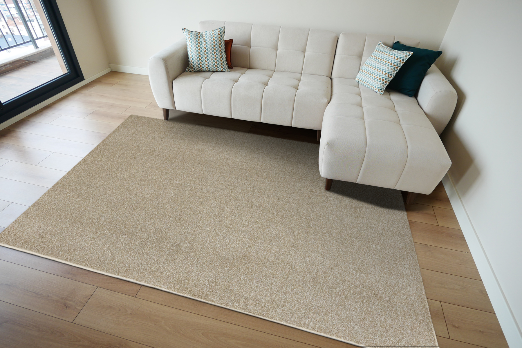 • Wykładzina dywanowa Lyon w melanżu odcieni beżu z miękkim runem ciętym typu saxon i spodem wykończonym filcem.