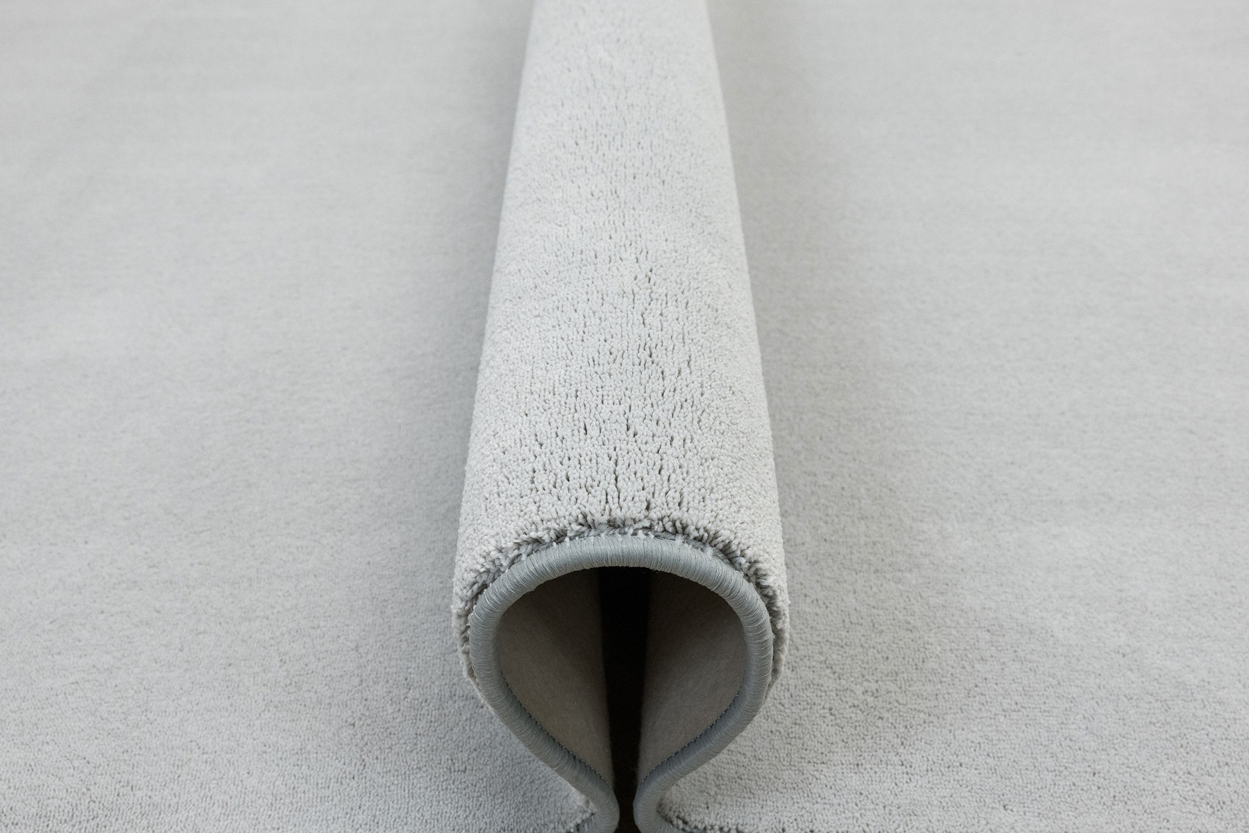 - Dywan wykonany z luksusowej wykładziny Lexus o podwyższonej wytrzymałości, gęstym, grubym runie ciętym typu saxon w odcieniu jasnej szarości i spodem wykończonym filcem.
