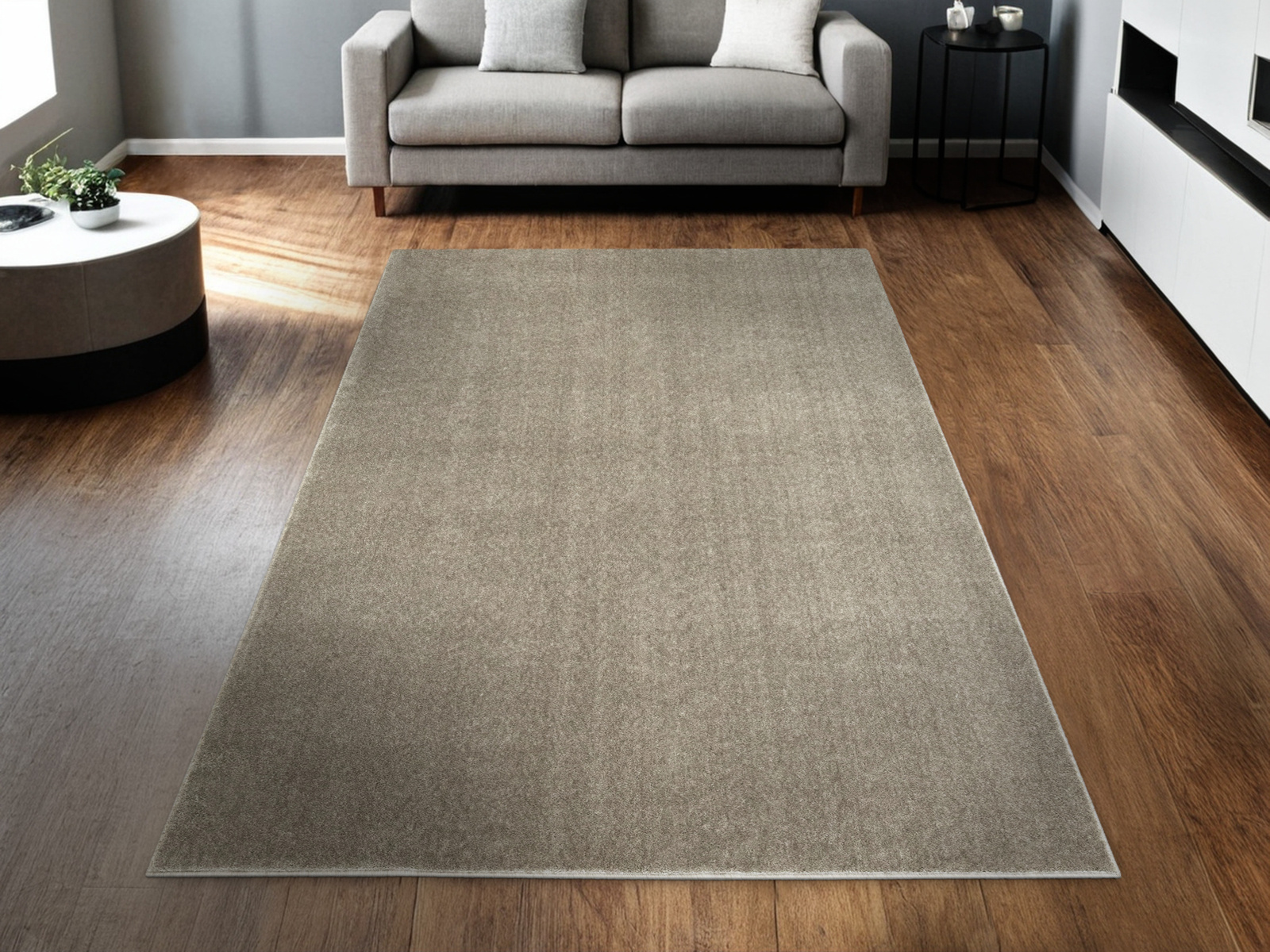 - Miękki i przyjemny w dotyku luksusowy dywan z wykładziny Glamour-Sub z lśniącym poliamidowym, piszącym się runem ciętym typu saxon w odcieniu lśniącej srebrzystej szarości, mieniącej się z kaszmirowym beżem, ze spodem na jucie.