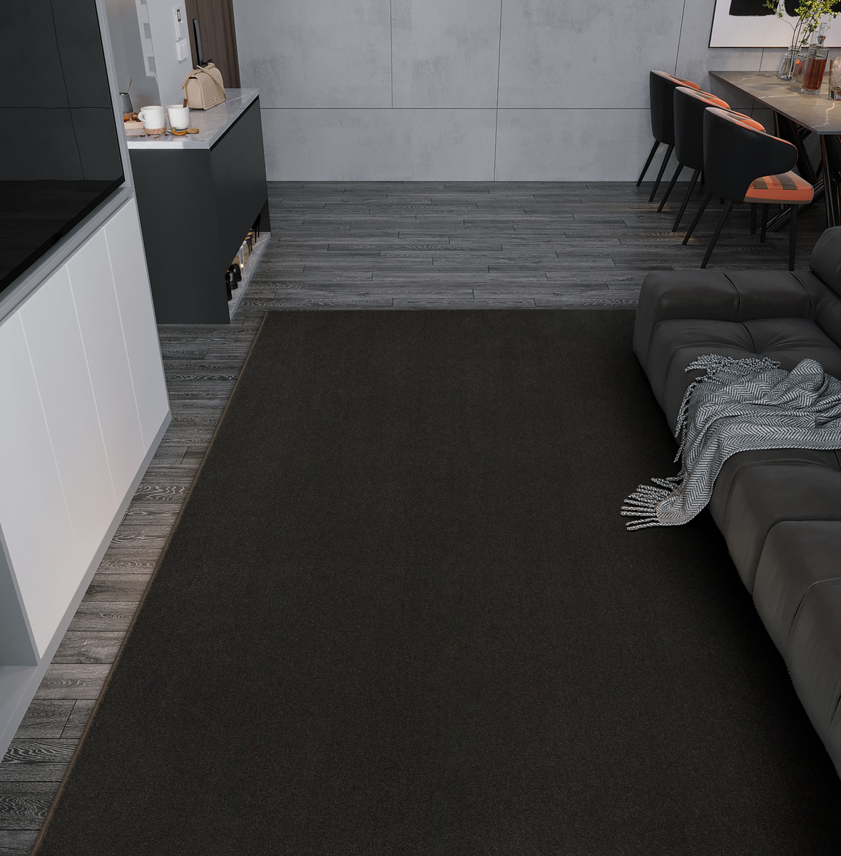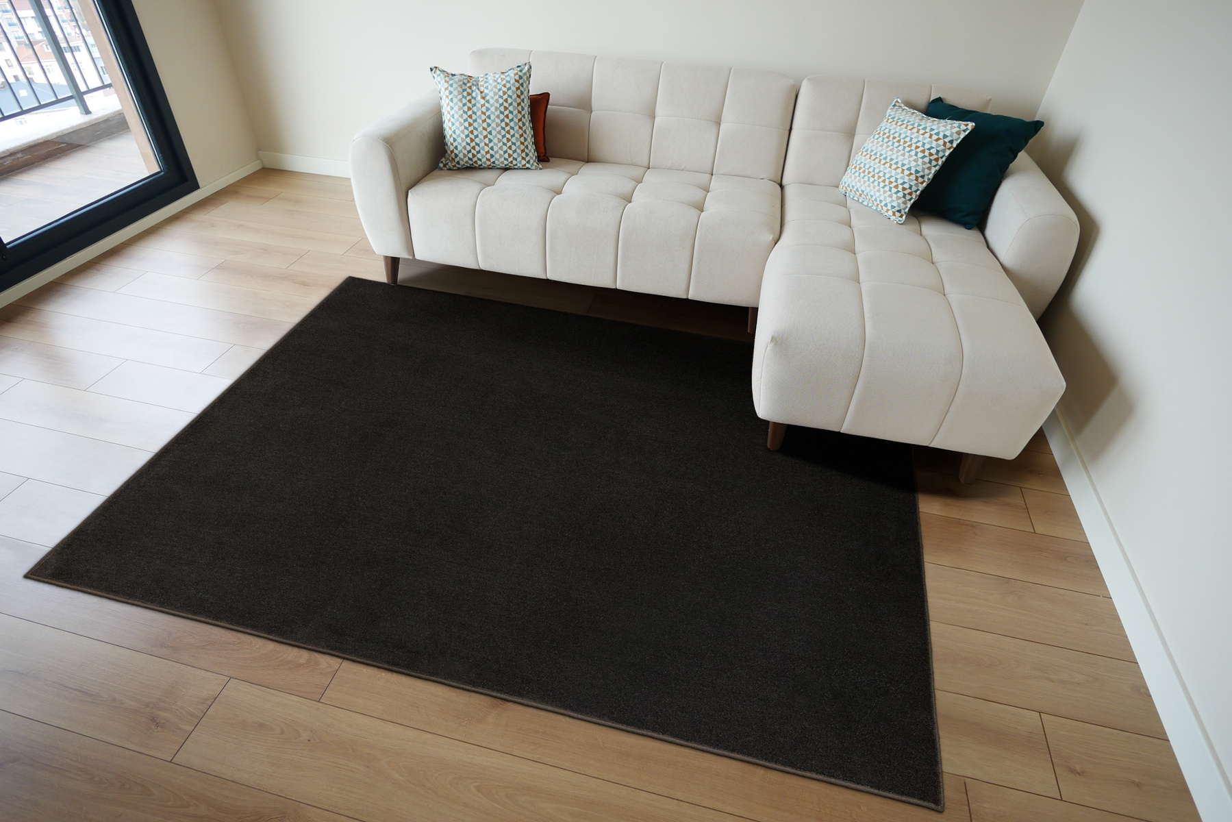 - Dywan z wykładziny Magic z bardzo wytrzymałym runem z przędzy poliamidowej w odcieniu ciemnego brązu, ze spodem wykończonym jutą.