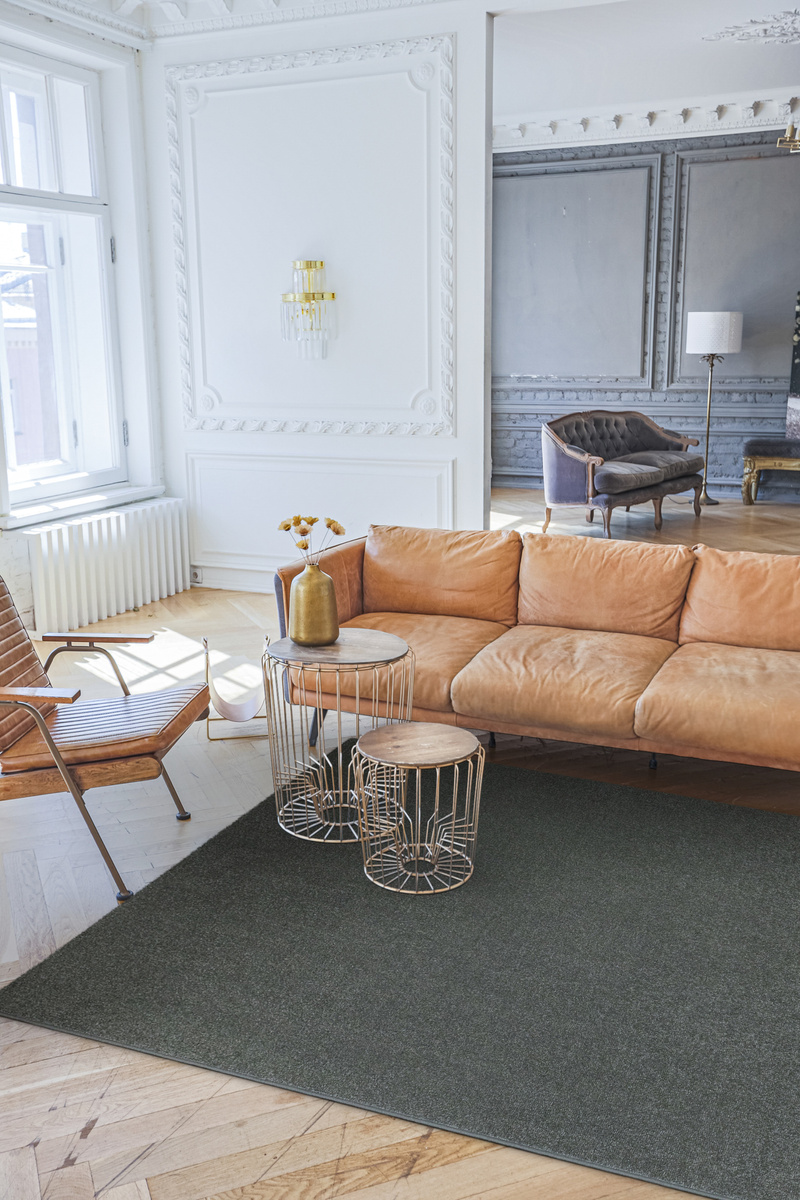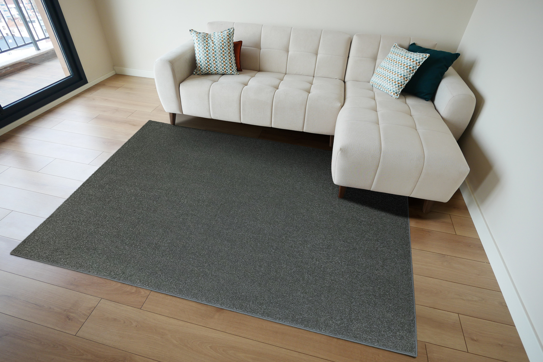 - Miękka i przyjemna w dotyku antypoślizgowa wykładzina dywanowa Carousel z runem w odcieniu szarości i podgumowanym spodem.