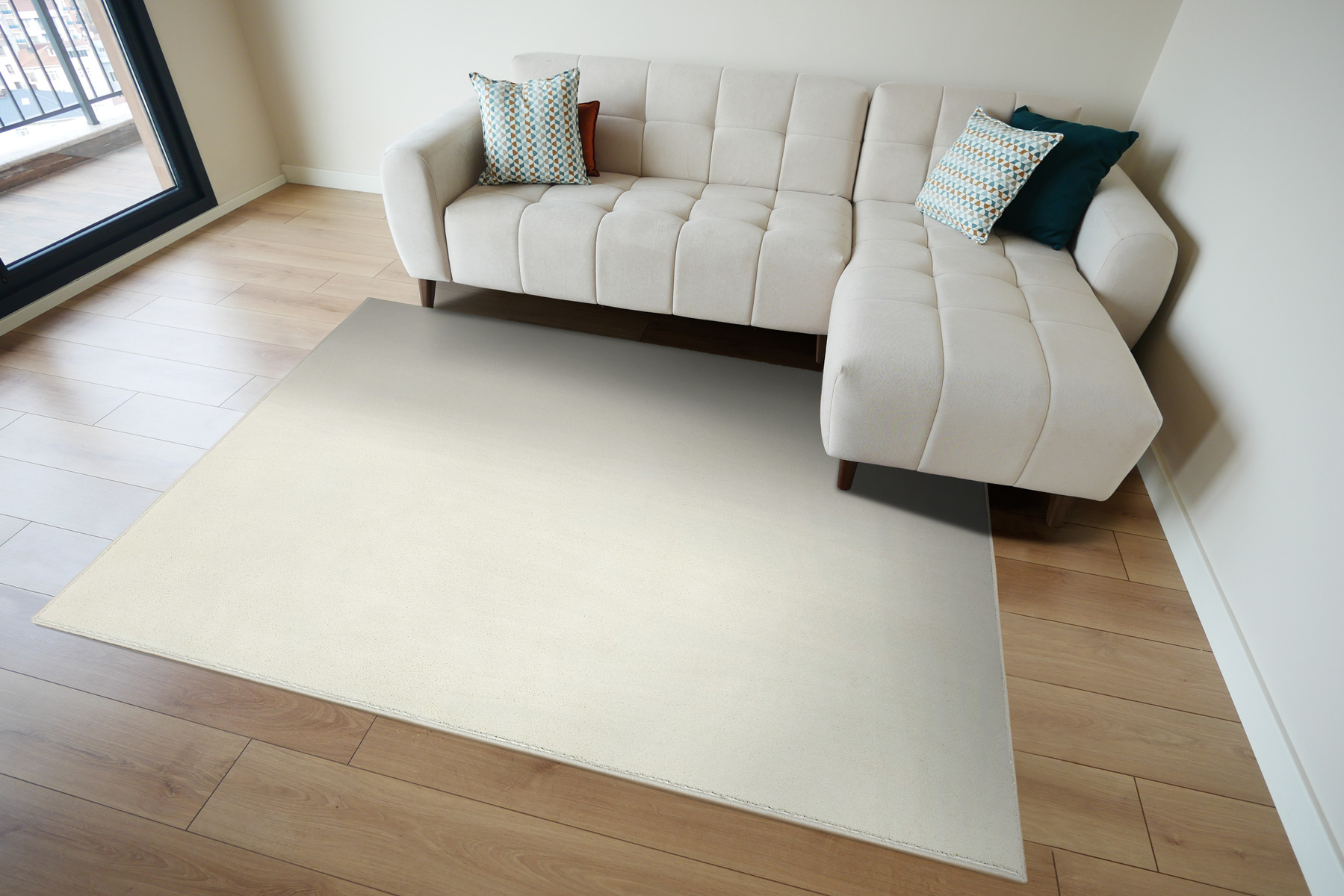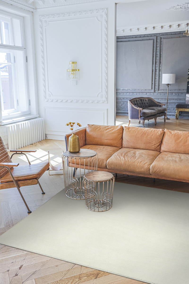 - Dywan wykonany z luksusowej wykładziny Lexus o podwyższonej wytrzymałości, gęstym, grubym runie ciętym typu saxon w odcieniu jasnego kremu i spodem wykończonym filcem.