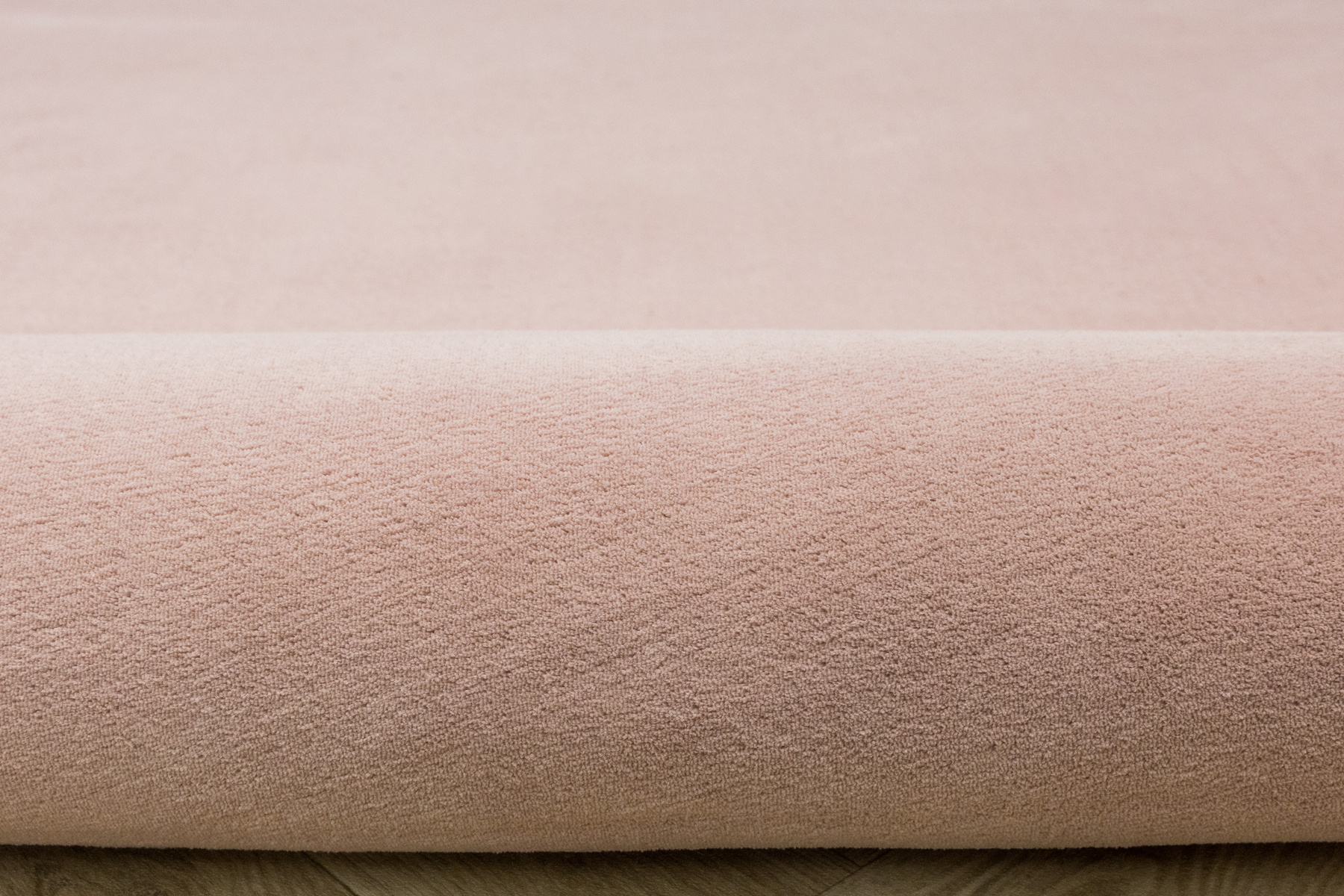 • Mięciutki dywan Plush o puszystym, gęstym, lśniącym runie imitującym królicze futerko w odcieniu pudrowego różu z antypoślizgowym spodem.