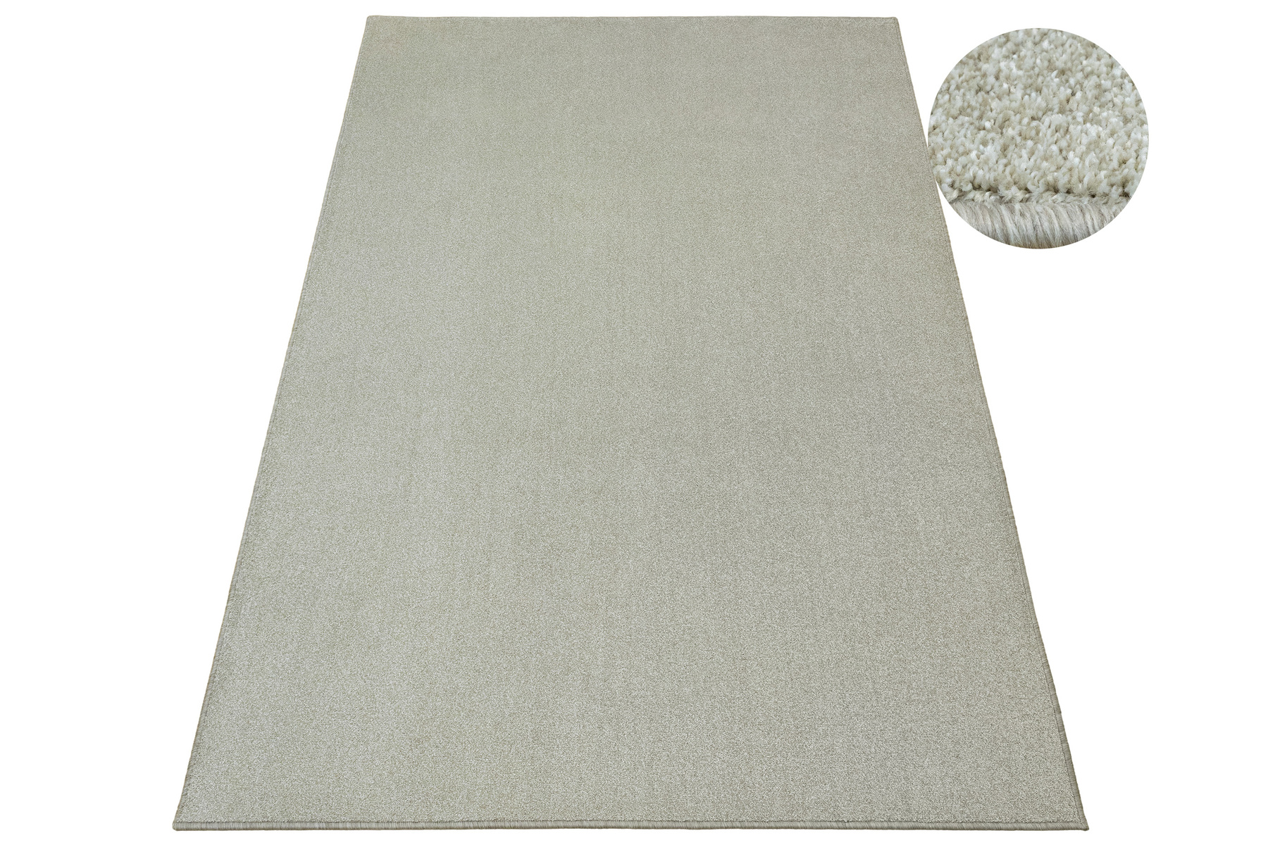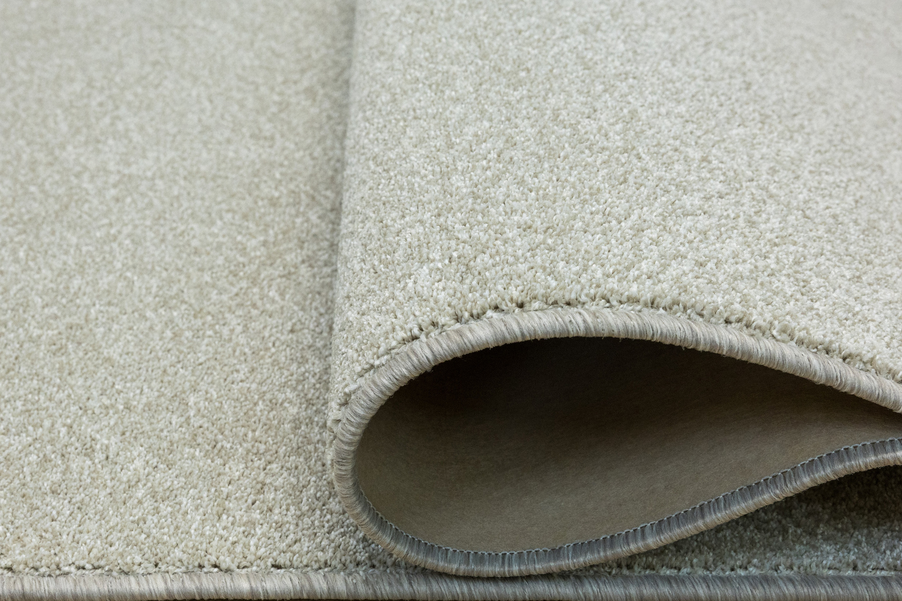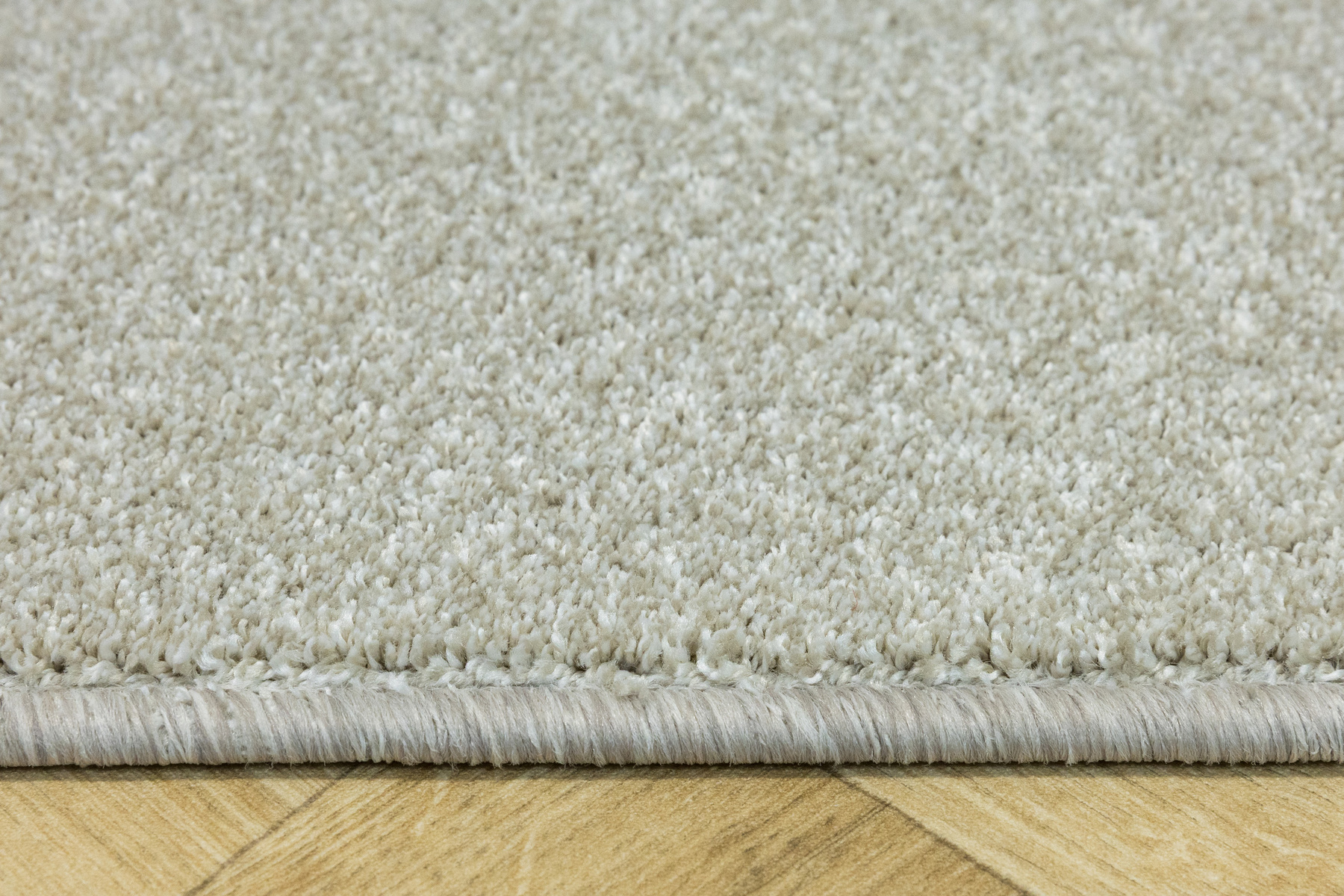 - Nowoczesny dywan z wykładziny Domingo z grubym, miękkim runem w melanżowej kolorystyce zawierającej odcienie beżu i kremu oraz spodem wykończonym filcem.