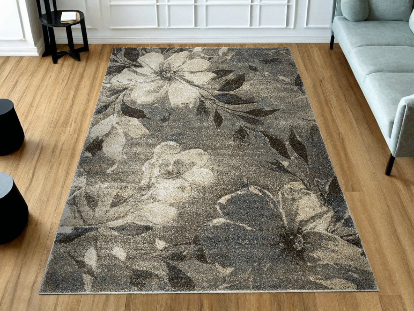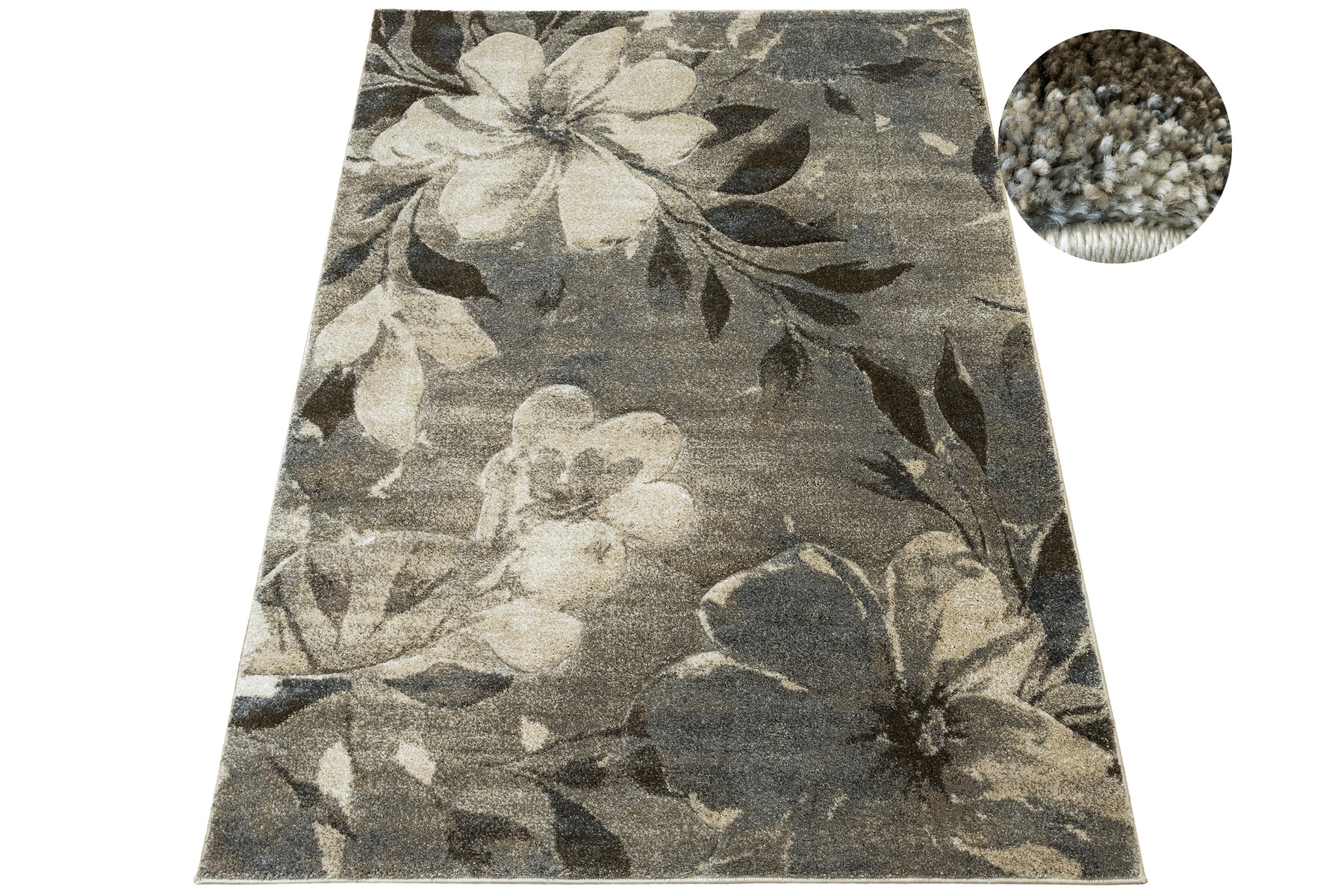 Dywan Kandy N040A l.beige/m.beig Szary Beżowy Kwiaty Grafit Fryz