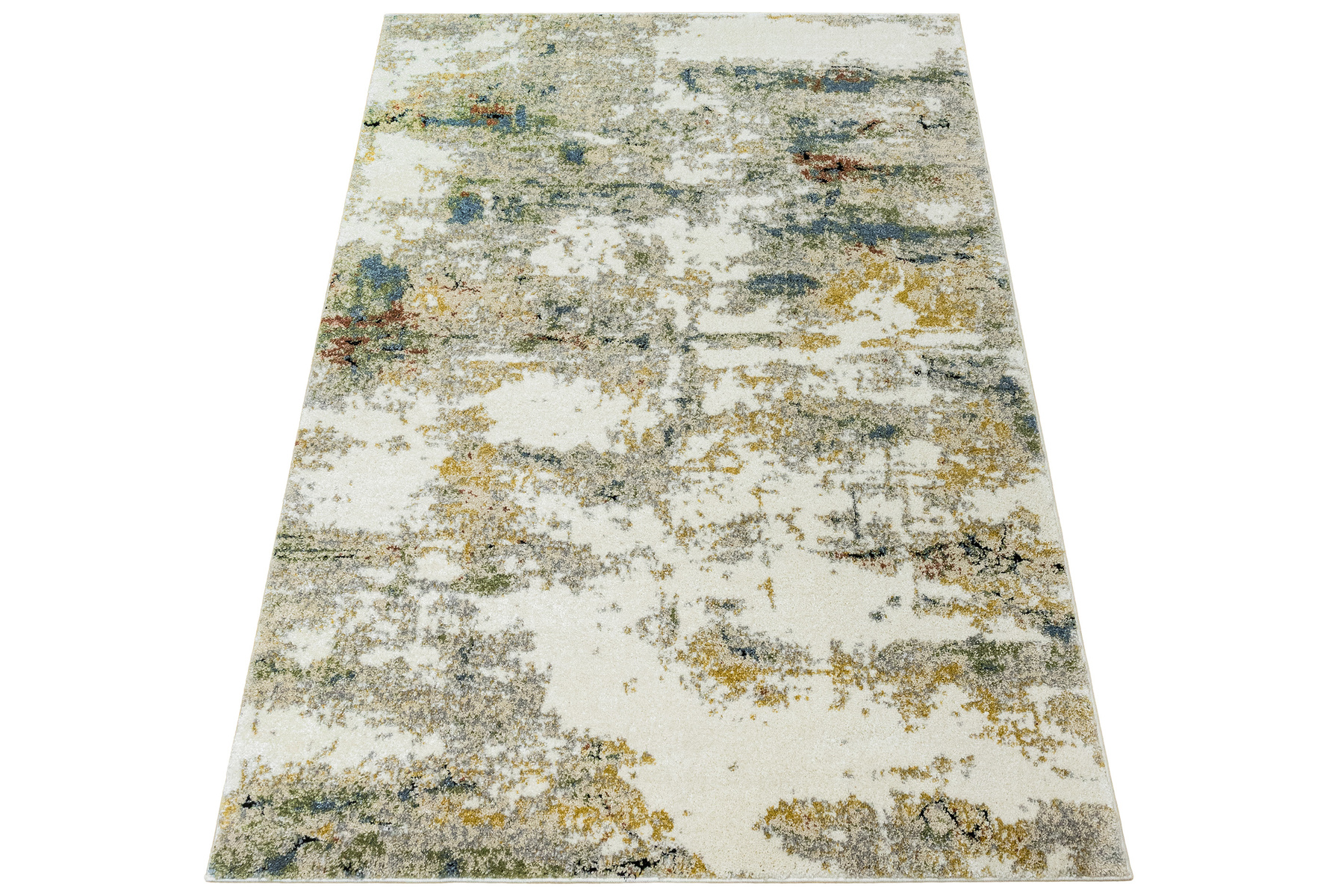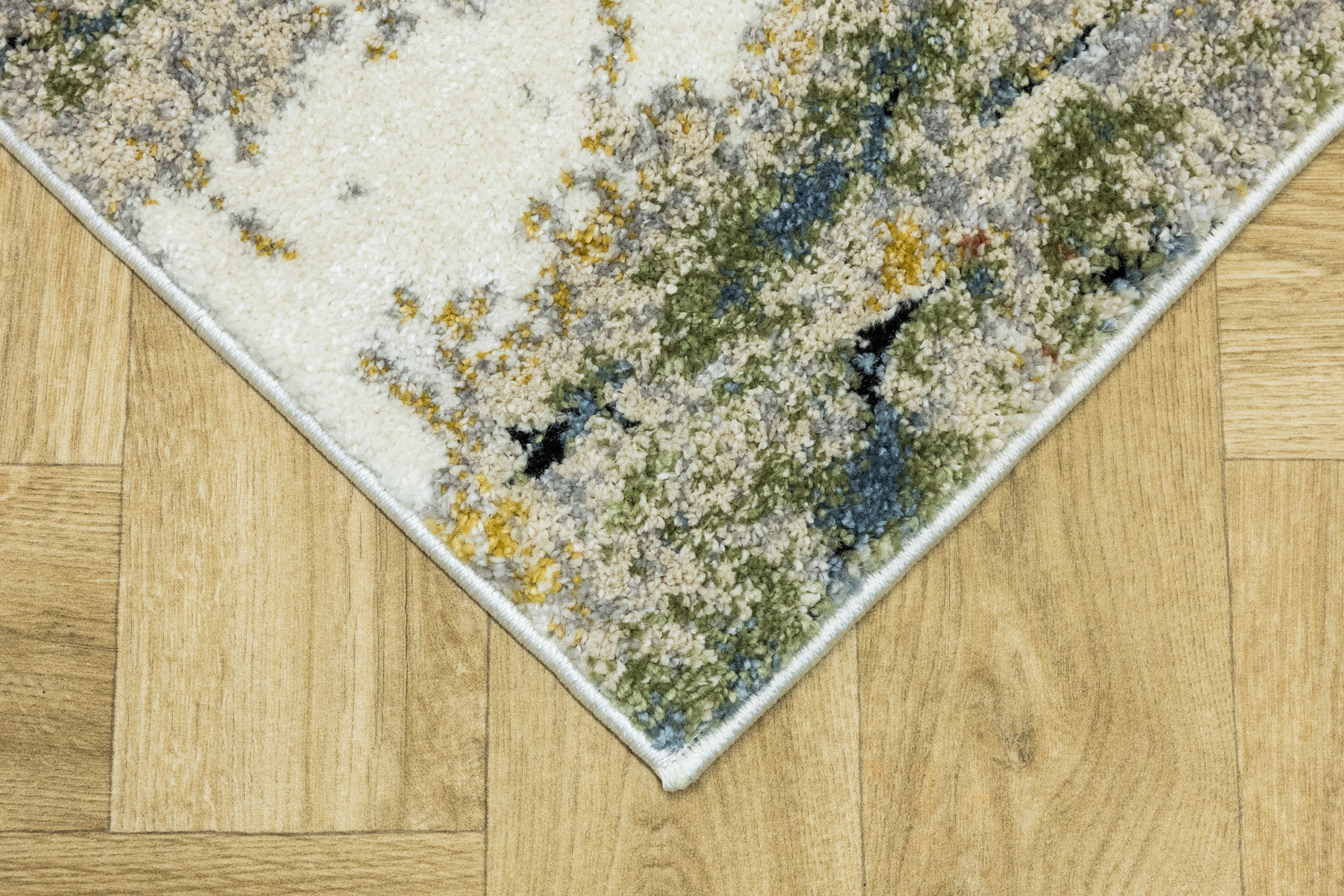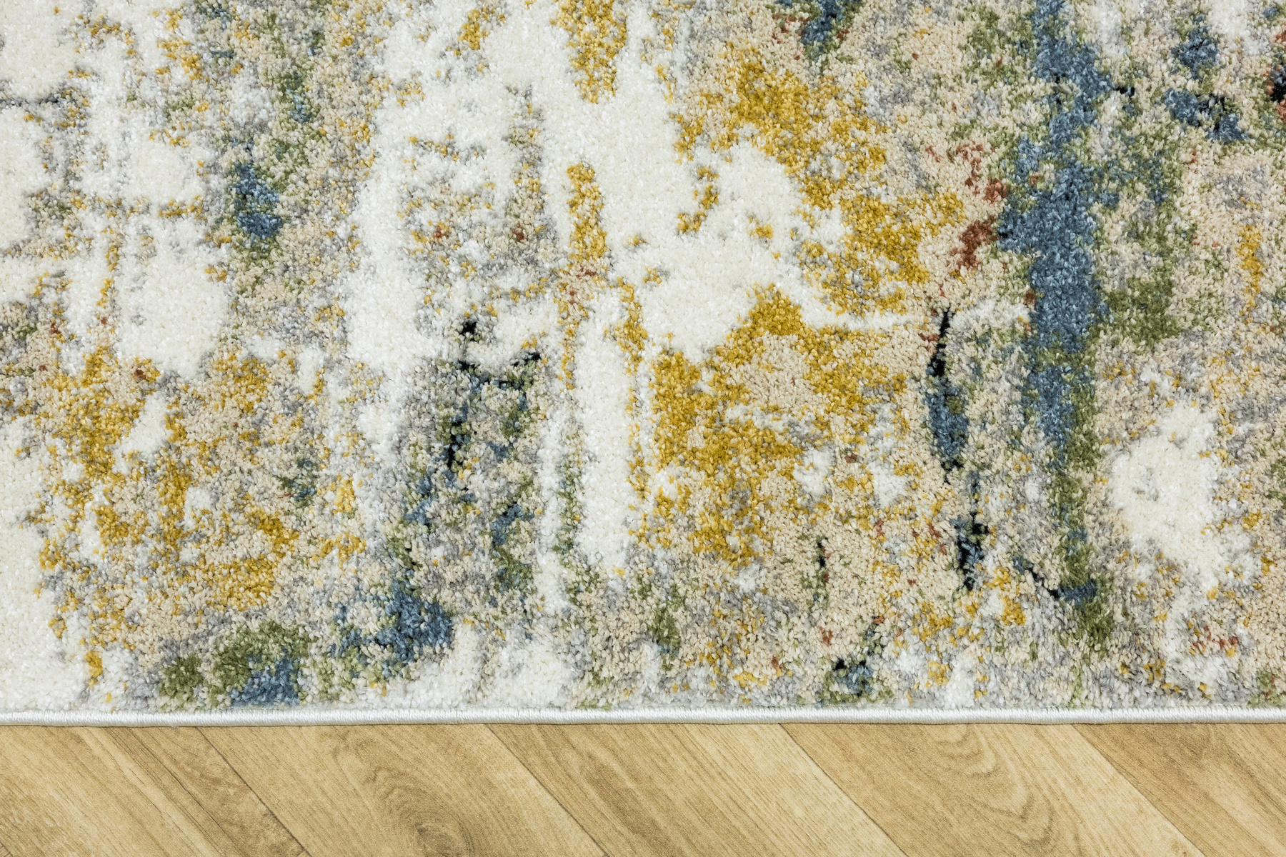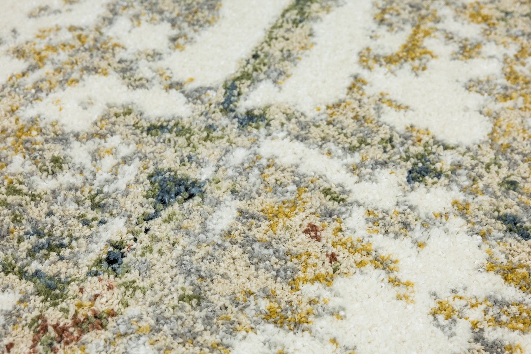 • Mięciutki i przyjemny w dotyku dywan Bosa o grubym dwupoziomowym runie z abstrakcyjnym wzorem w odcieniach kremu, kaszmirowego beżu z akcentem miedzi, niebieskiego, żółtego, oliwkowej zieleni i antracytu oraz spodem wykończonym jutą.