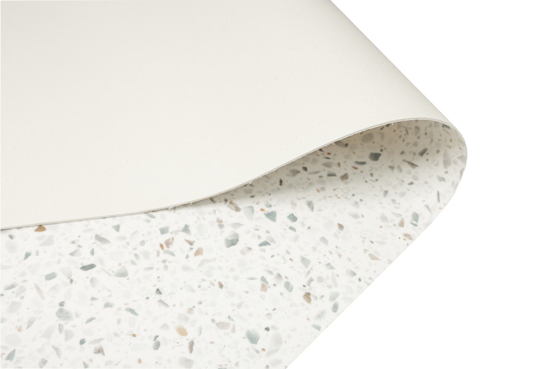 - Wytrzymała wykładzina PCV Primo Maira ze wzorem imitującym lastryko w odcieniach szarości, beżu i kremu.
